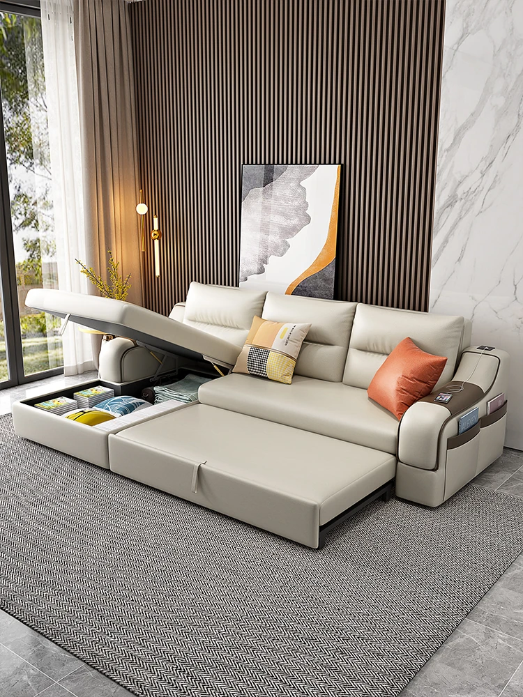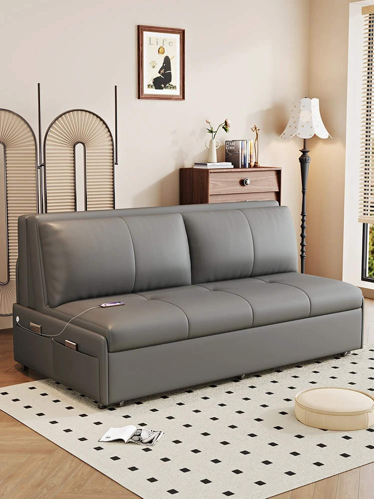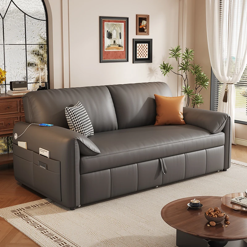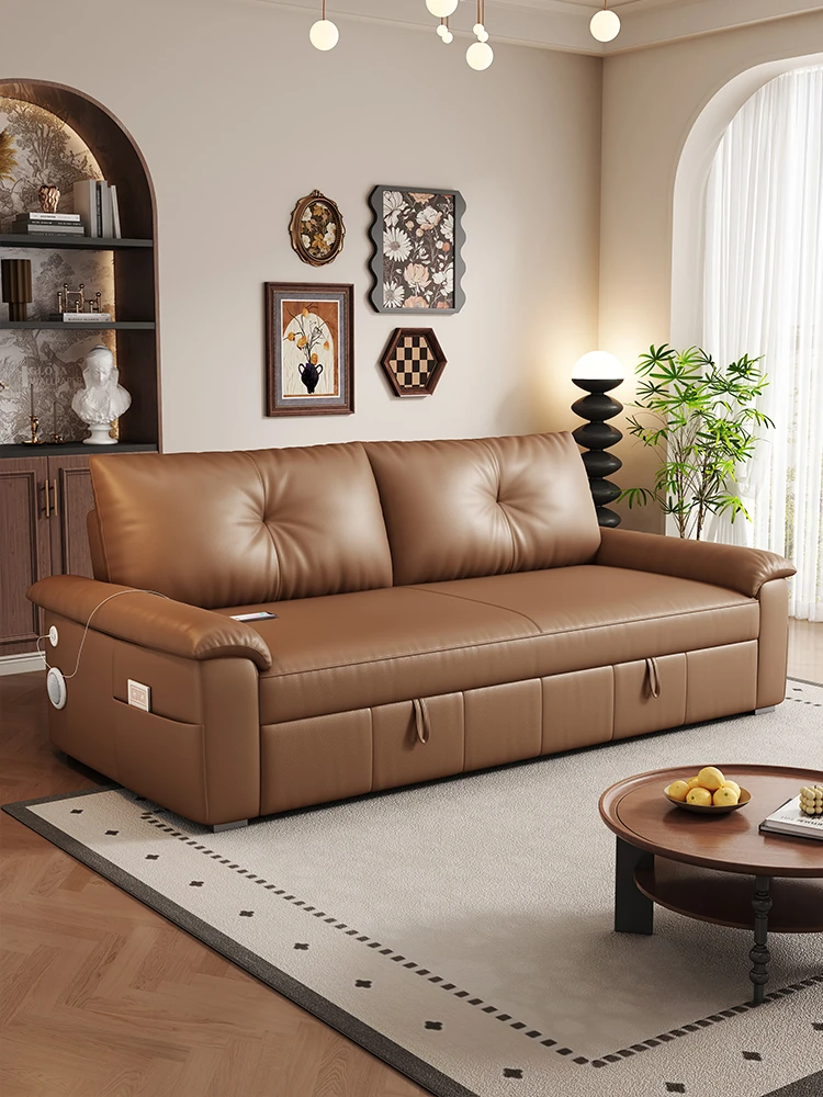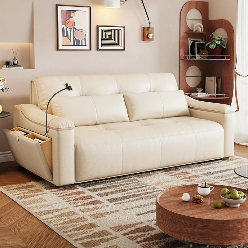 2025 New Nappa Leather Small Apartment Sofa - Multi-functional Expandable and Foldable Pull-out Sofa Bed for Compact Living Spaces
