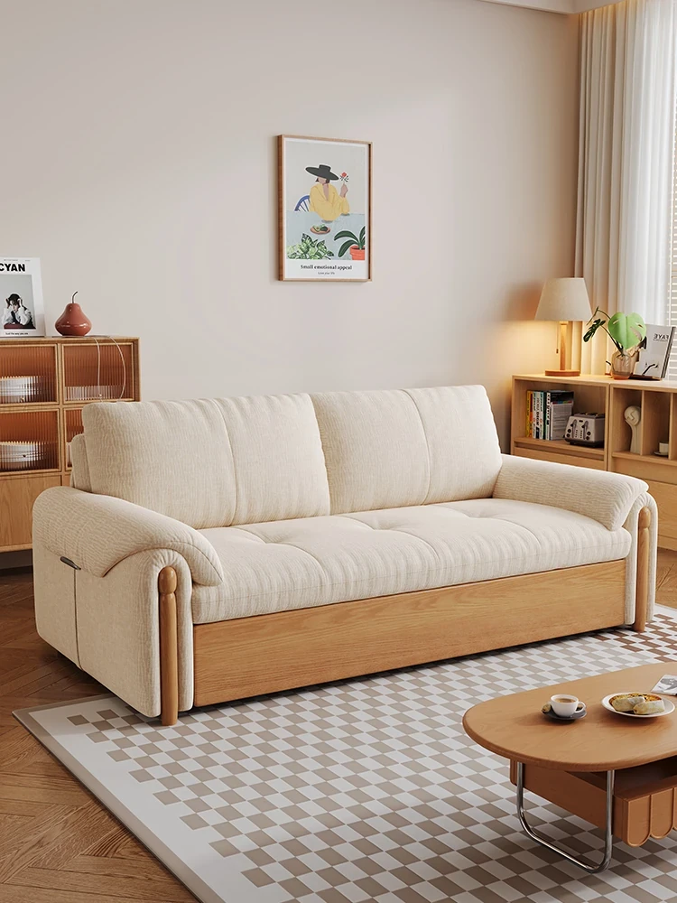 2025 Multifunctional Solid Wood Sofa Bed - Space-Saving, Detachable & Washable Cotton-Linen Design for Small Apartments and Home Offices - Ideal for Long-Term Sleeping and Versatile Use