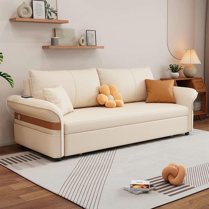 Luxury Wash-Free Tech Fabric Sofa Bed - Multifunctional Pull-Out Folding Sofa for Small Living Rooms, Perfect for Two or Three People