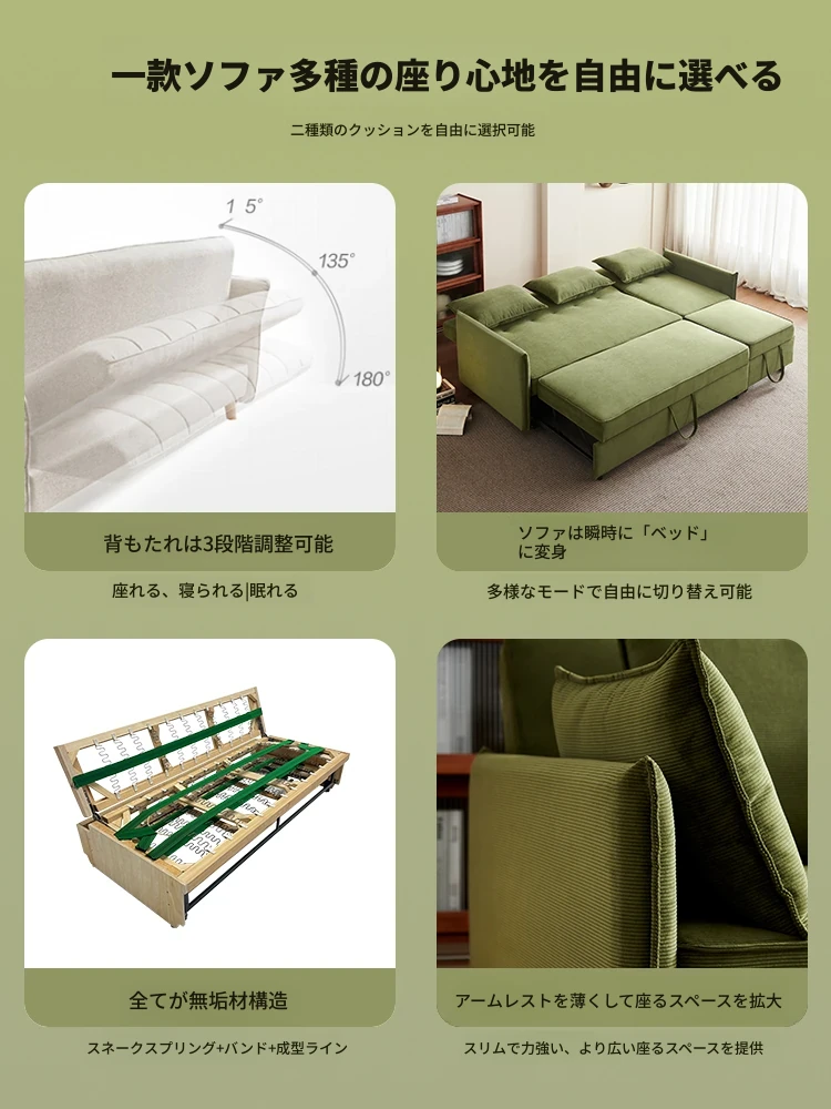 2024年新作!折叠式ソファベッド 1人用 小さなリビングや書斎に最適!ダブルサイズに変身する伸縮式デザインで、スペースを有効活用。おしゃれで機能的な一台で、快適な眠りをお届けします!