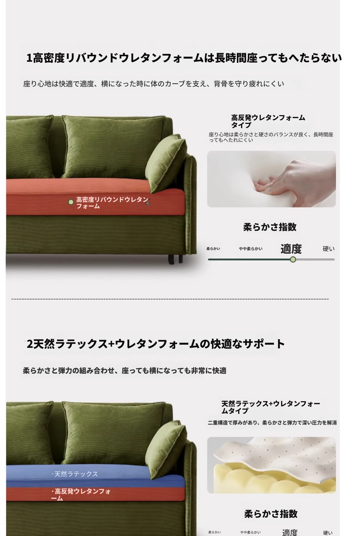 2.20メートルラテックスタイプ収納付き寝椅子コンビ