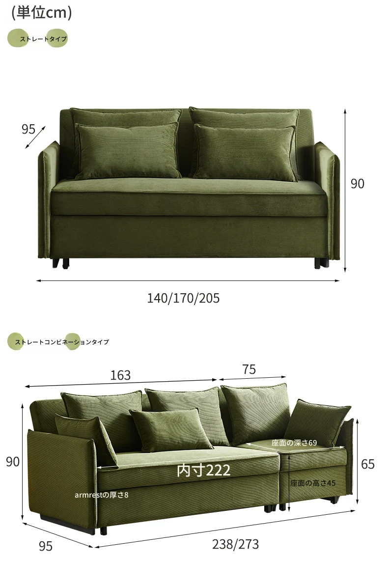 2.20メートルウレタンタイプ収納付き寝椅子コンビ