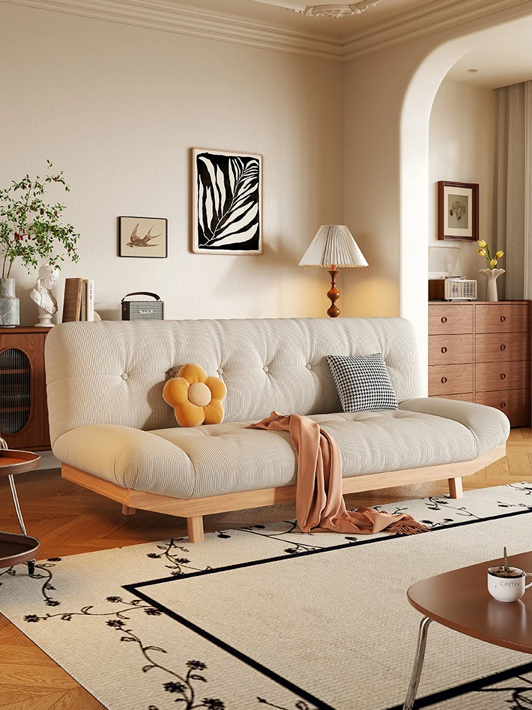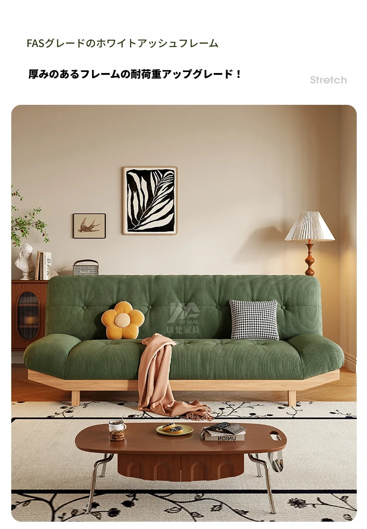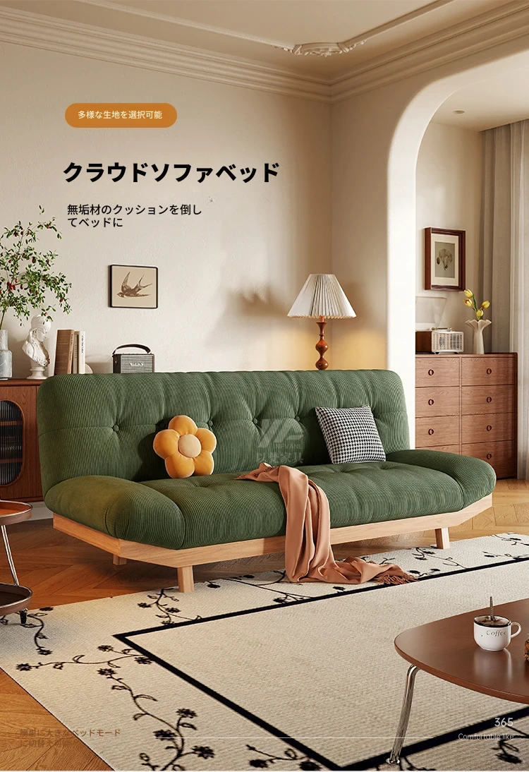 2025年新作!ナチュラルウッドスタイルの小型リビング兼書斎用マルチ機能ソファベッド。背もたれを倒せる折りたたみ式、実用性とデザイン性を兼ね備えた一品!