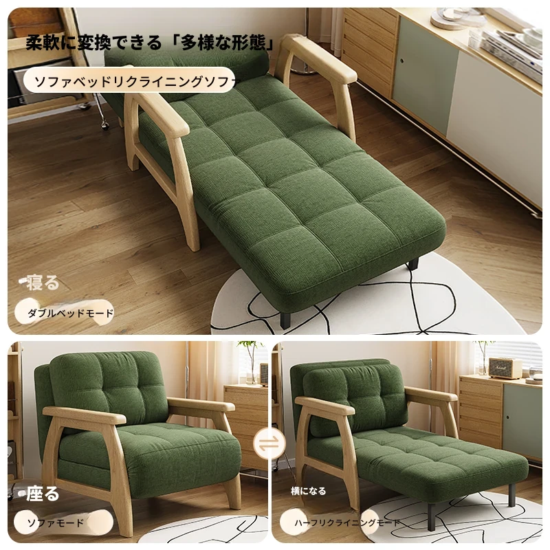2025年新作!実木ソファベッド - 小型住宅に最適な多機能二合一折り畳みベッド!客室や書斎にぴったりな、シングル&ダブル対応のコンパクトでスタイリッシュなデザイン!おしゃれな空間を演出します!