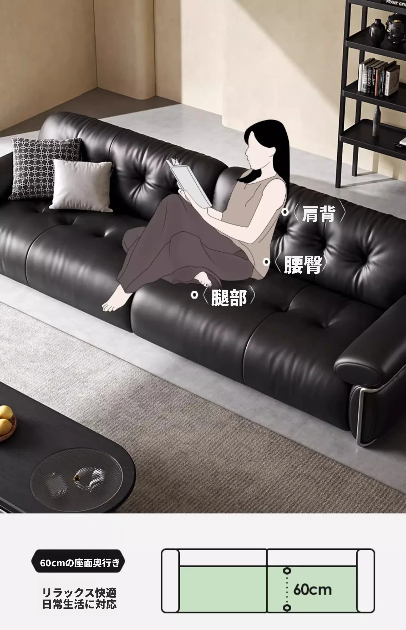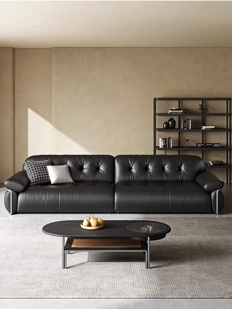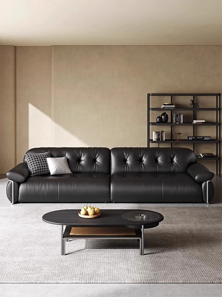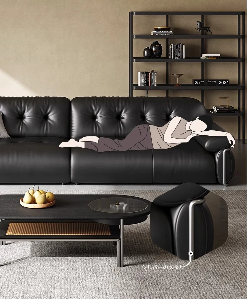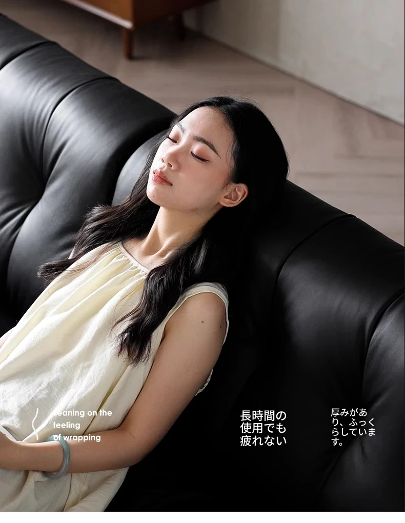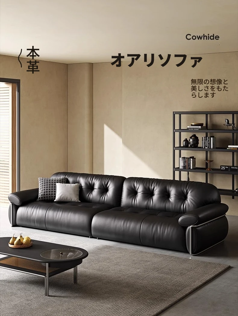オーエリザソファ イタリアンミニマル ブラック ヴィンテージ風 リビング用 フレンチラグジュアリー 最高級トップレザー ダイレクトデザインソファ - 上質な空間を演出する洗練された一品!