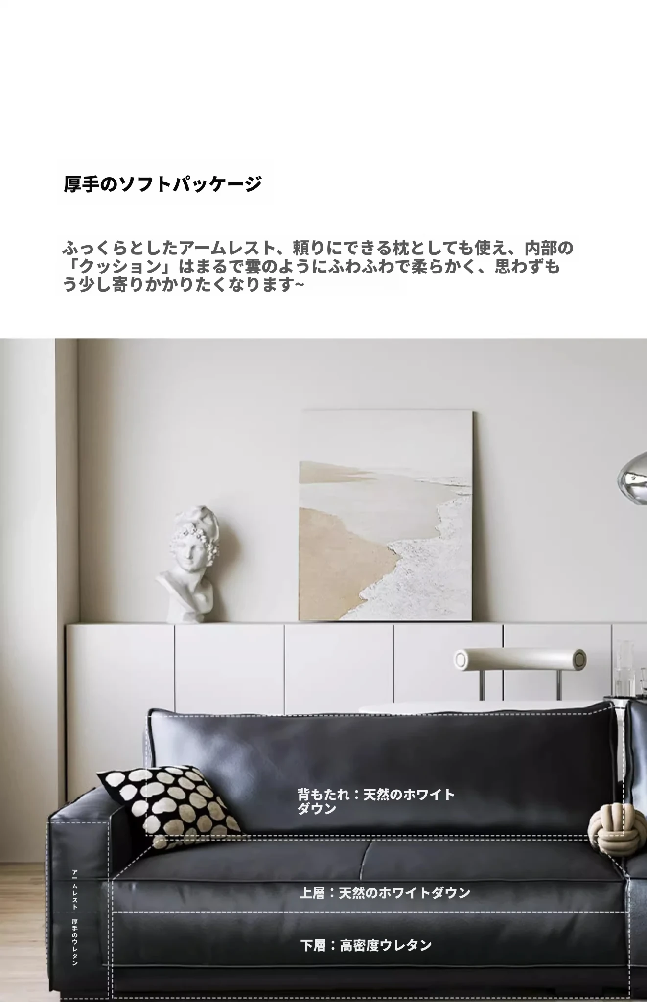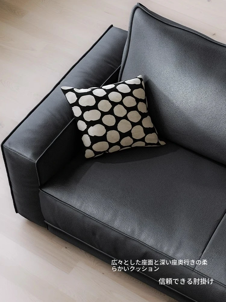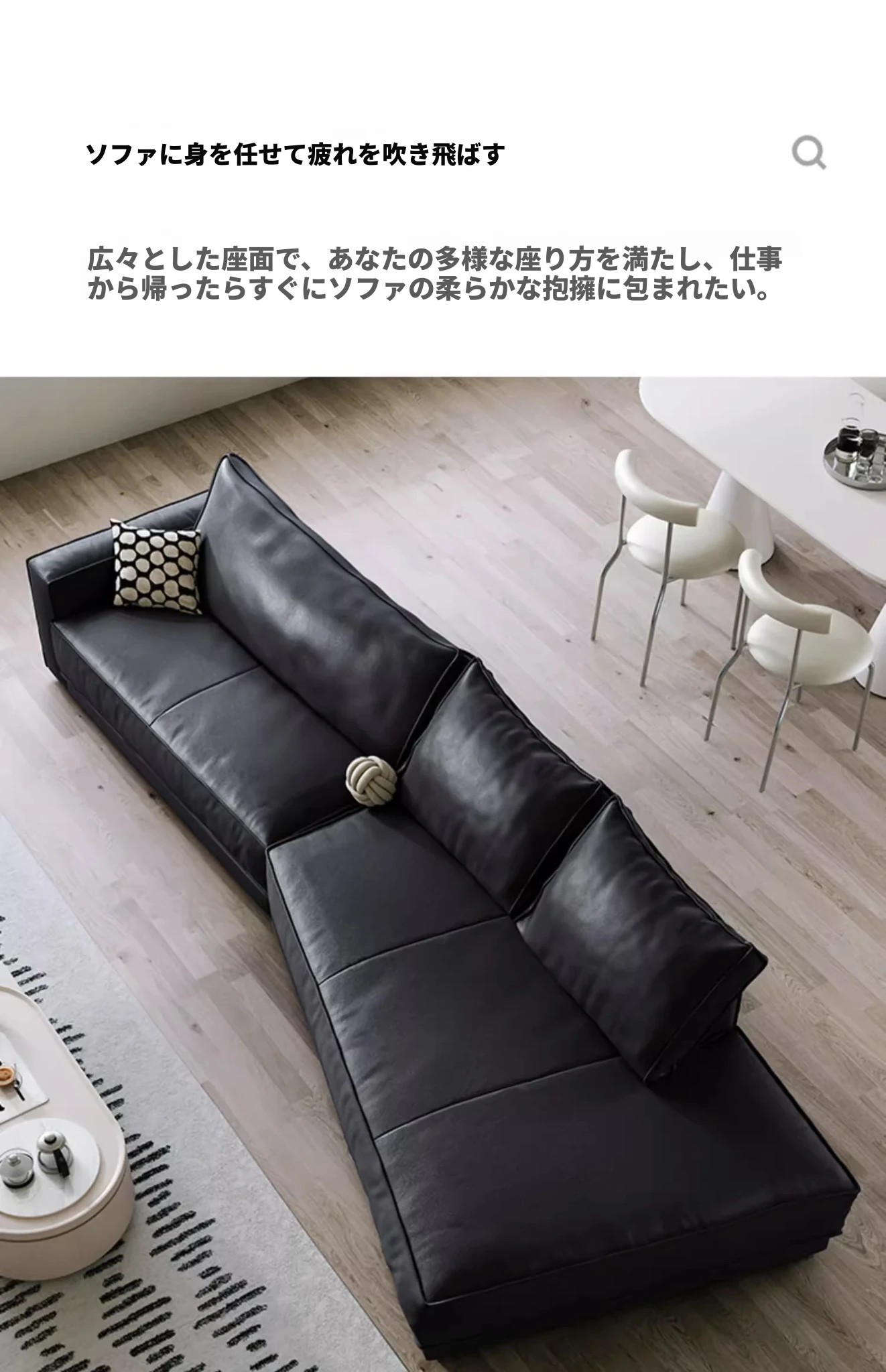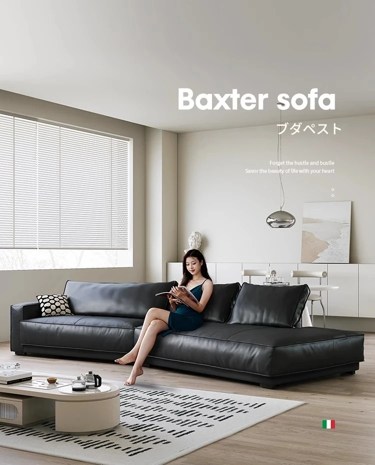 バクスター・ブダペストソファ イタリアンミニマリズム ブラック本革 大型コーナーソファ 異形デザイン リアルレザーの贅沢を感じるリビングの必需品!
