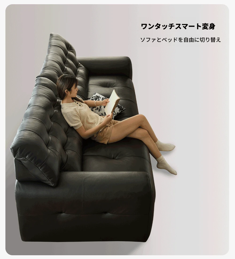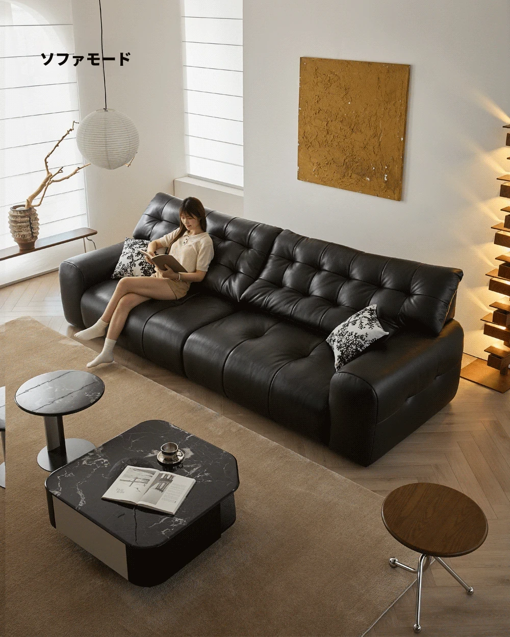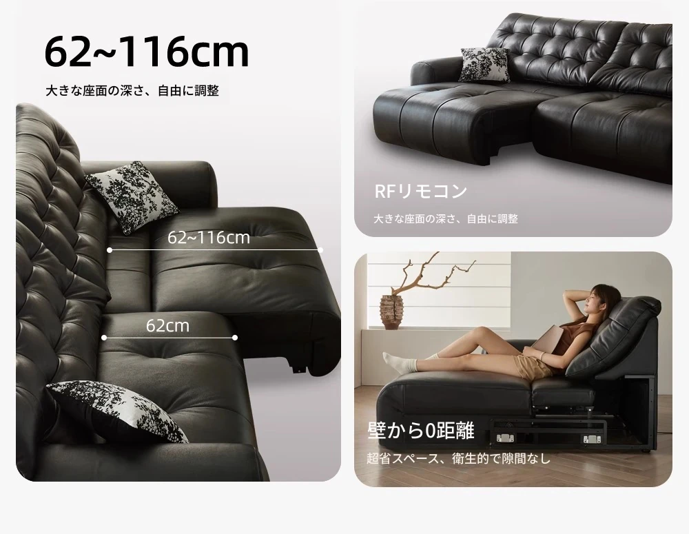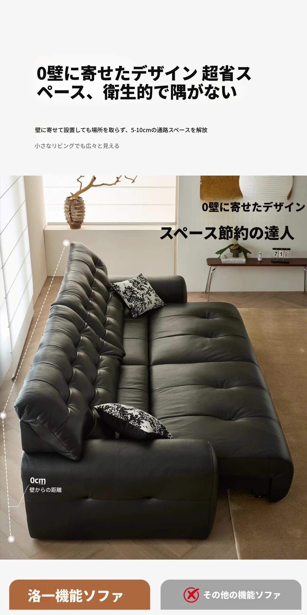 ダイ黒クマ電動ソファ - イタリアンミニマリズムの極み!高級本革使用、ブラックカラー、壁にぴったりの多機能伸縮式ハイバックソファで、贅沢なくつろぎを提供します。