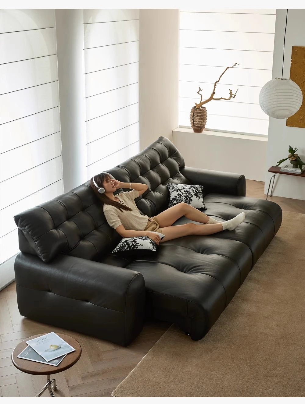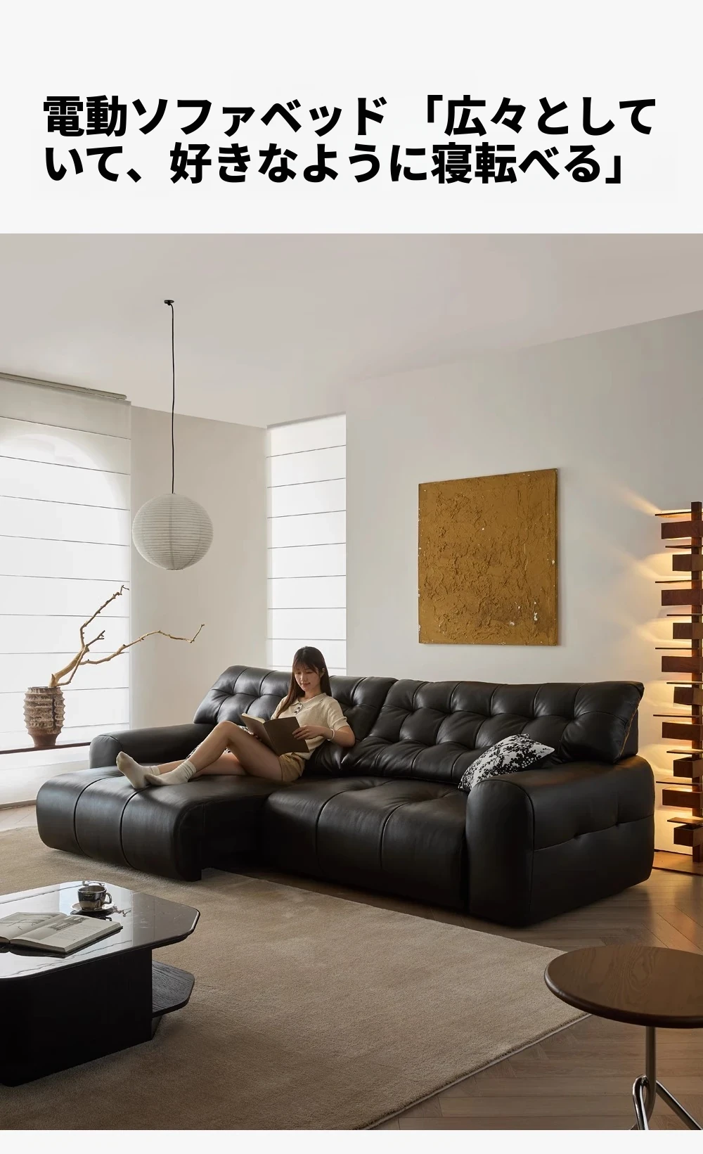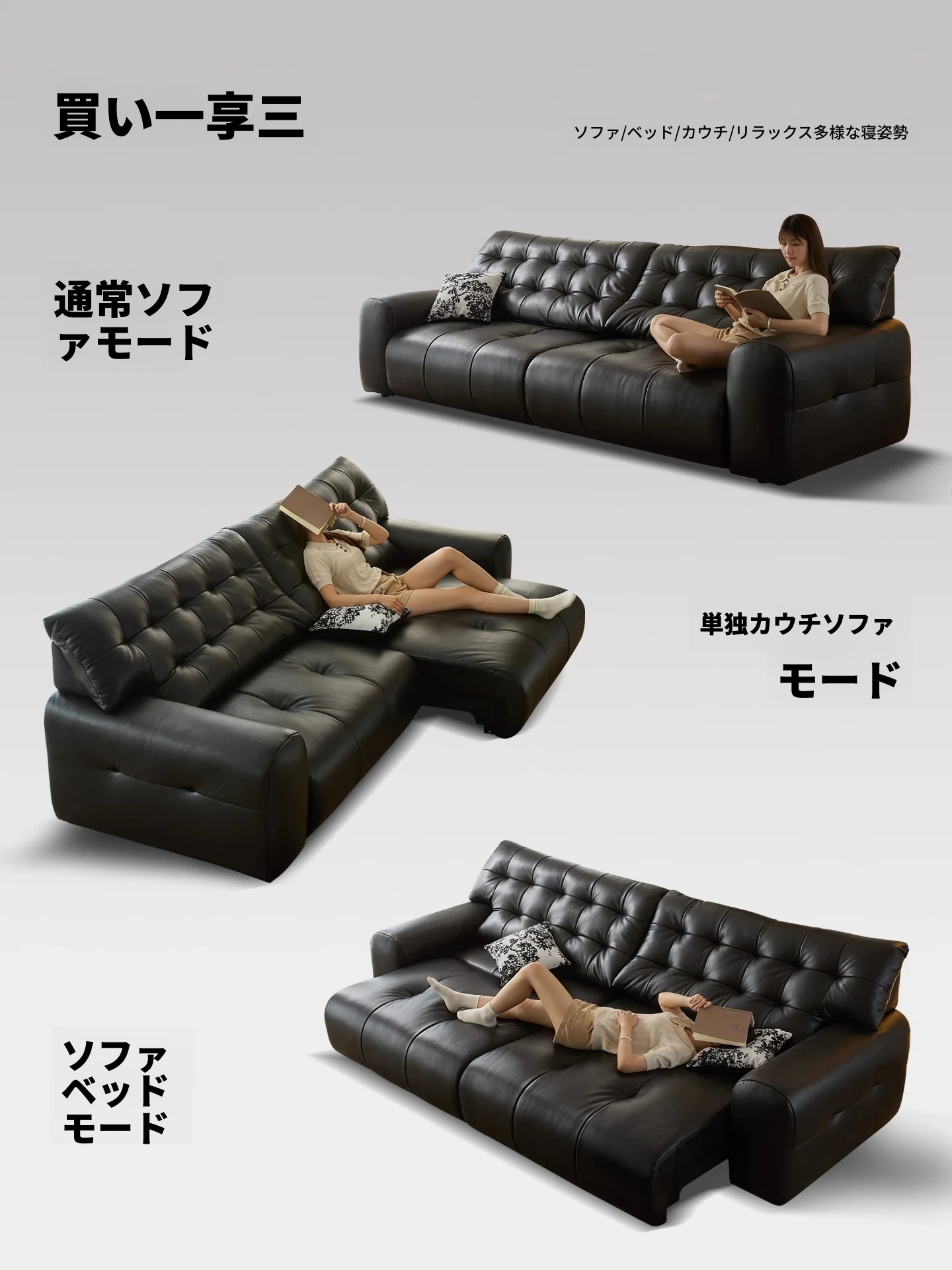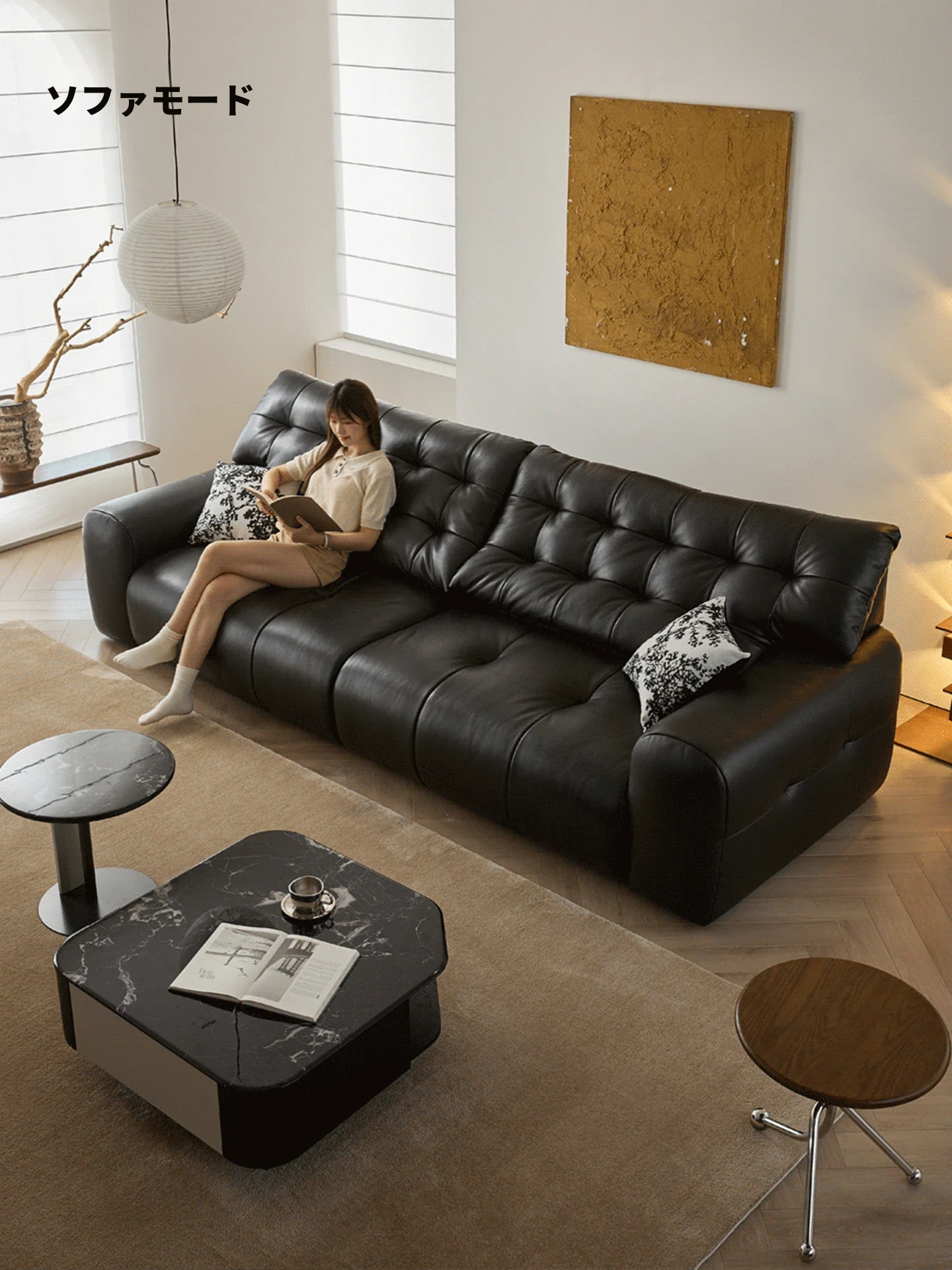 ダイ黒クマ電動ソファ - イタリアンミニマリズムの極み!高級本革使用、ブラックカラー、壁にぴったりの多機能伸縮式ハイバックソファで、贅沢なくつろぎを提供します。