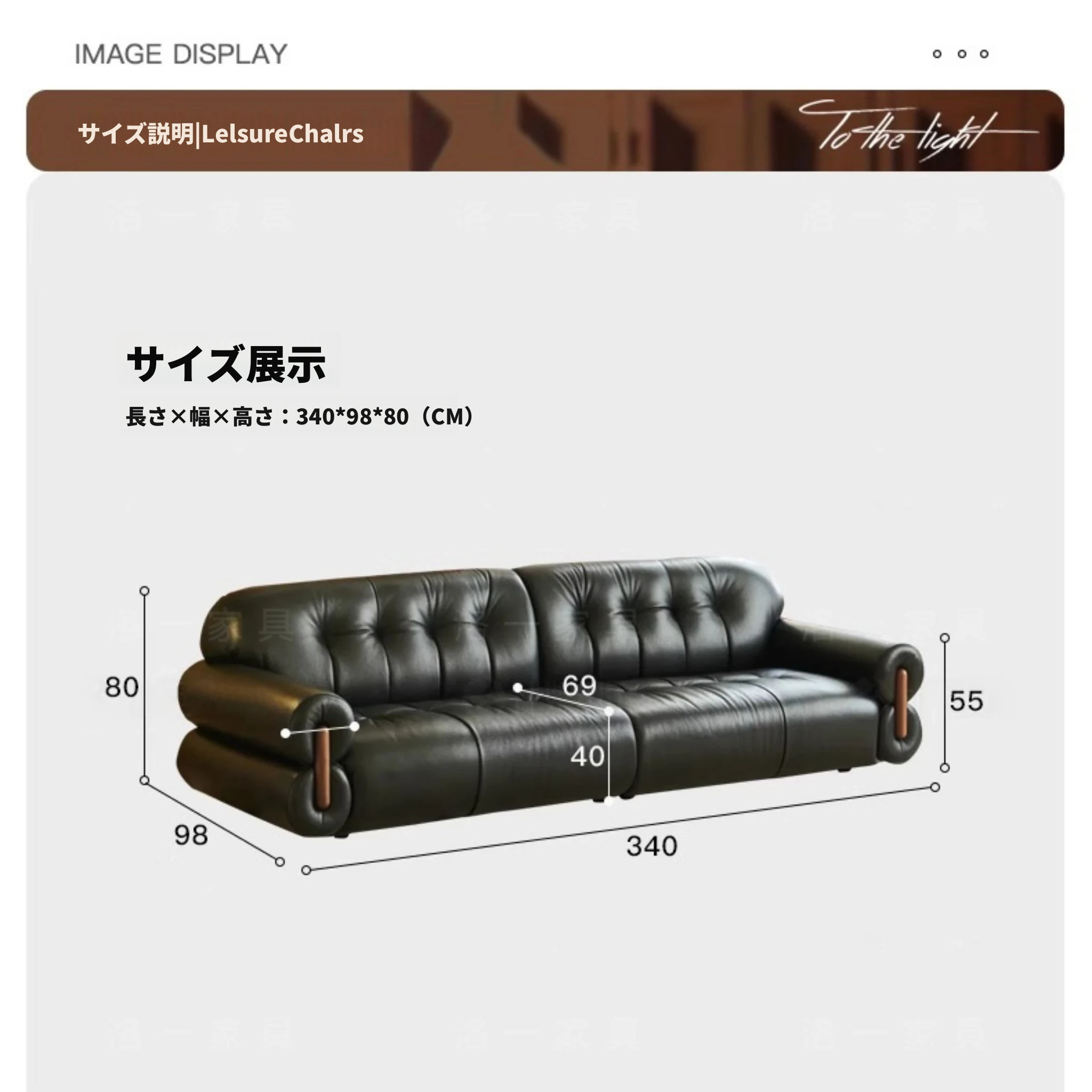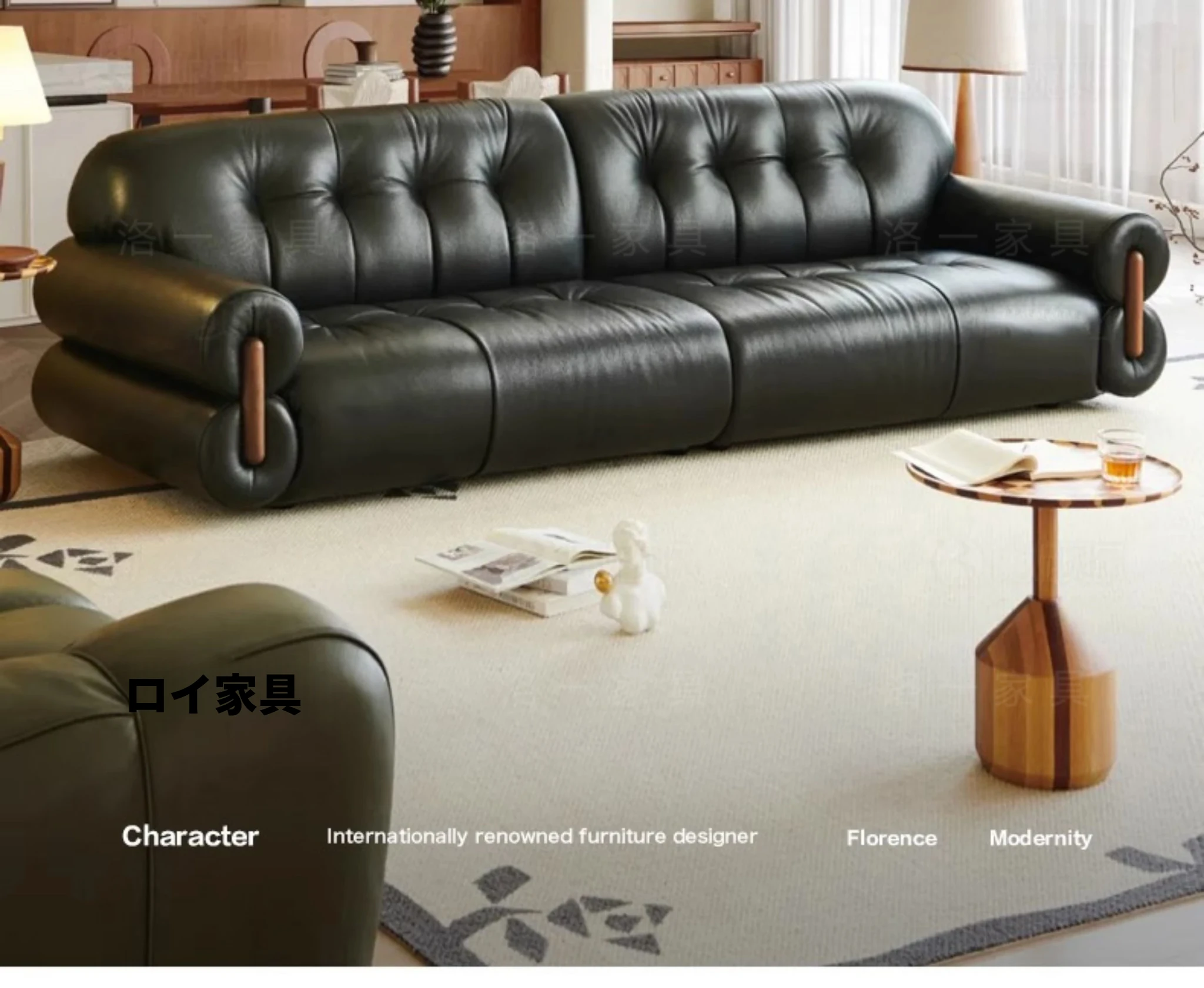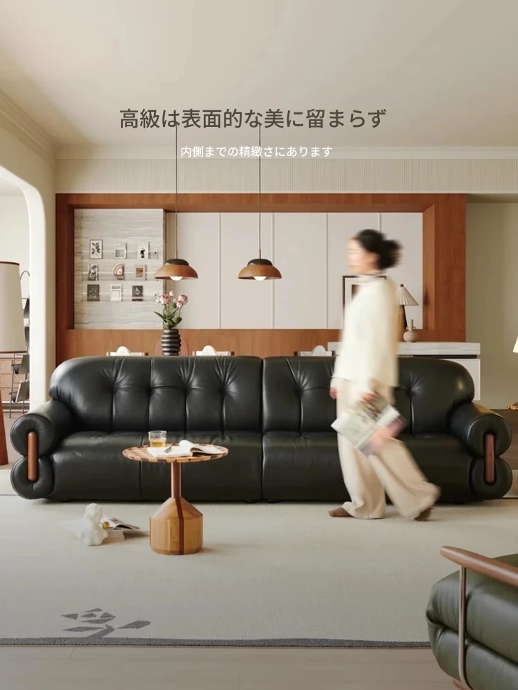 黒糖本革ソファ イタリアンミニマリズム 軽やかなラグジュアリー リビングルーム用 ブラックトップグレインレザー デザイナー直営 クラウドソファ