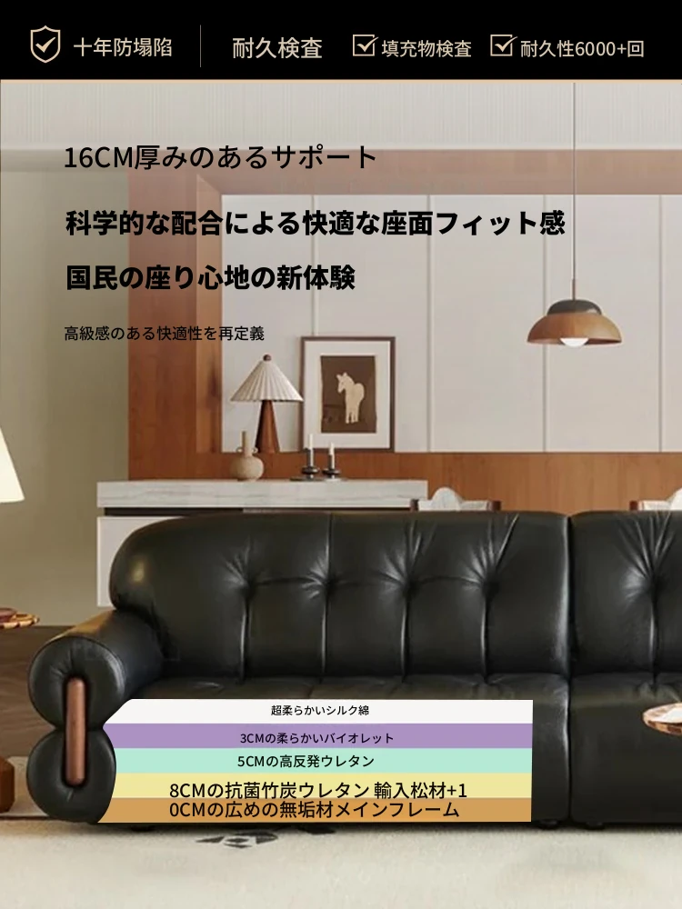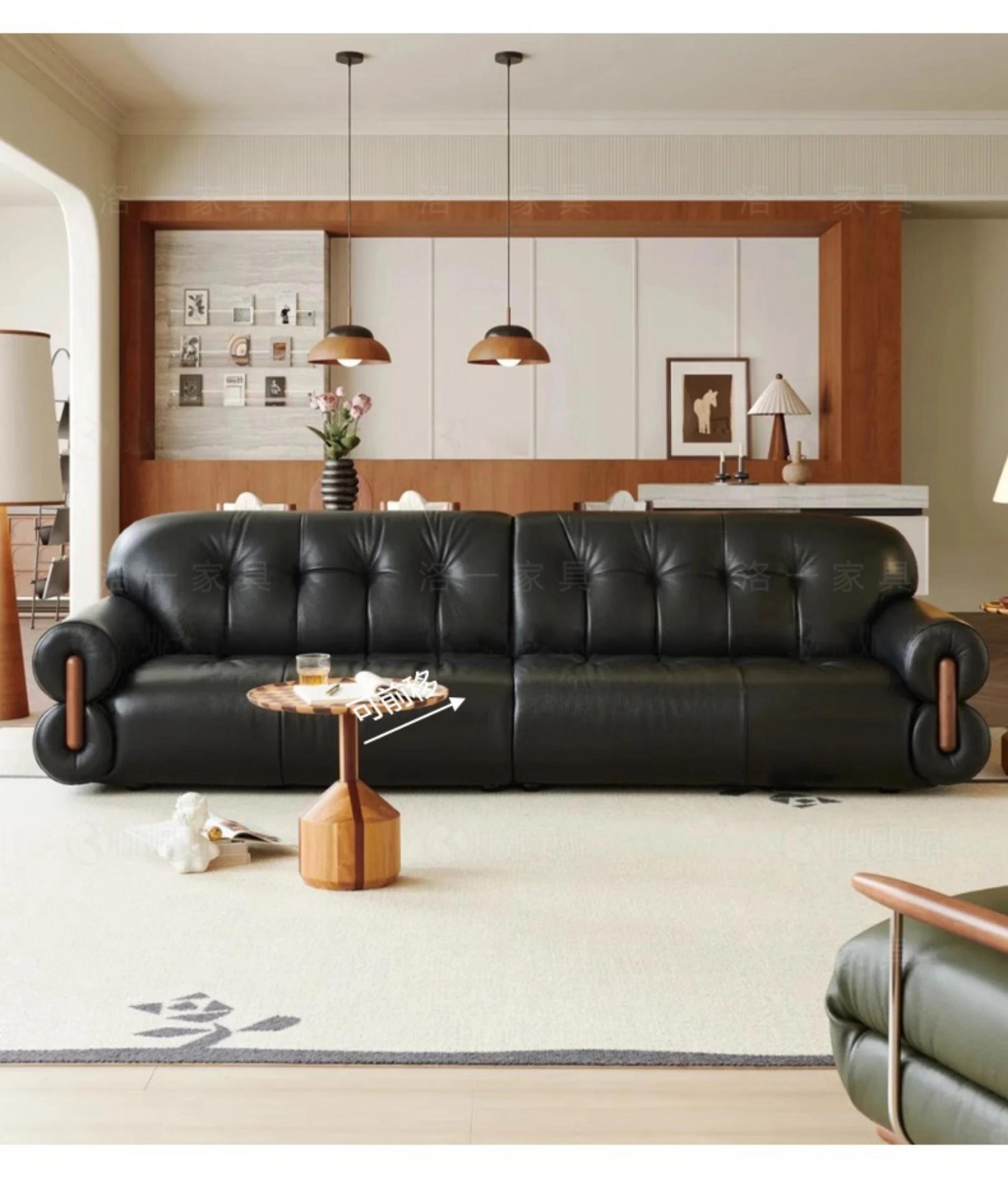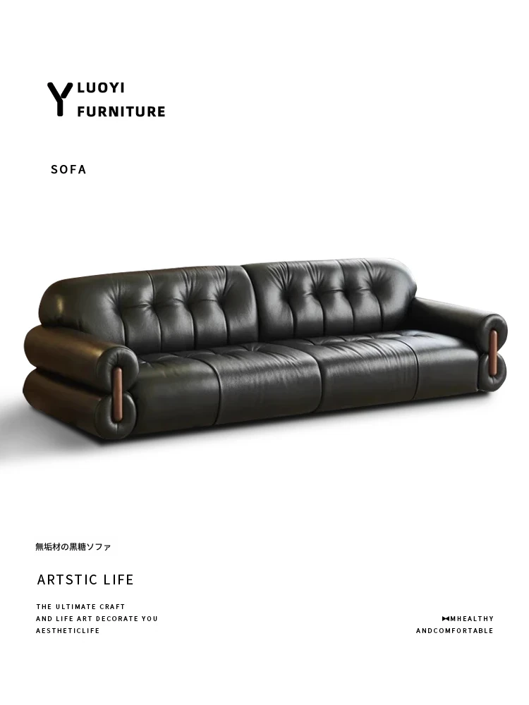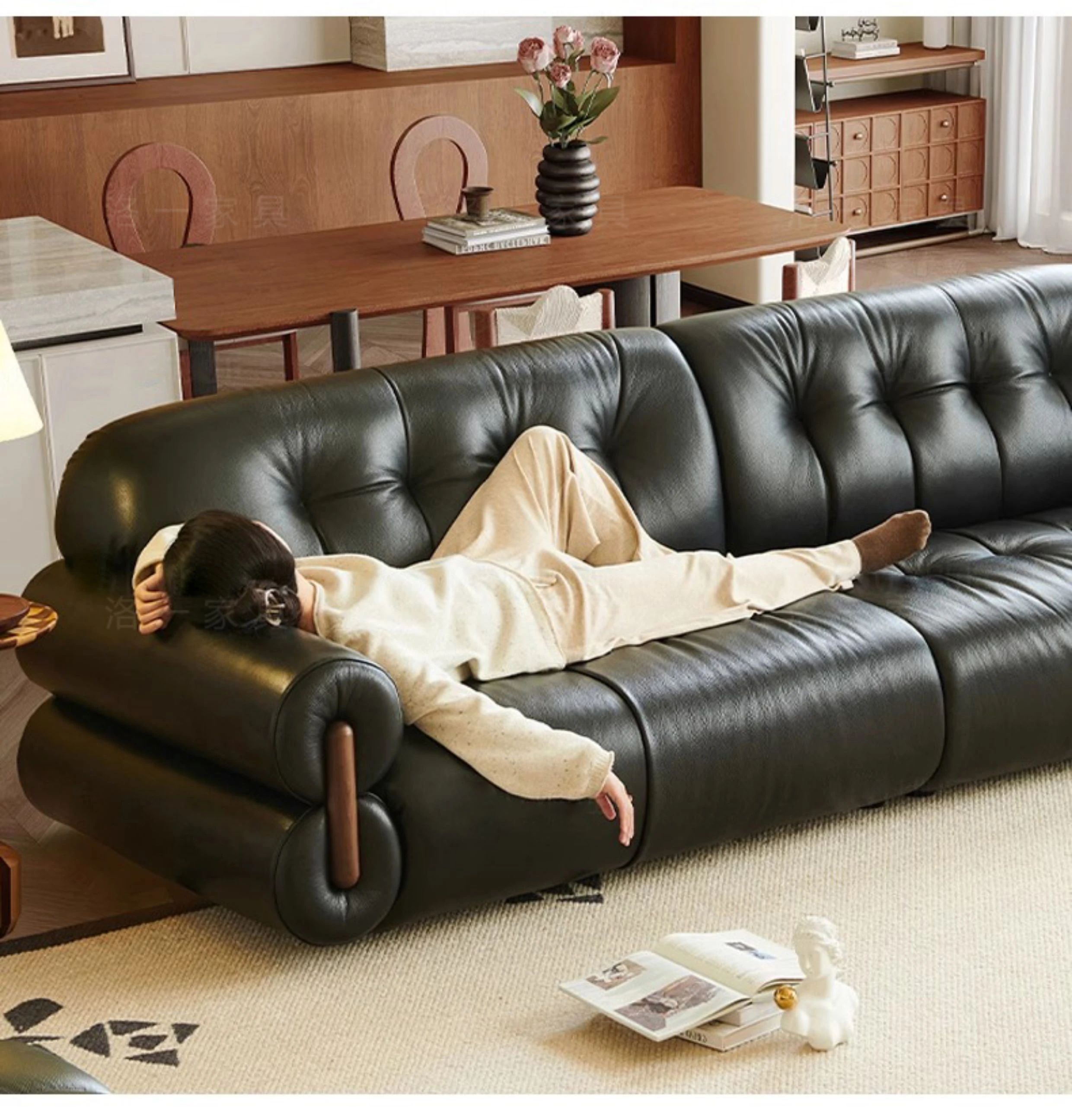 黒糖本革ソファ イタリアンミニマリズム 軽やかなラグジュアリー リビングルーム用 ブラックトップグレインレザー デザイナー直営 クラウドソファ