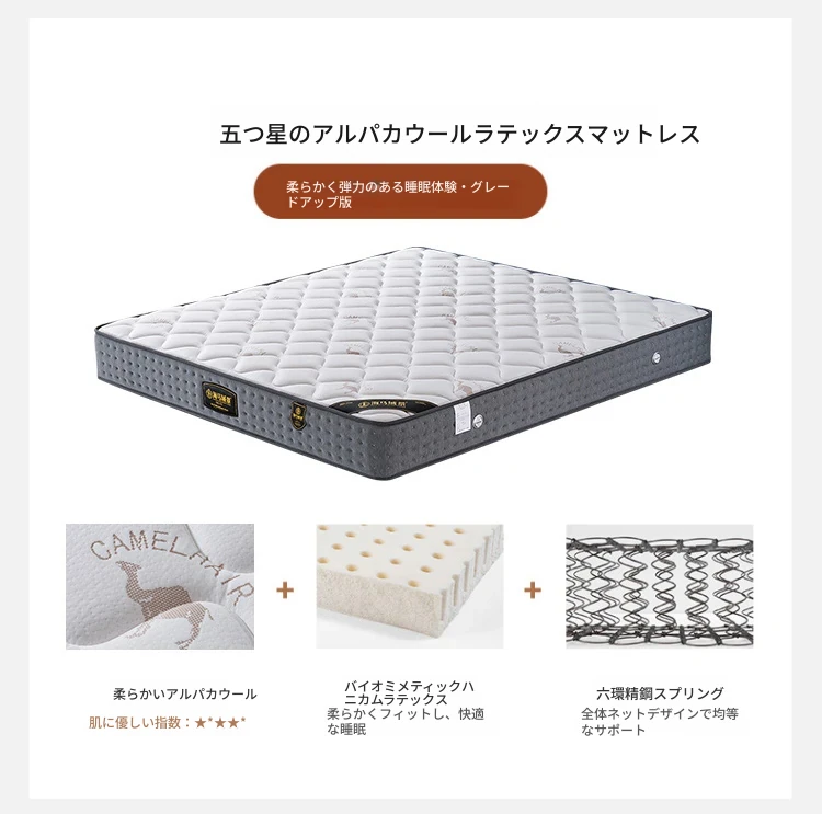 【フラッグシップ版】シングルベッド+(適度な硬さの)5つ星キャメルウールラテックスマットレス(LEDストリップライト付き)
