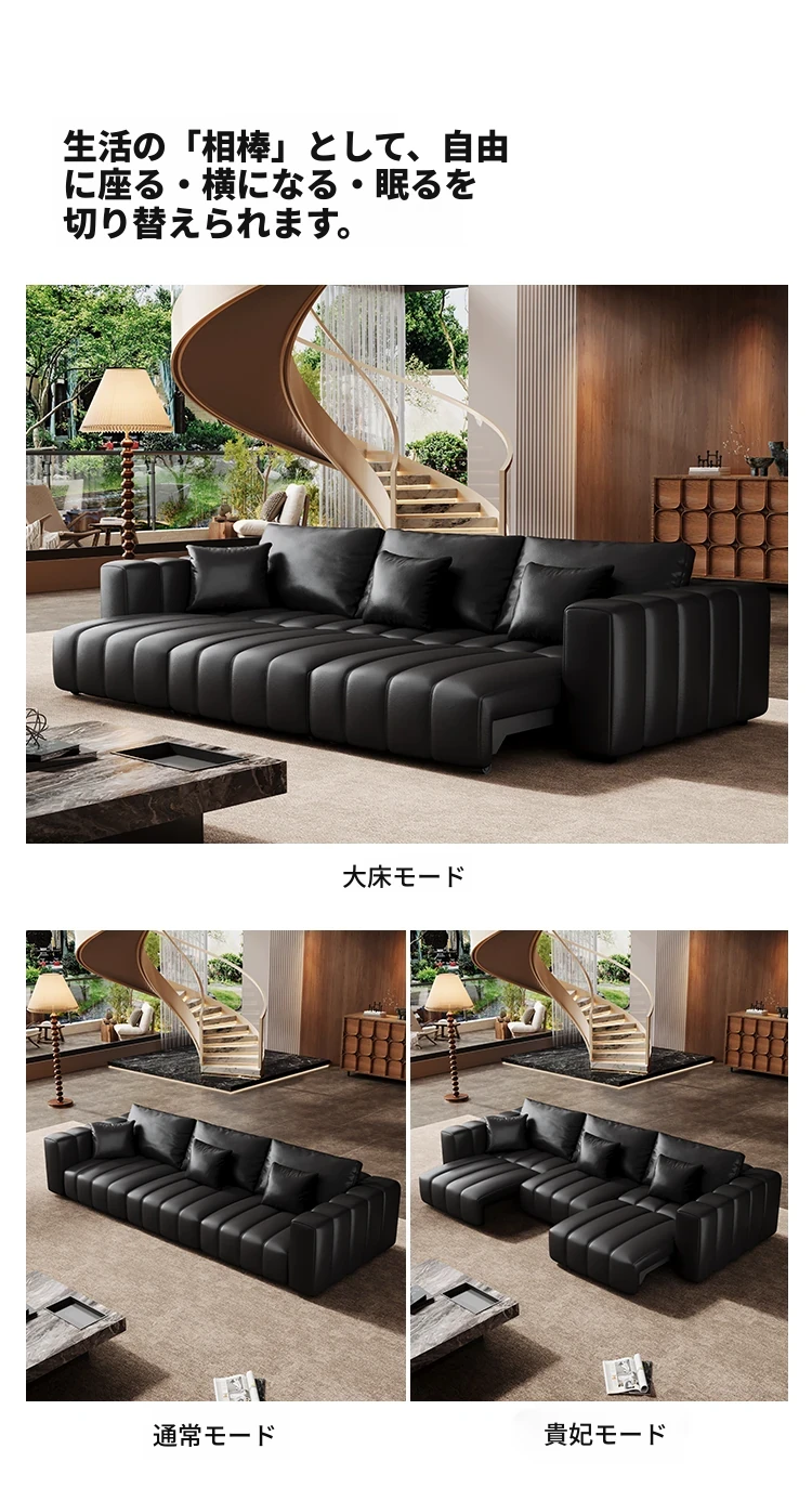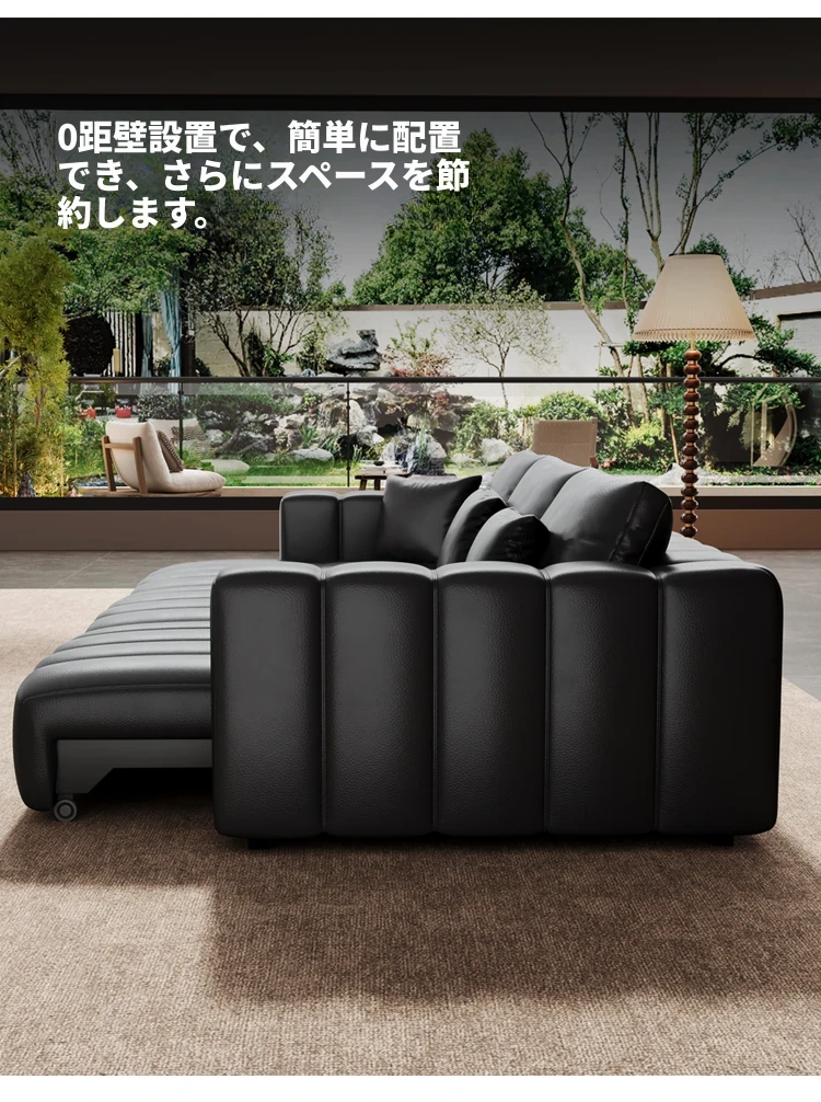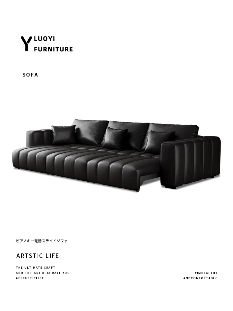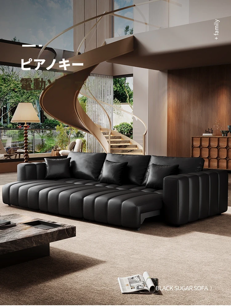 ピアノキー電動本革ソファ|イタリアンミニマリズムデザイン|高級トップグレインレザー使用|小型リビングに最適|伸縮調整可能なソファベッド|快適な座り心地とスタイリッシュな空間を実現!