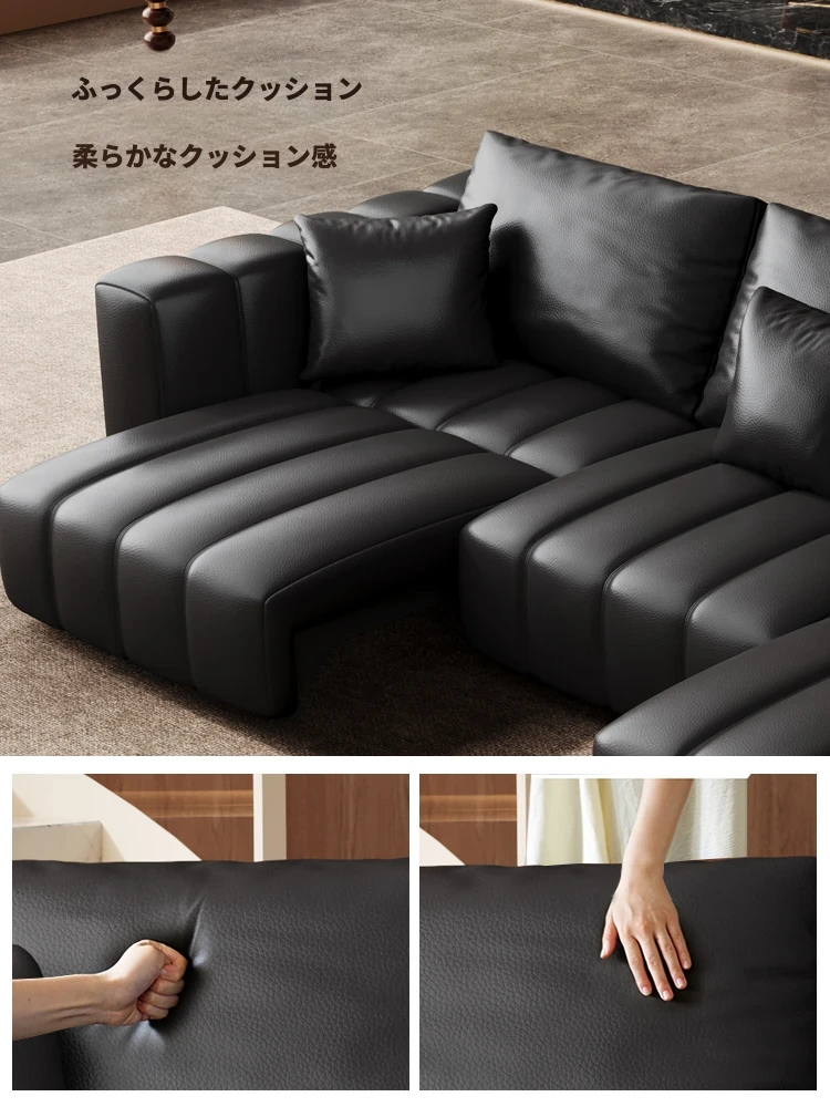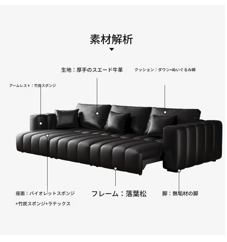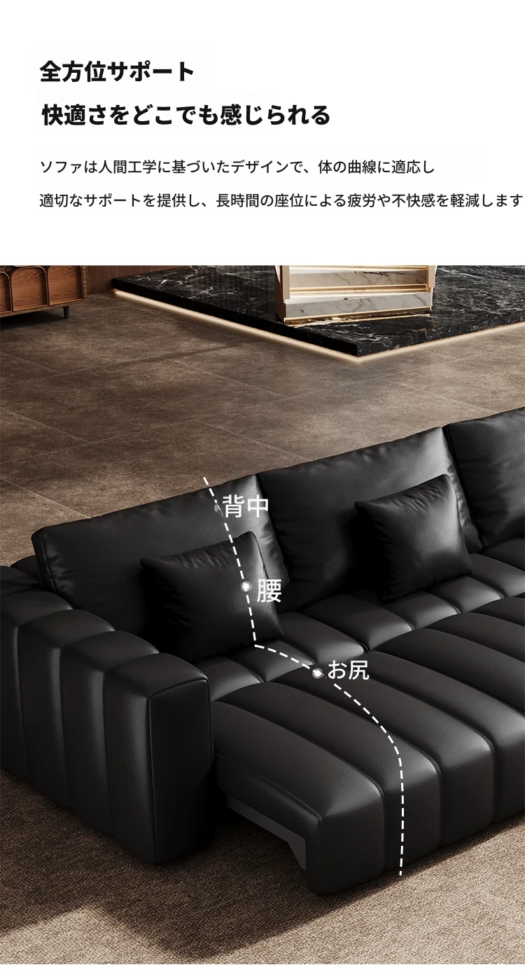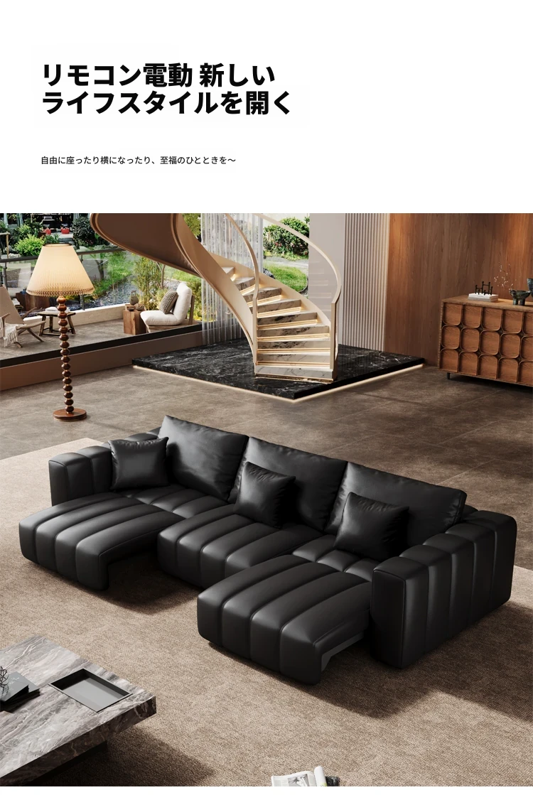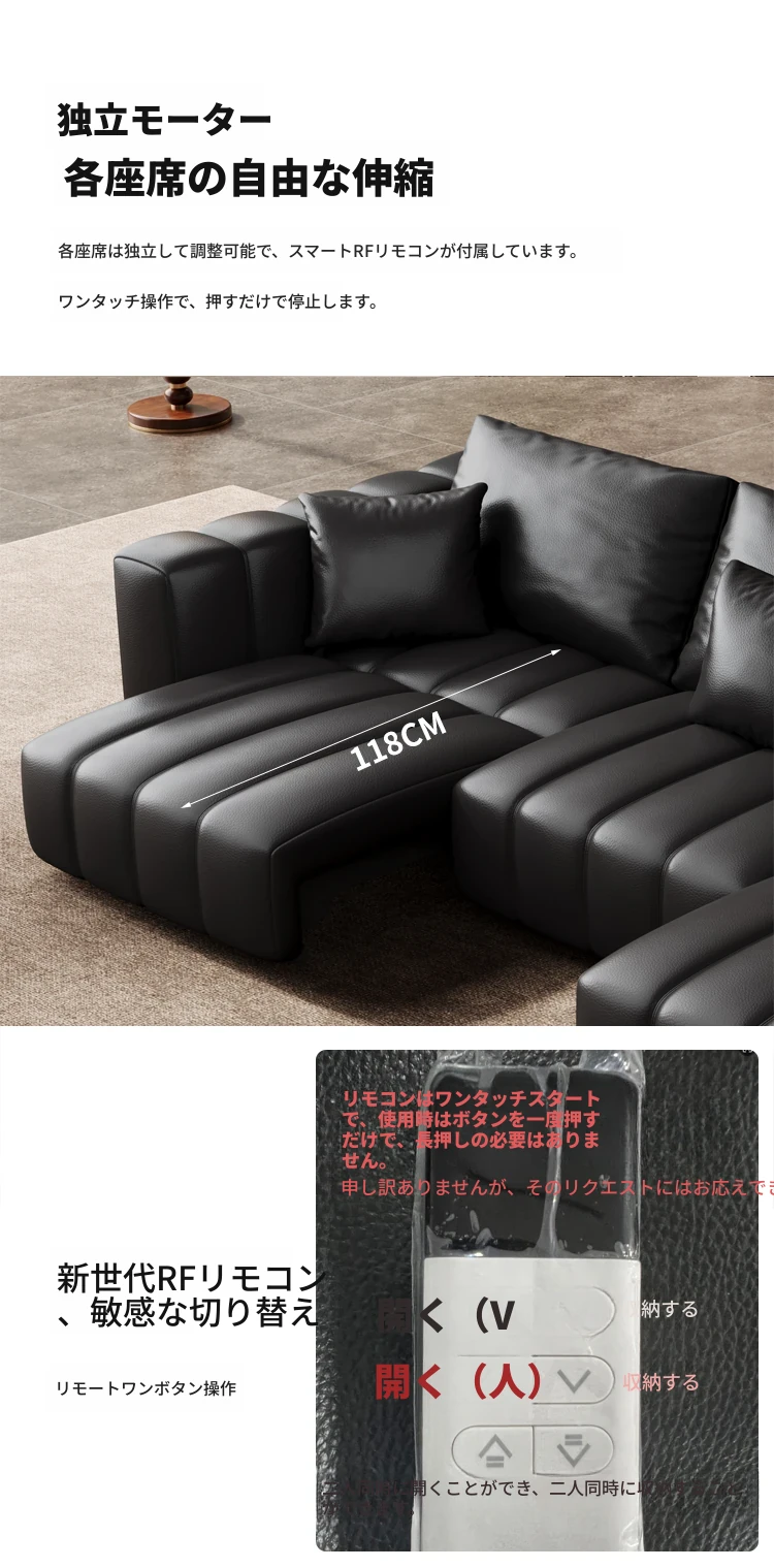ピアノキー電動本革ソファ|イタリアンミニマリズムデザイン|高級トップグレインレザー使用|小型リビングに最適|伸縮調整可能なソファベッド|快適な座り心地とスタイリッシュな空間を実現!