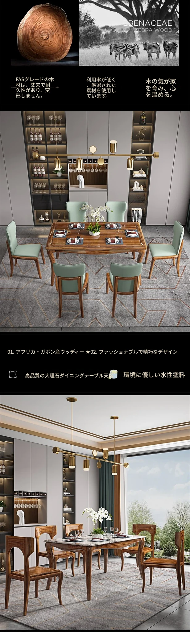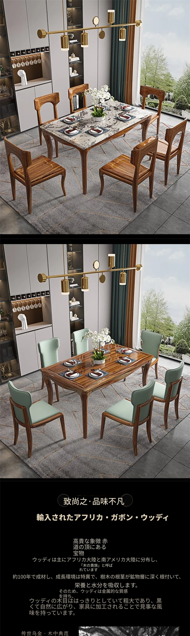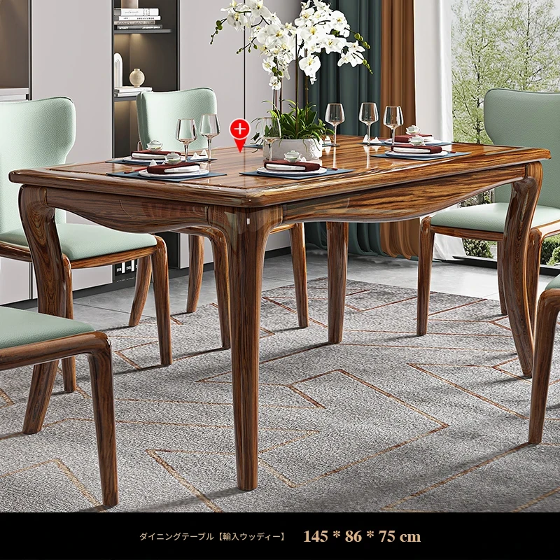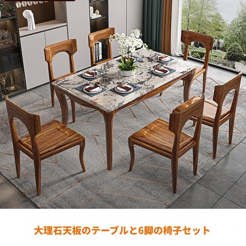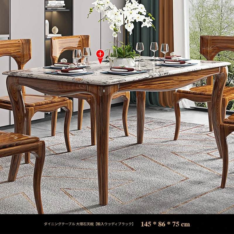 新作高級ウッド&マーブルダイニングテーブルセット 1.45m 長方形 家庭用・別荘に最適なスタイリッシュなデザイン!
