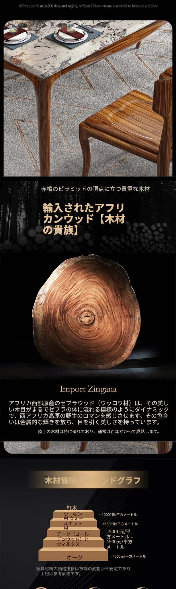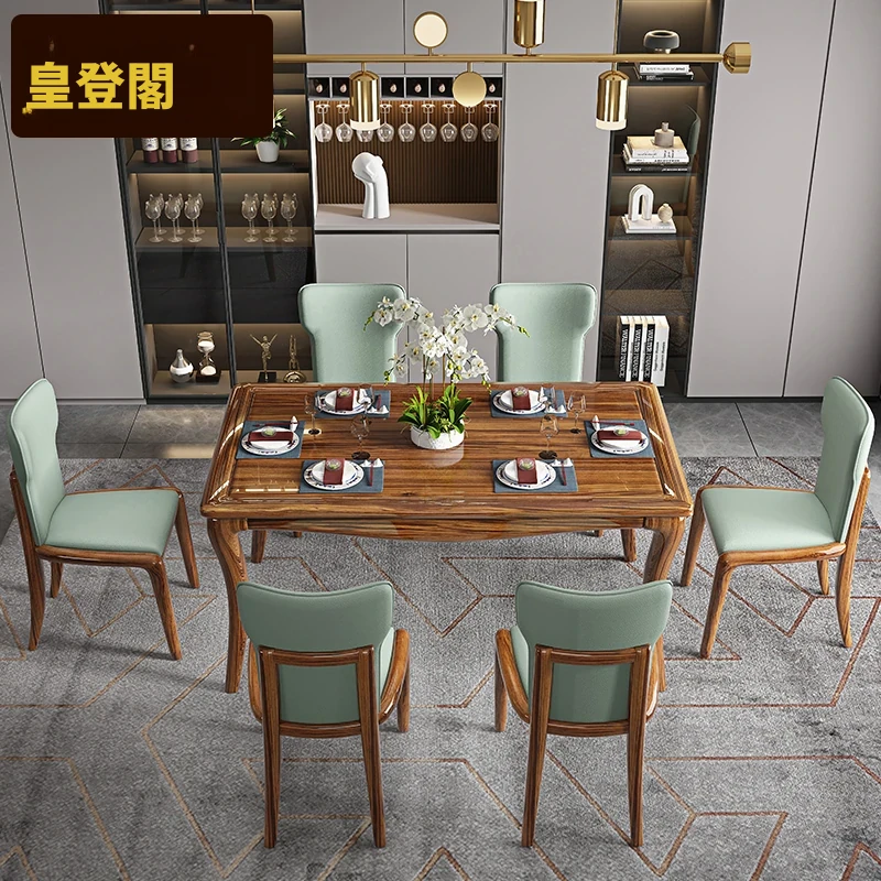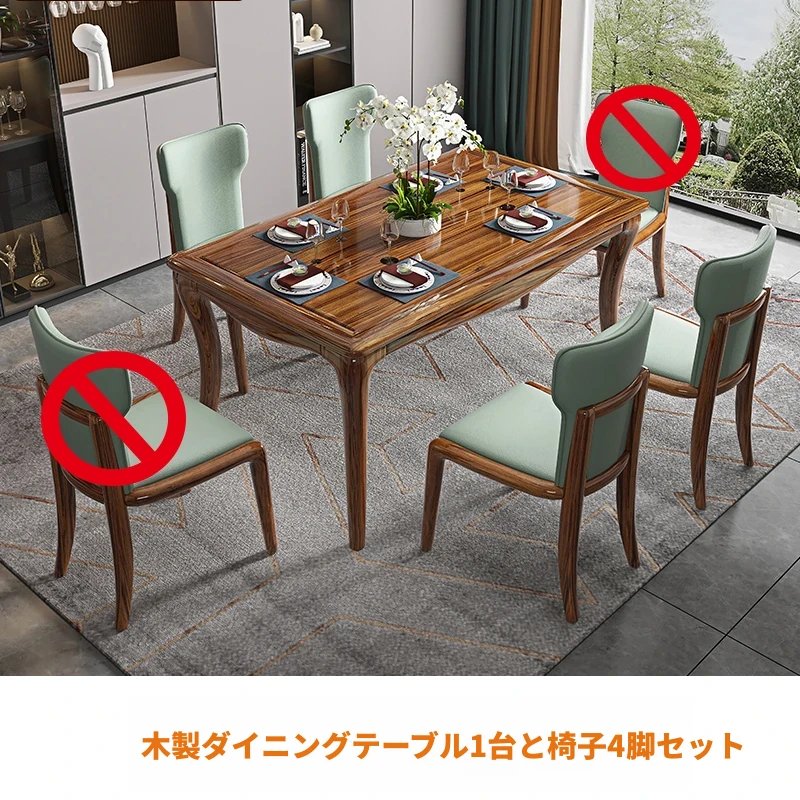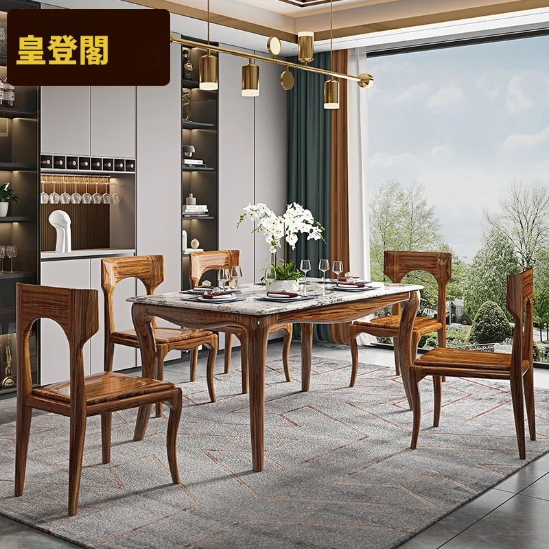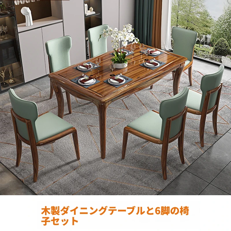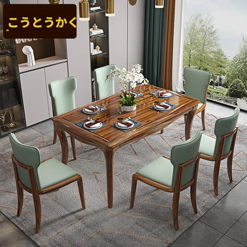 新作高級ウッド&マーブルダイニングテーブルセット 1.45m 長方形 家庭用・別荘に最適なスタイリッシュなデザイン!