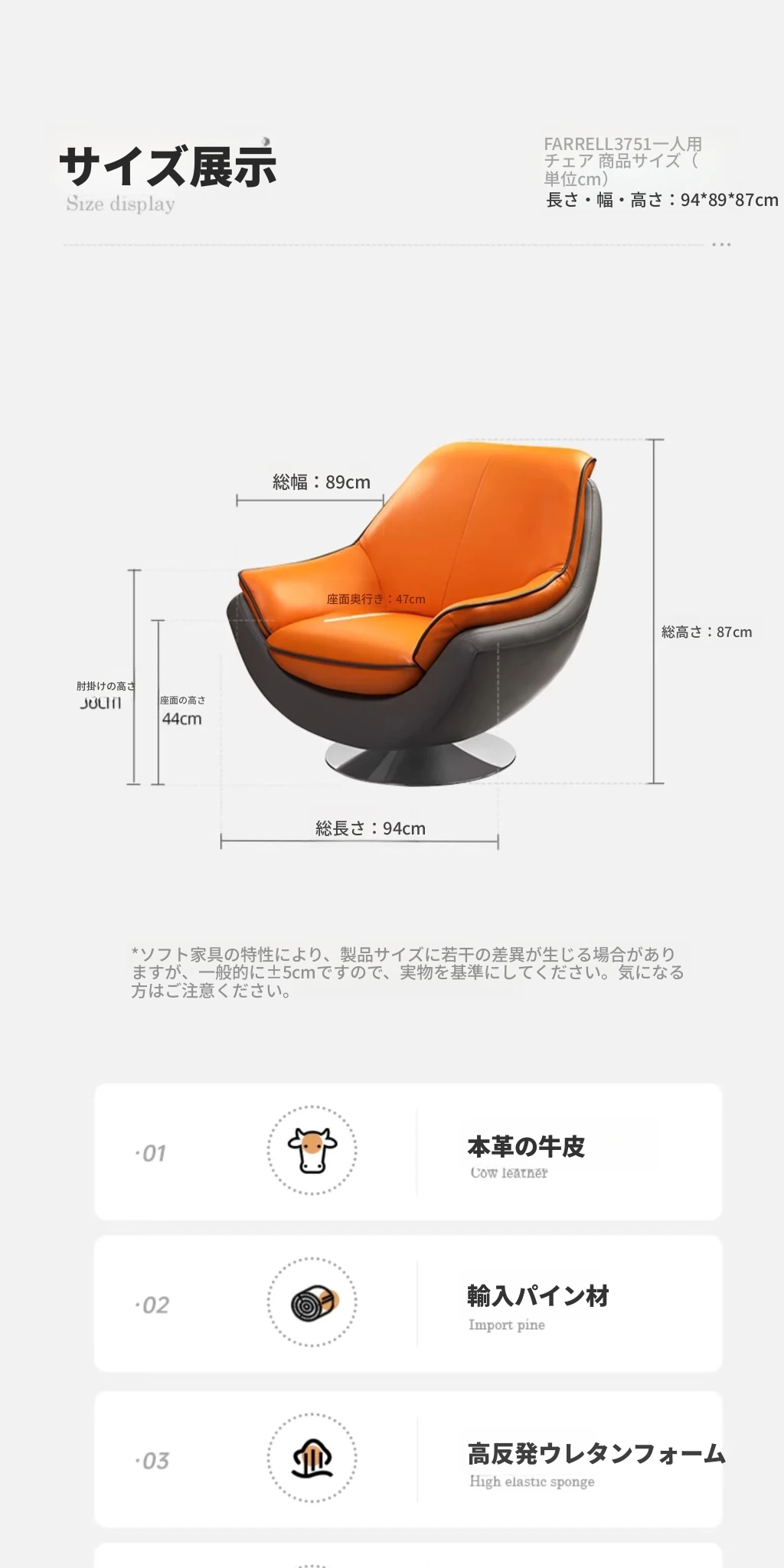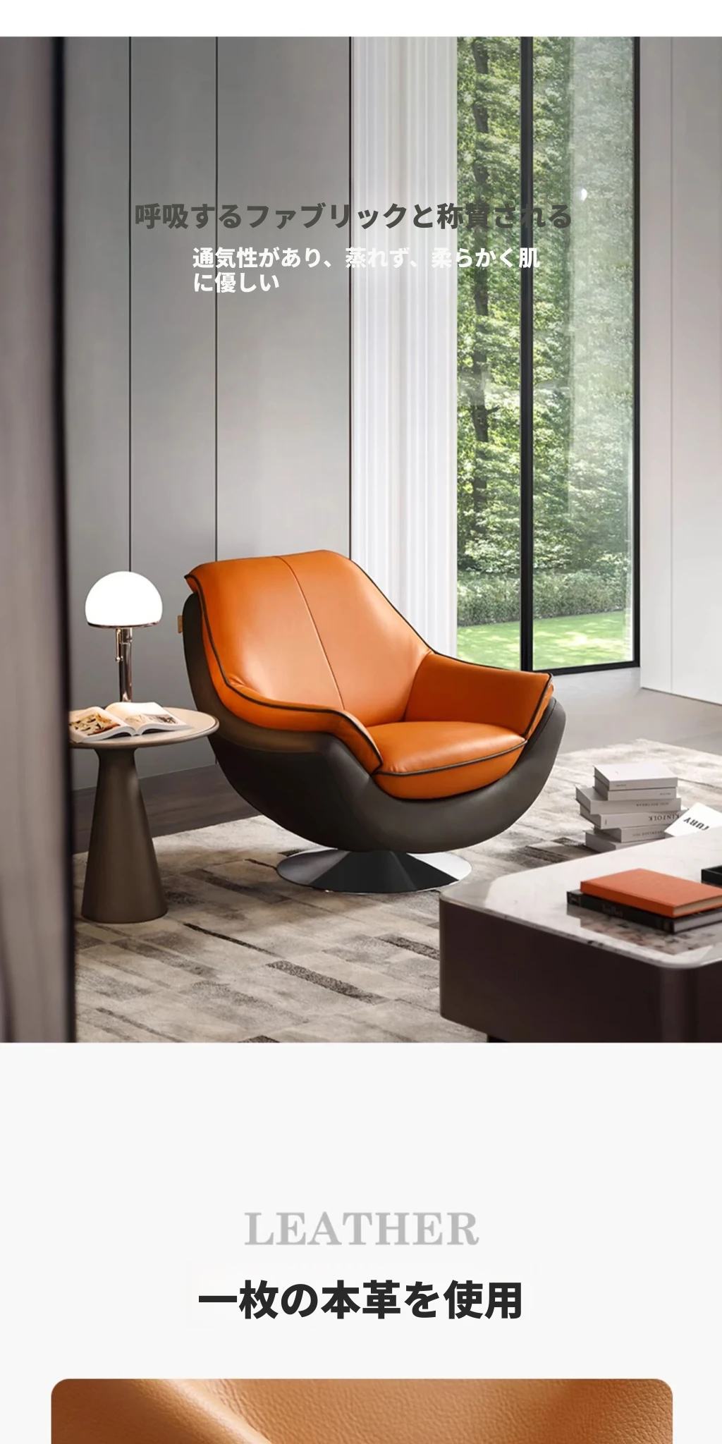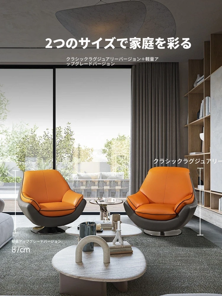 ファレルベッドルームチェア・軽やかでモダンな本革1人用ソファ、回転式リクライニング、シンプルで洗練されたリビングルーム向けの高級感あふれるチェア。