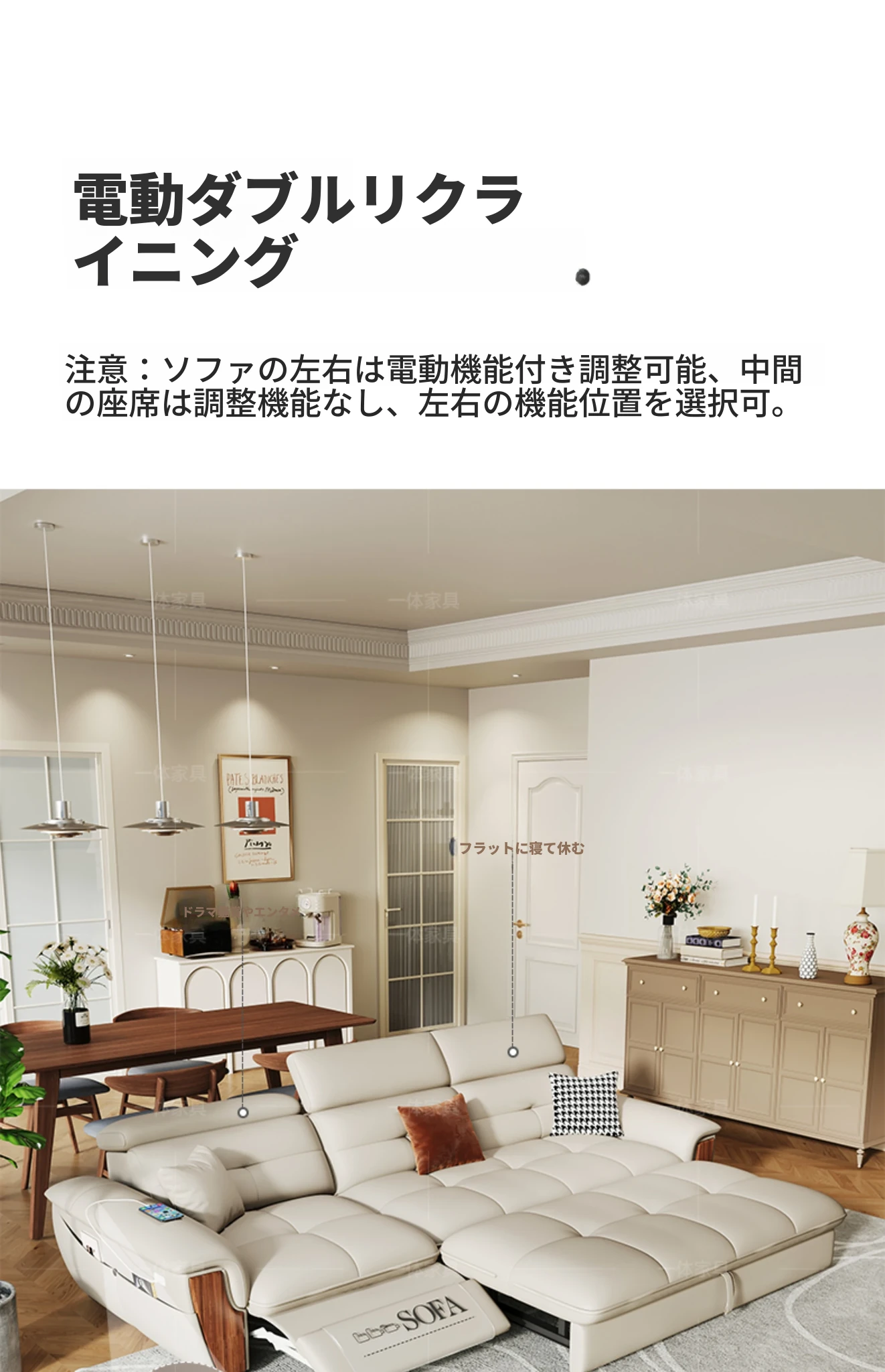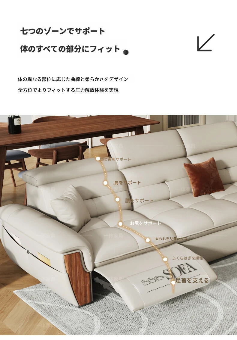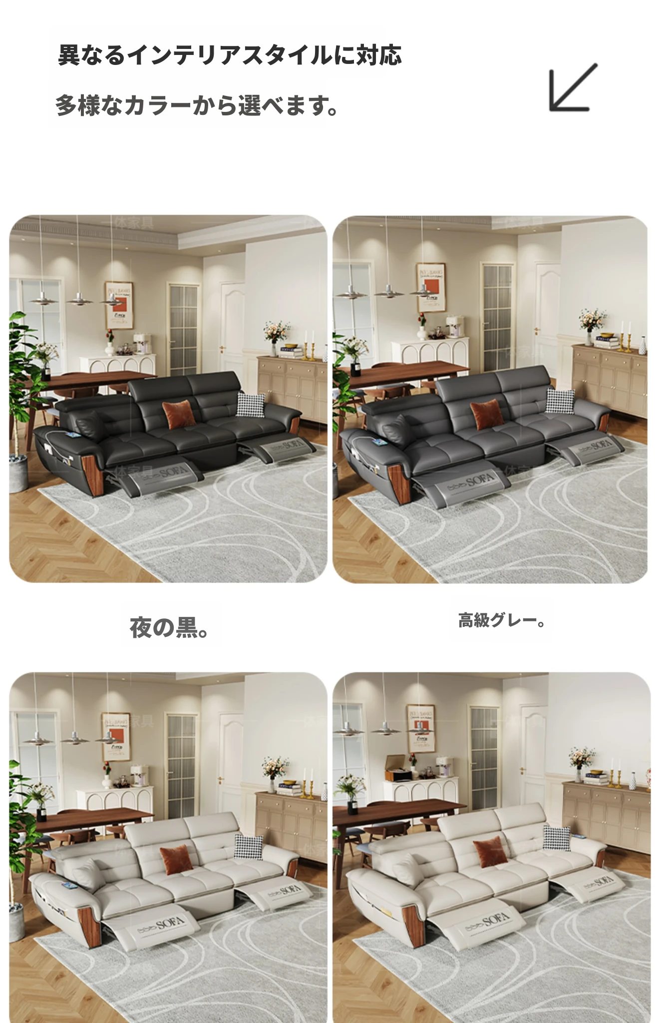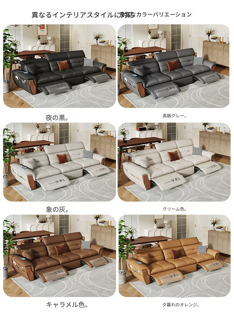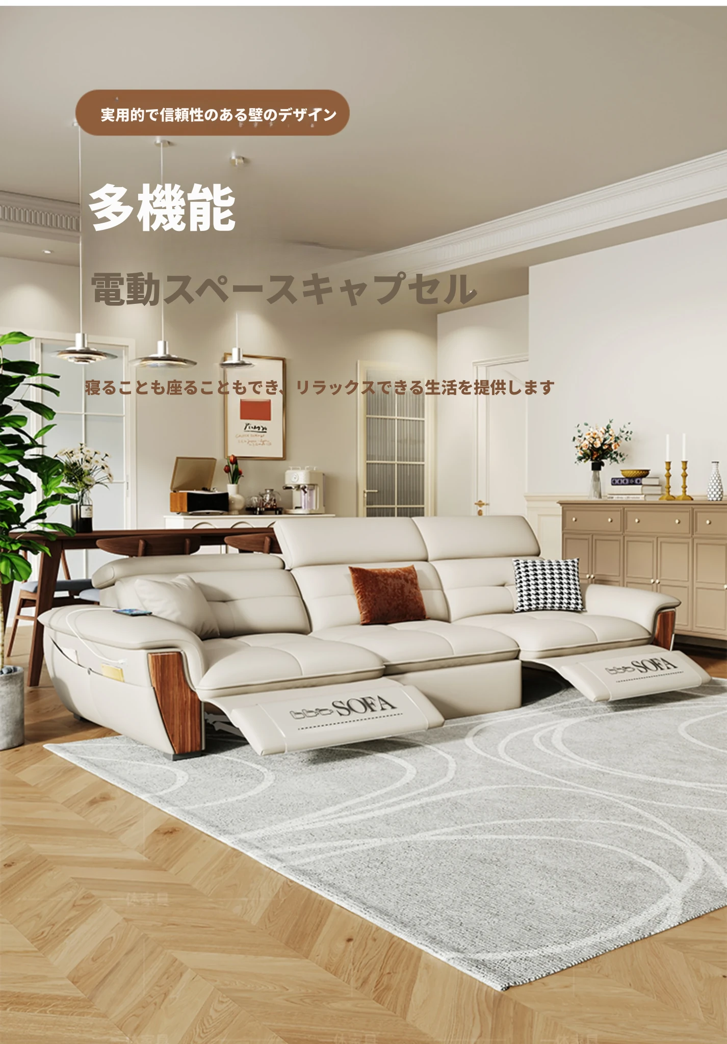 本革製電動伸縮ソファー!調整可能なスペースカプセルデザインで、家庭映画館に最適!リビングにぴったりの直排三人掛け、壁にぴったりフィットします。快適な座り心地を実現し、リラックスしたひとときを提供します!