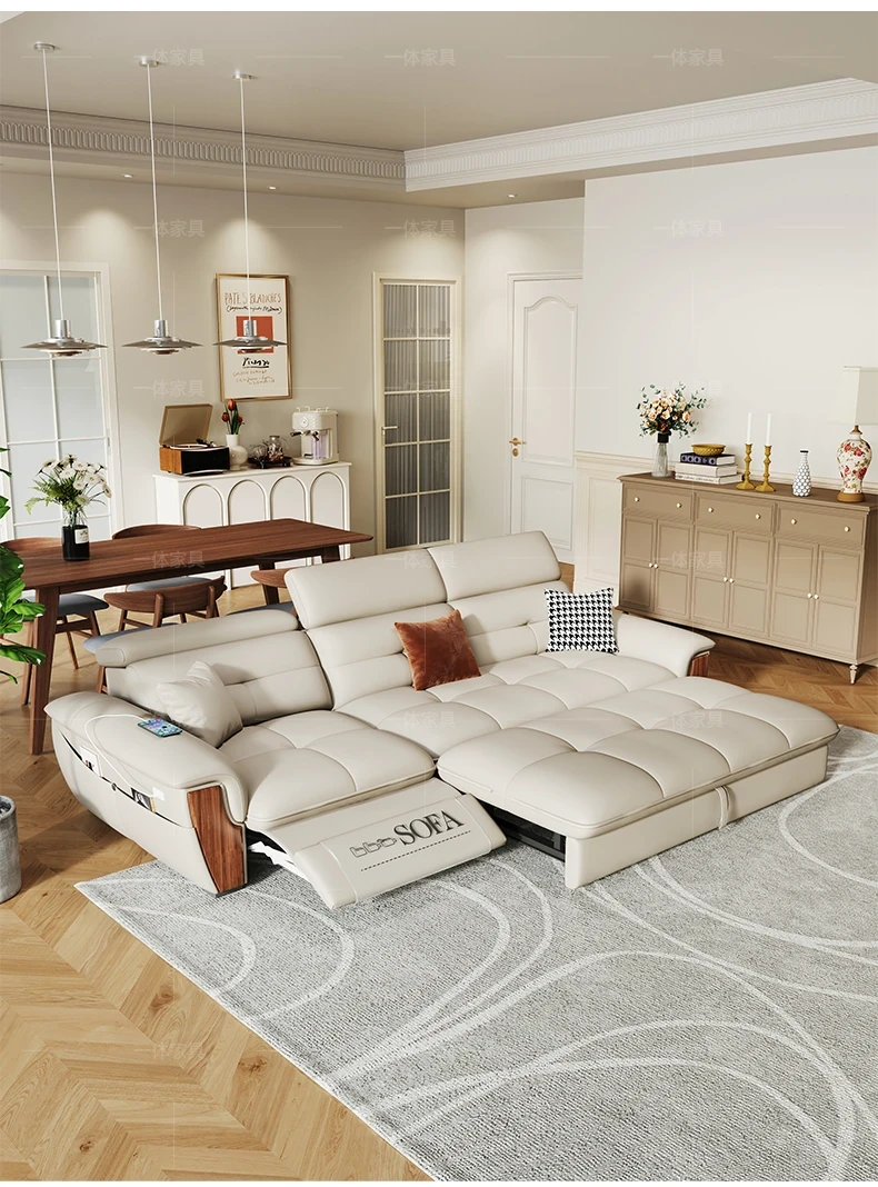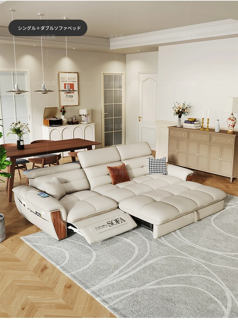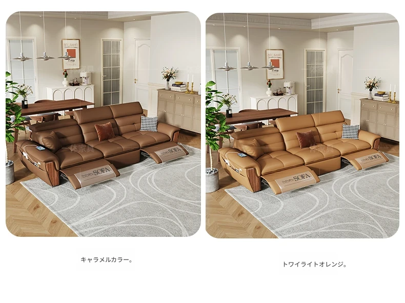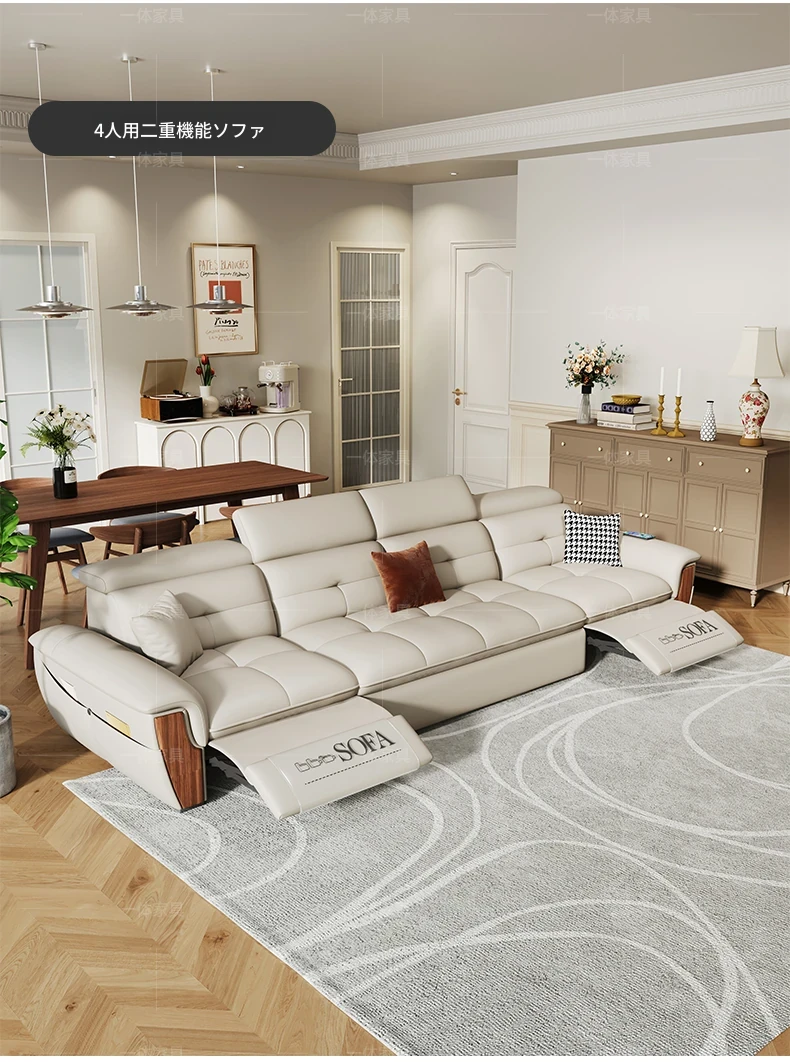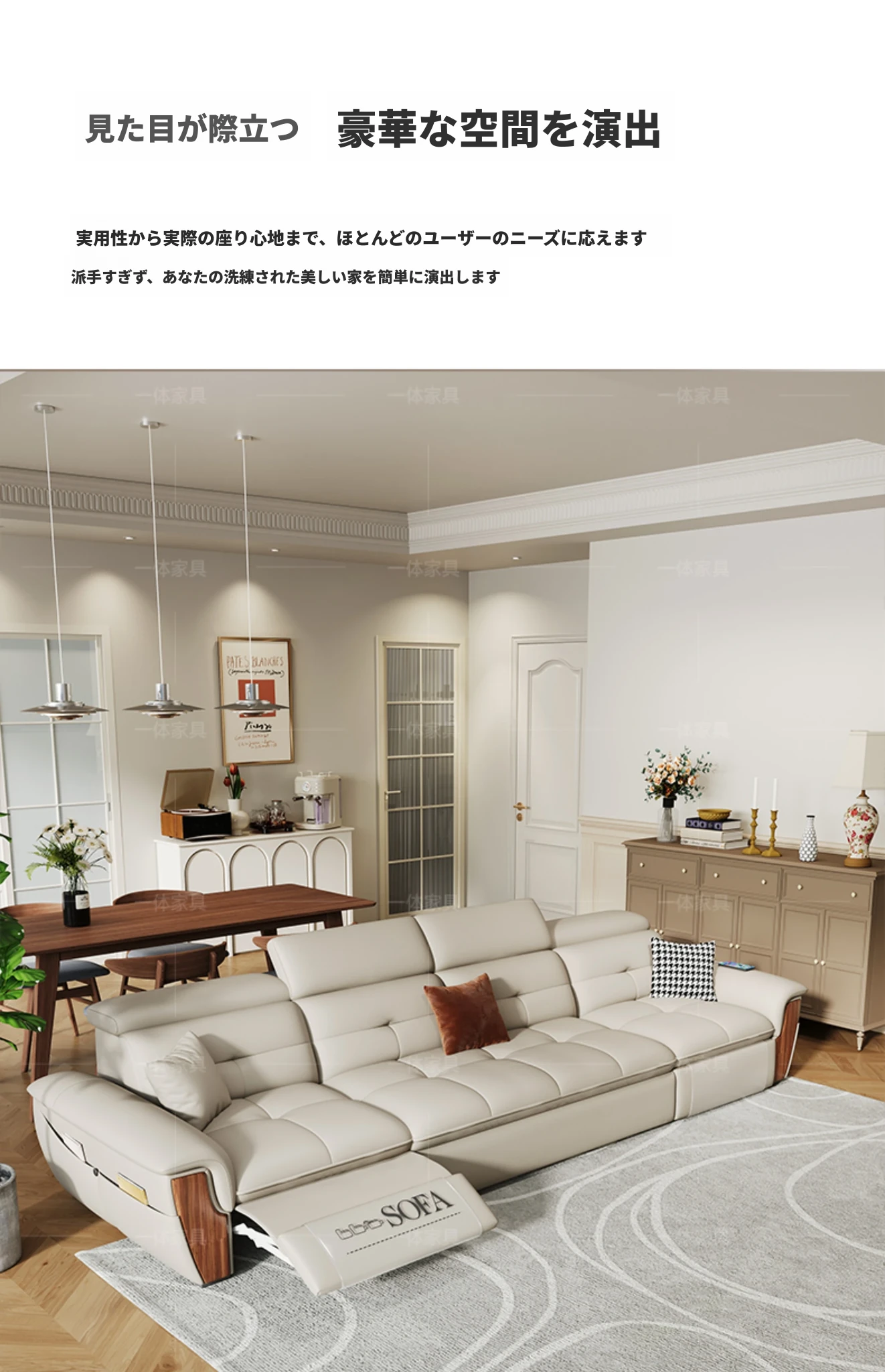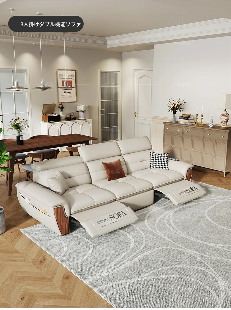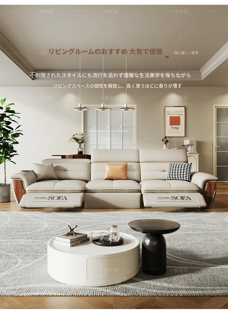 本革製電動伸縮ソファー!調整可能なスペースカプセルデザインで、家庭映画館に最適!リビングにぴったりの直排三人掛け、壁にぴったりフィットします。快適な座り心地を実現し、リラックスしたひとときを提供します!