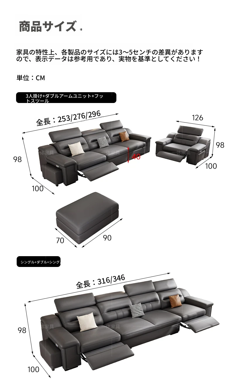 【接触面真皮】2.96m三位{双電動}