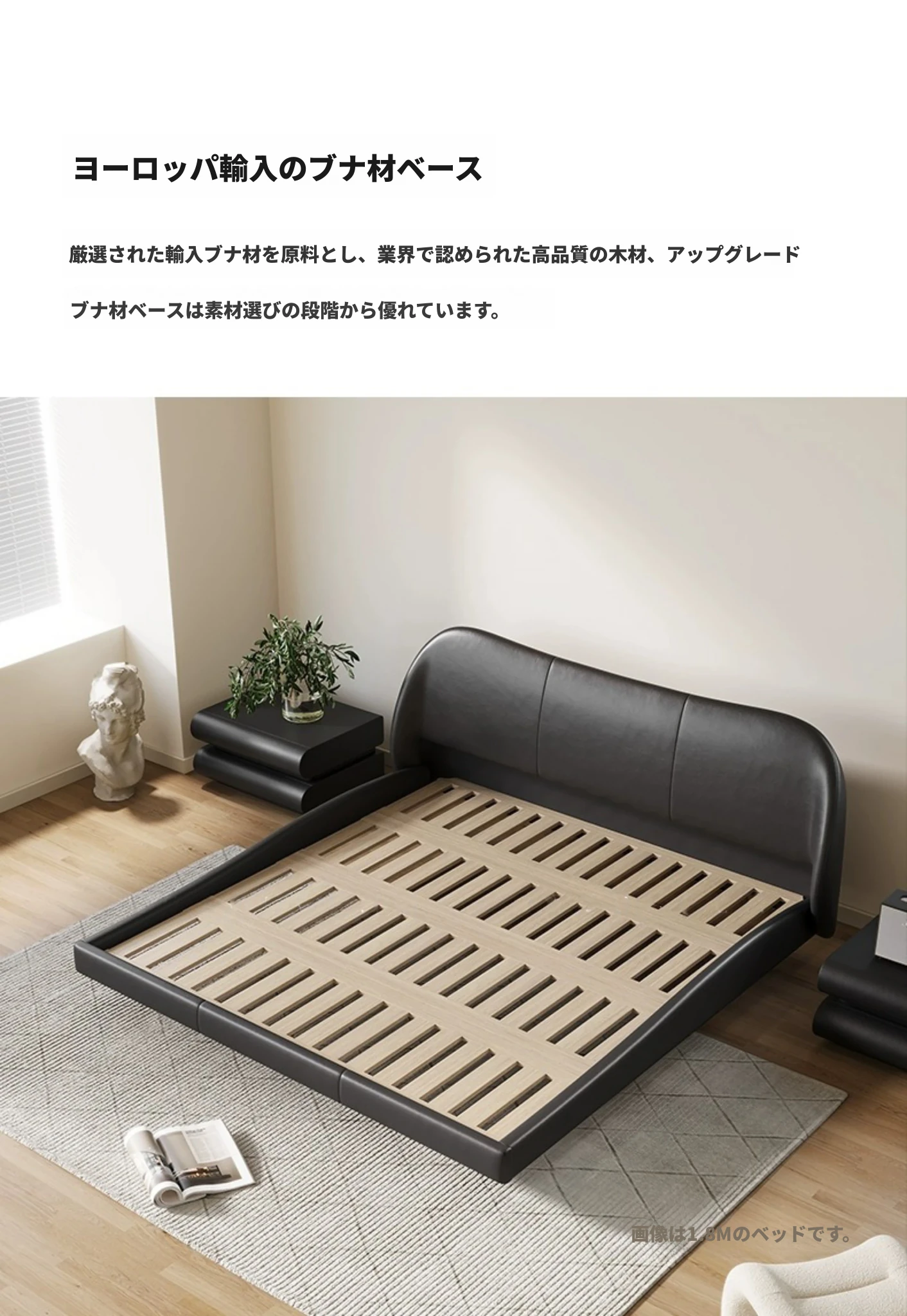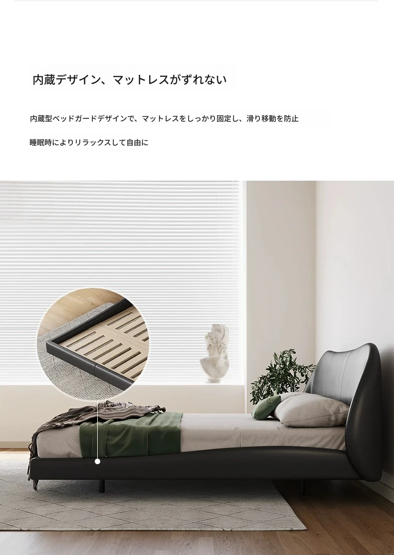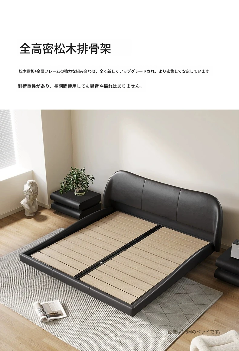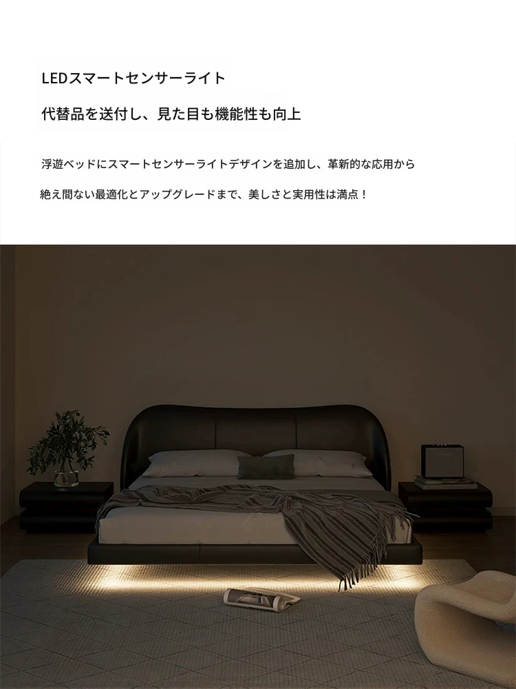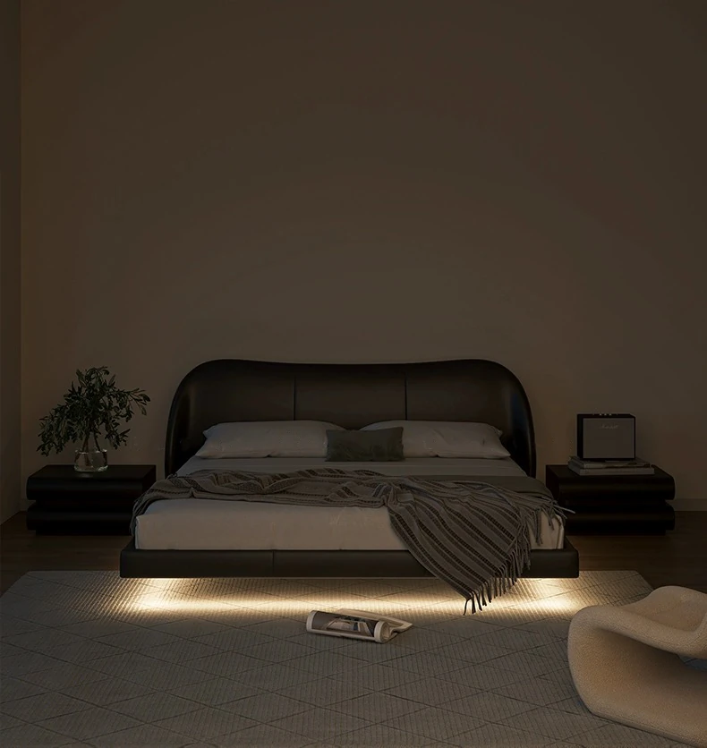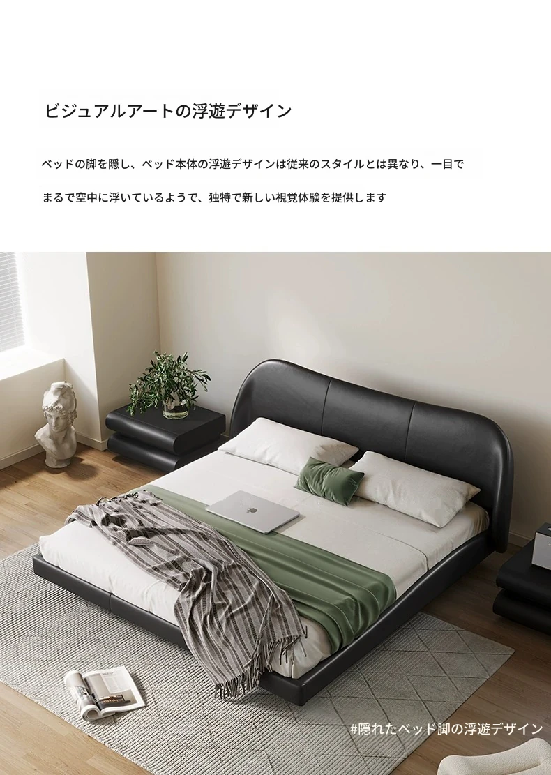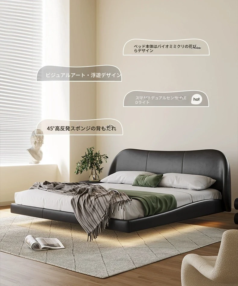 Hyacinth Floating Bed – Italian Minimalist Genuine Leather Bed with Modern Black Petal Design, Retro Soft-Padded Bed for Master Bedroom