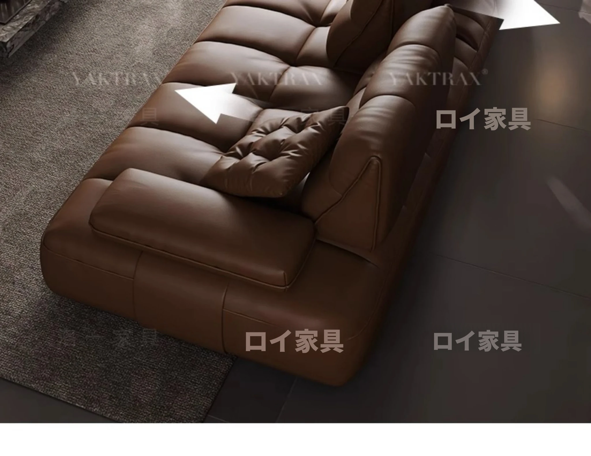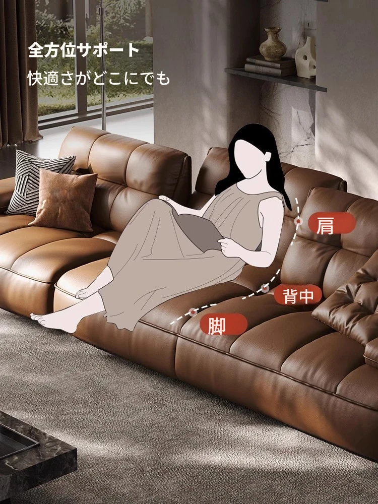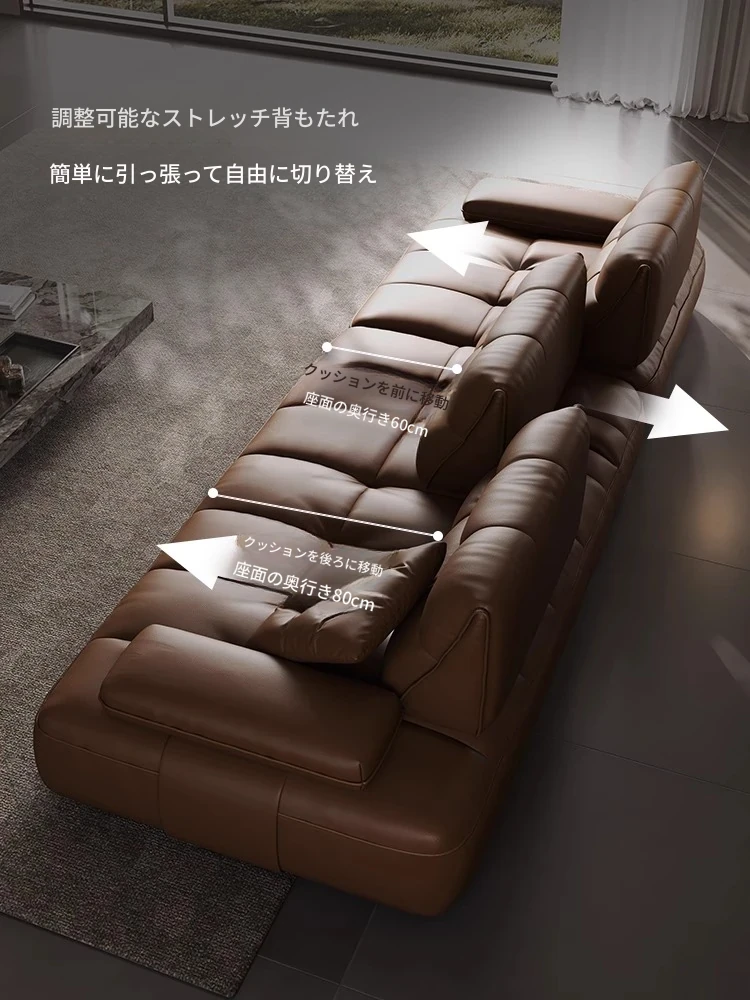 イタリアンミニマルデザインの大座深ソファ、調整可能な背もたれ付き!ヴィンテージ風のローレンス本革ソファ、上質なトップグレインレザー使用で、贅沢な座り心地を実現。あなたのリビングに洗練されたスタイルを!