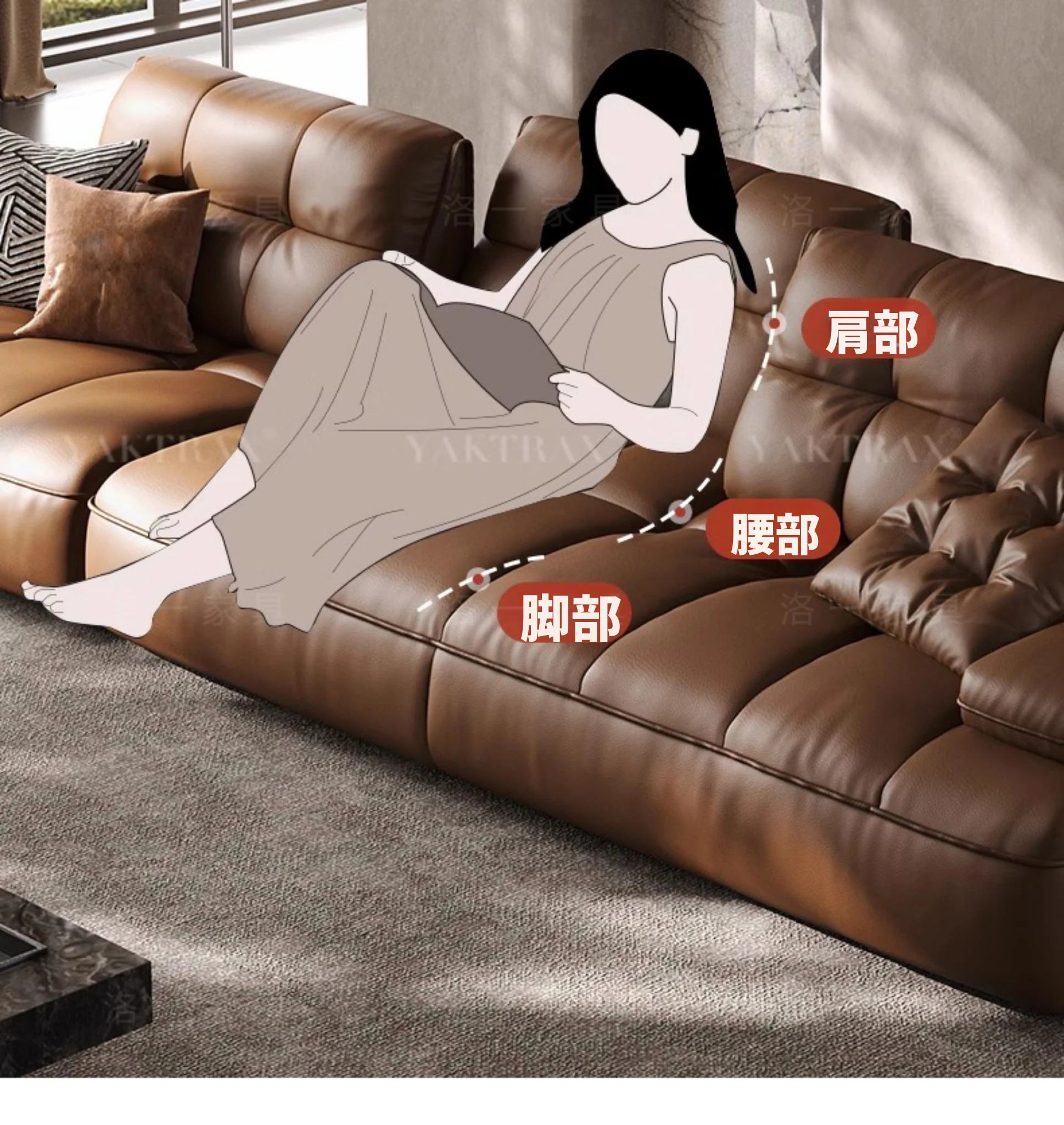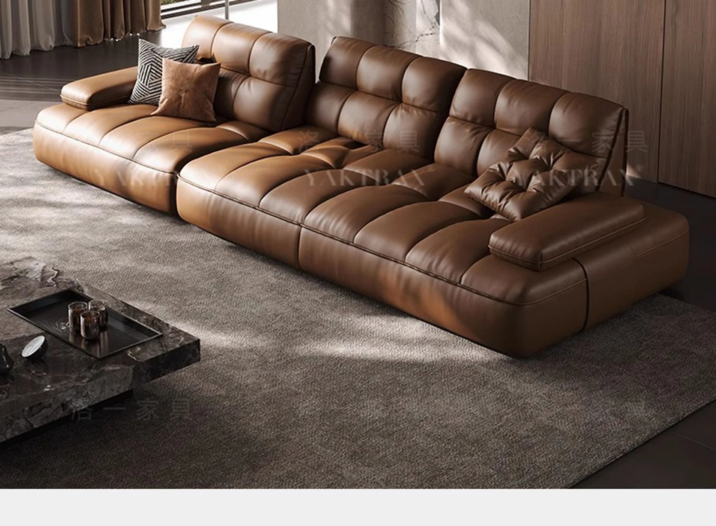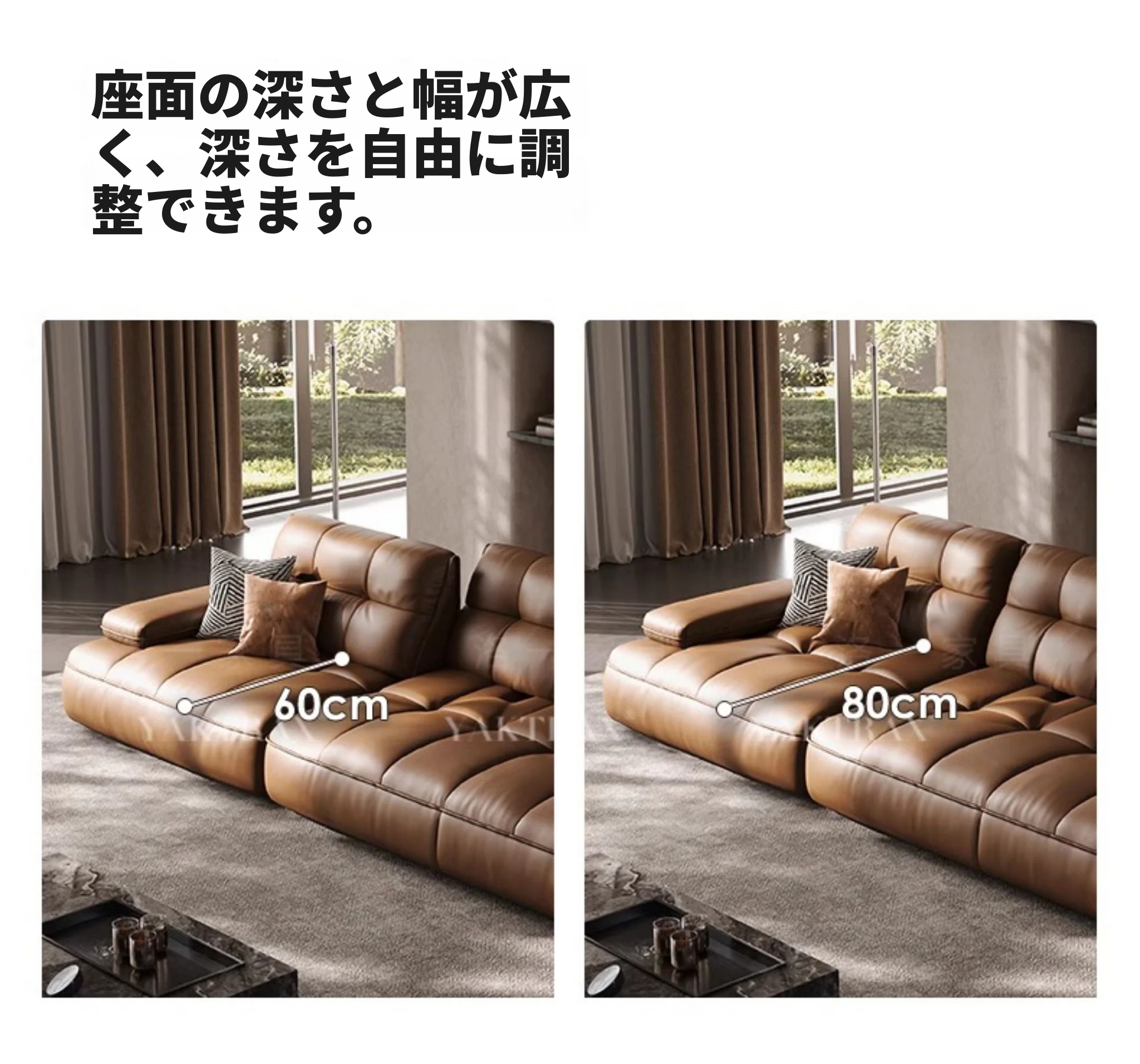 イタリアンミニマルデザインの大座深ソファ、調整可能な背もたれ付き!ヴィンテージ風のローレンス本革ソファ、上質なトップグレインレザー使用で、贅沢な座り心地を実現。あなたのリビングに洗練されたスタイルを!