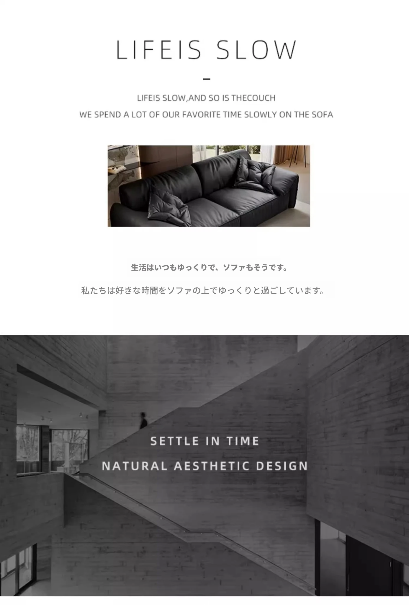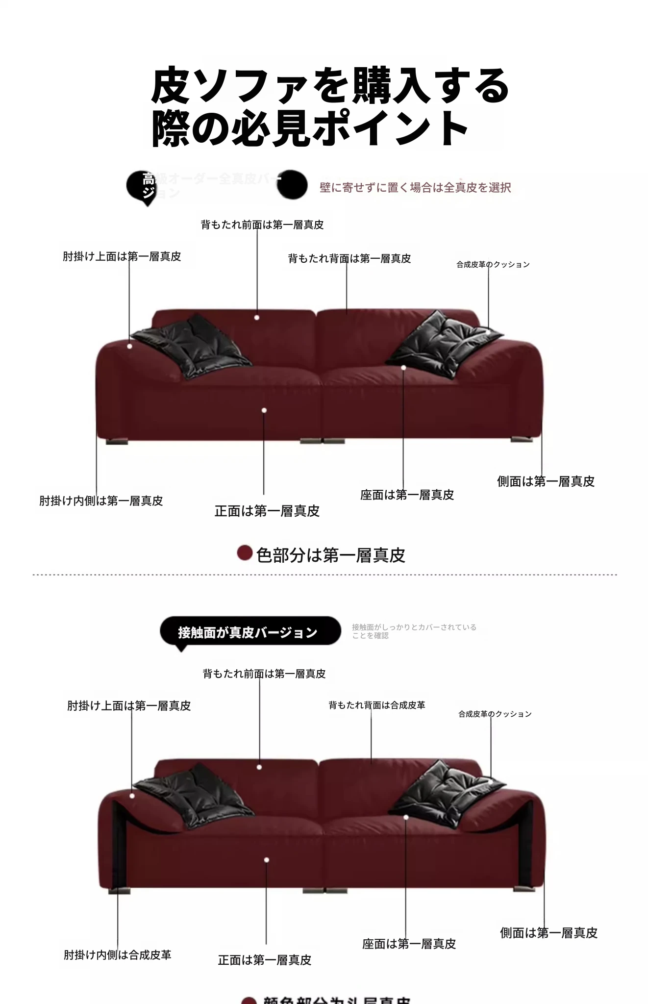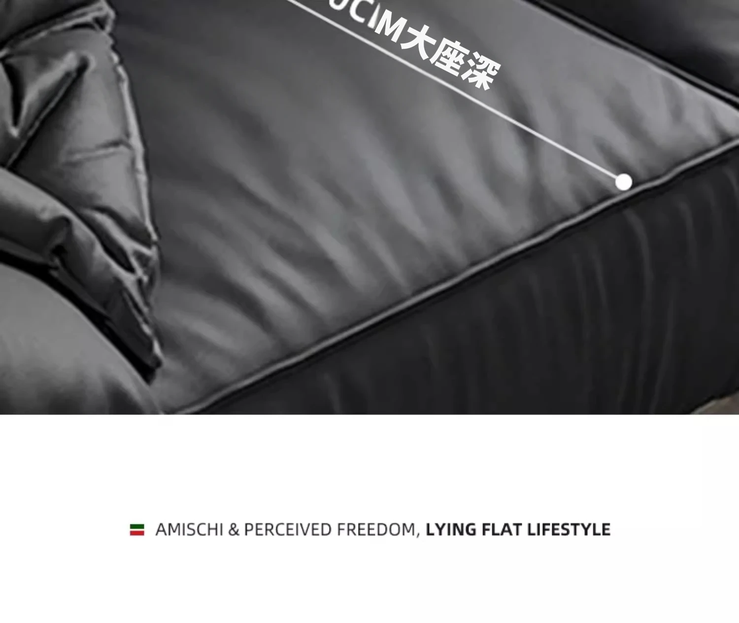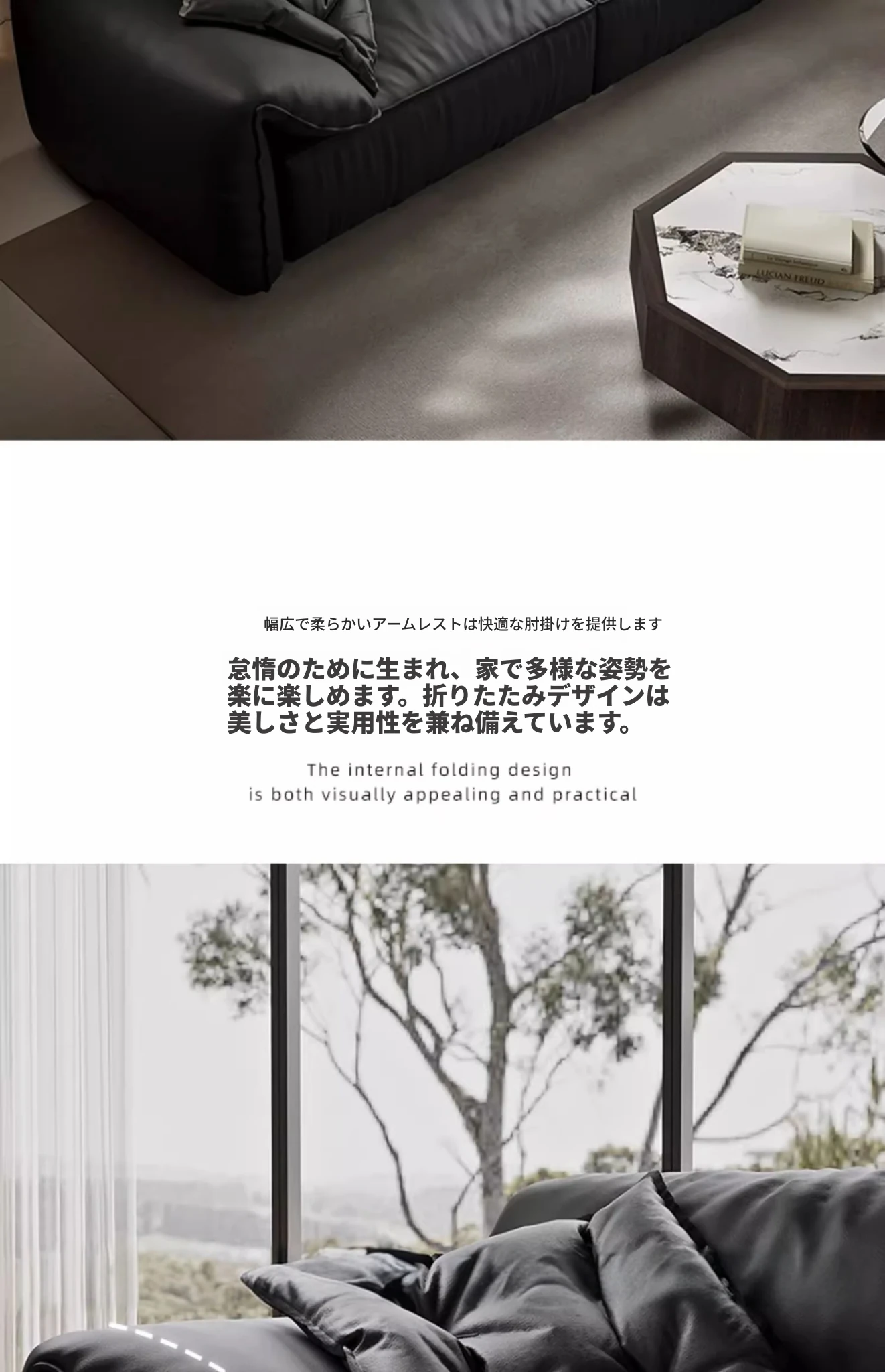 本革製イタリアンミニマリストヴィラ用リビングルーム向け、半アニリン仕上げのブラックダウン・エレファントイヤー本革ストレートソファ。洗練されたデザインで、贅沢な居心地を実現!