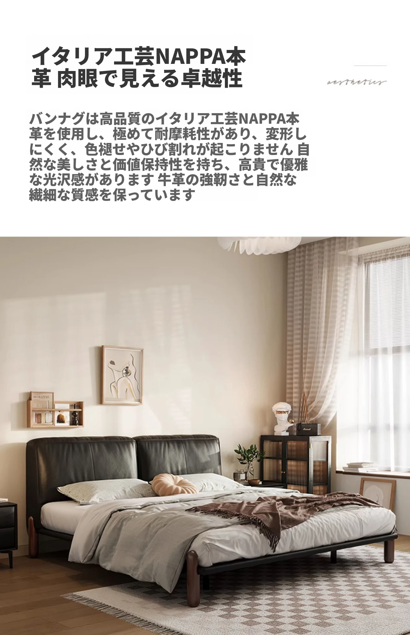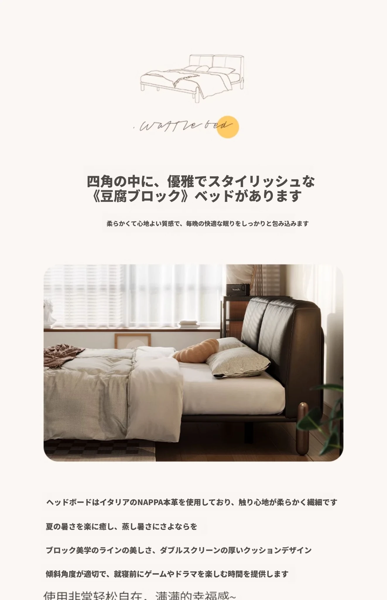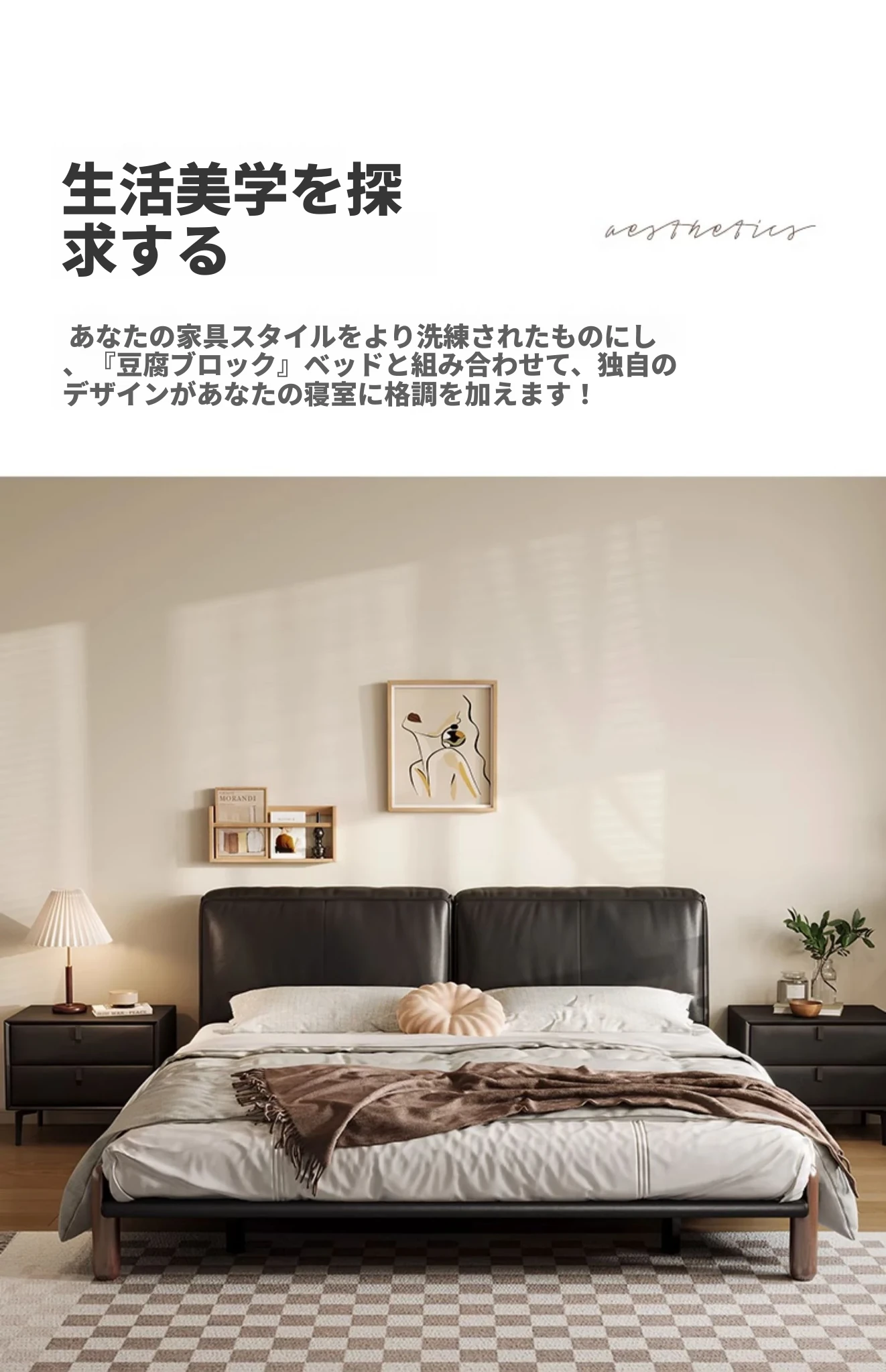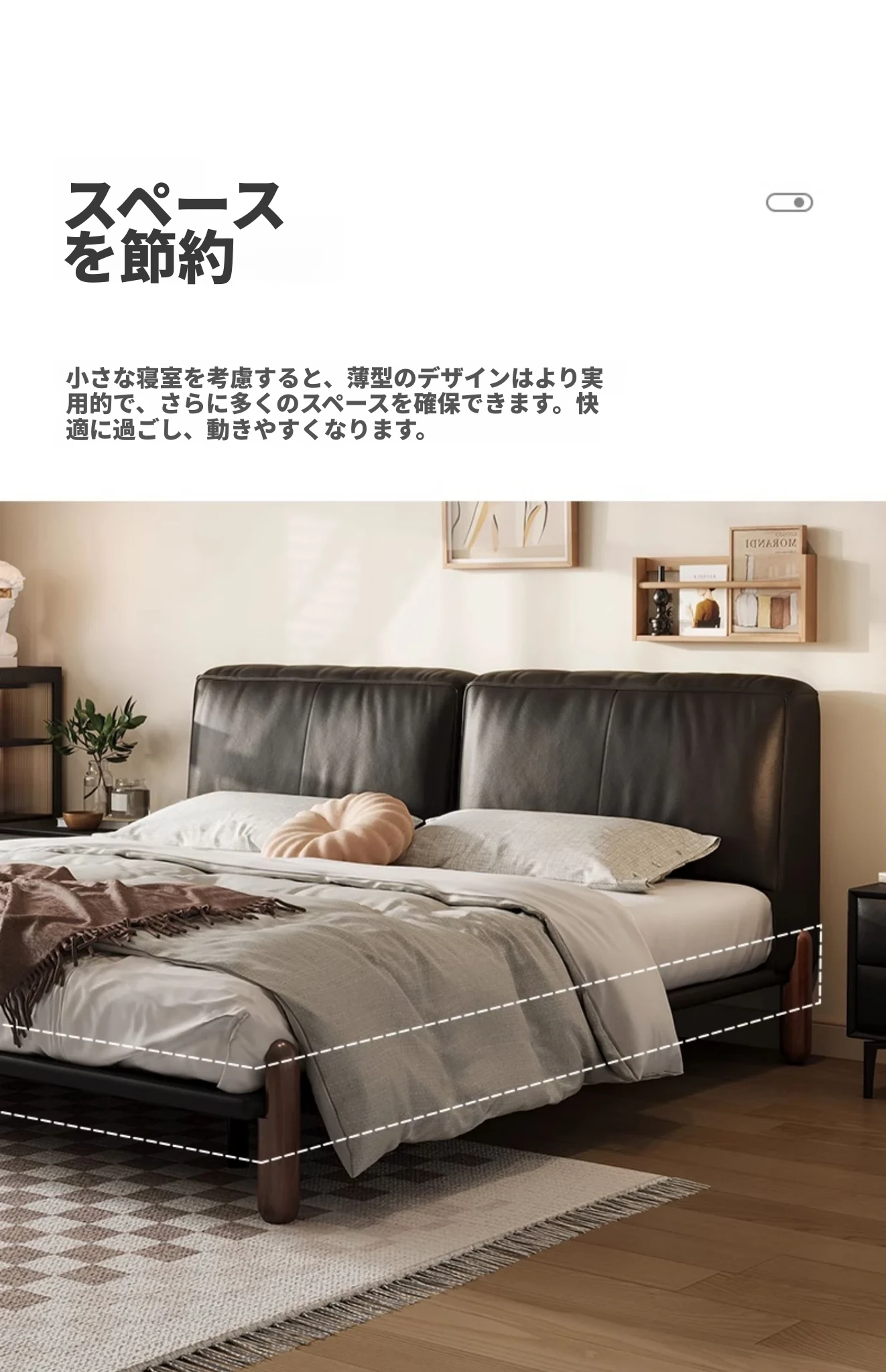 イタリアンミニマルデザインの本革トーフブロックベッド - モダンでシンプルな主寝室用、ブラックのソフトパッケージ、無垢材の脚付き、25年新作のウェディングベッド。快適さとスタイルを両立した一品です!