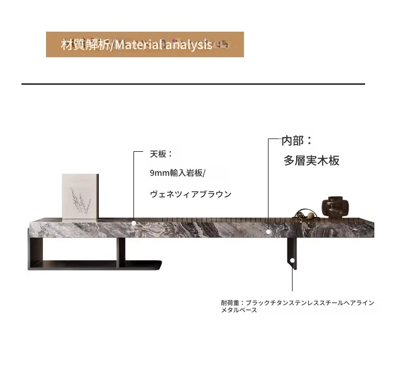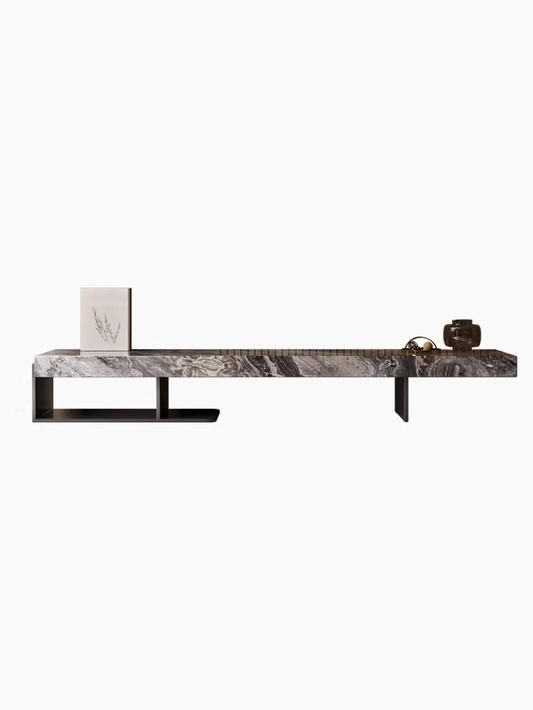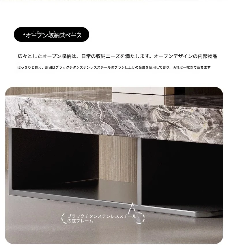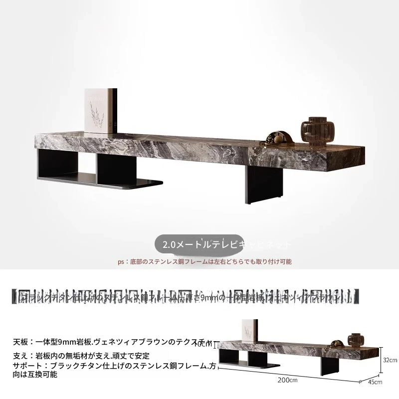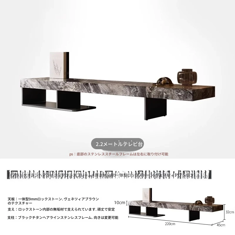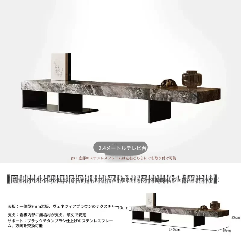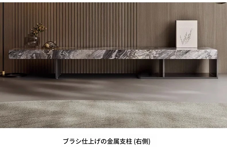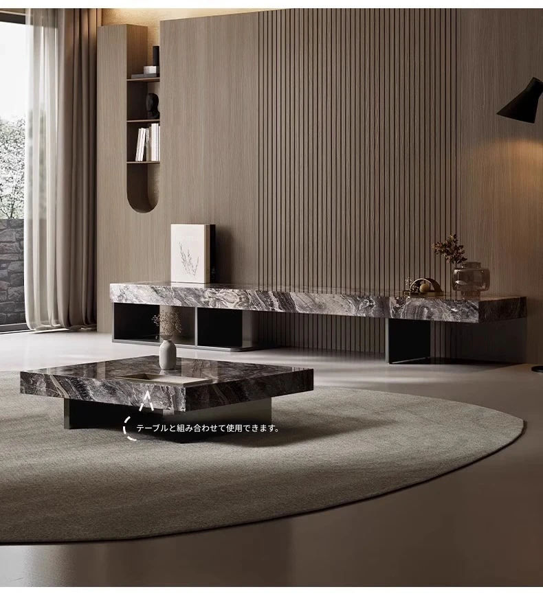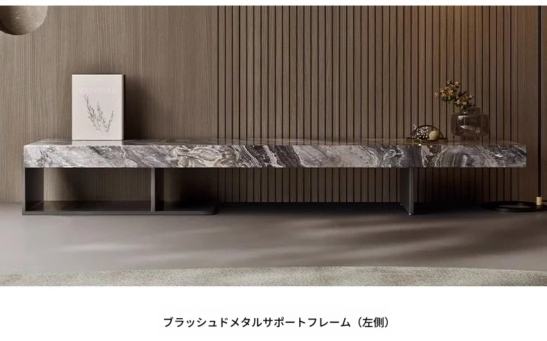 イタリアンミニマリストの石板テレビキャビネット - モダンでシンプルな高級リビング用、別荘にぴったりのヴェネツィアブラウンのコーヒーテーブル。洗練されたデザインで、エレガントな空間を演出します!
