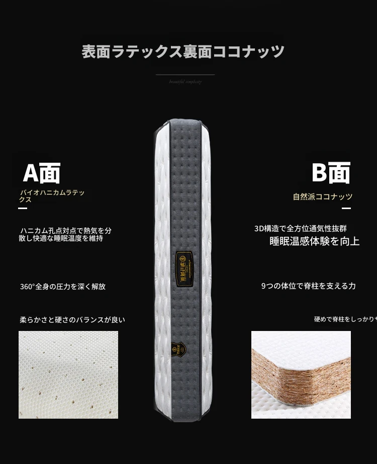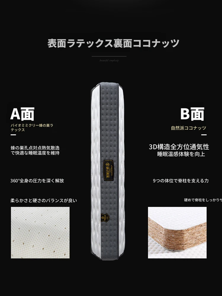 七星級天然二合一マットレス|ラテックスココナッツスプリング|ソフトとハードの独立スプリング|温度調整機能付き|高品質ダウンマットレスで快適な眠りを実現!