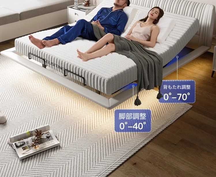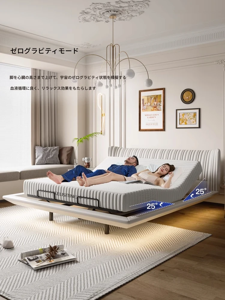 (トップレザー牛皮ベッド)+(ドイツOKIN二つのモーター)ベッドフレーム+(AI)ゼロ圧スポンジマットレス