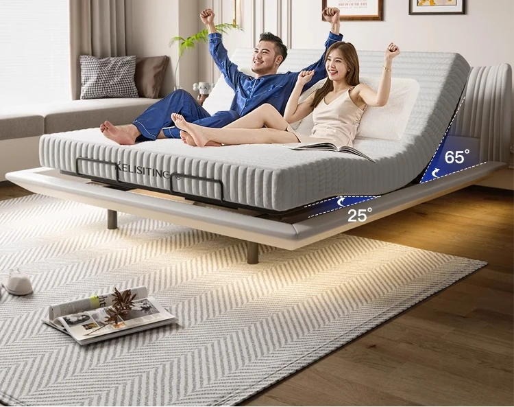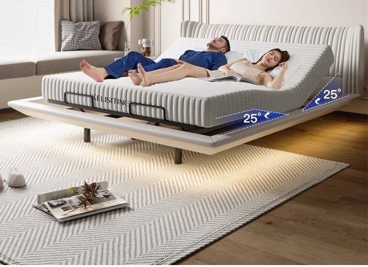 (トップレザー牛皮ベッド)+(ドイツOKIN二つのモーター)ベッドフレーム+(AI)スプリングラテックスマットレス