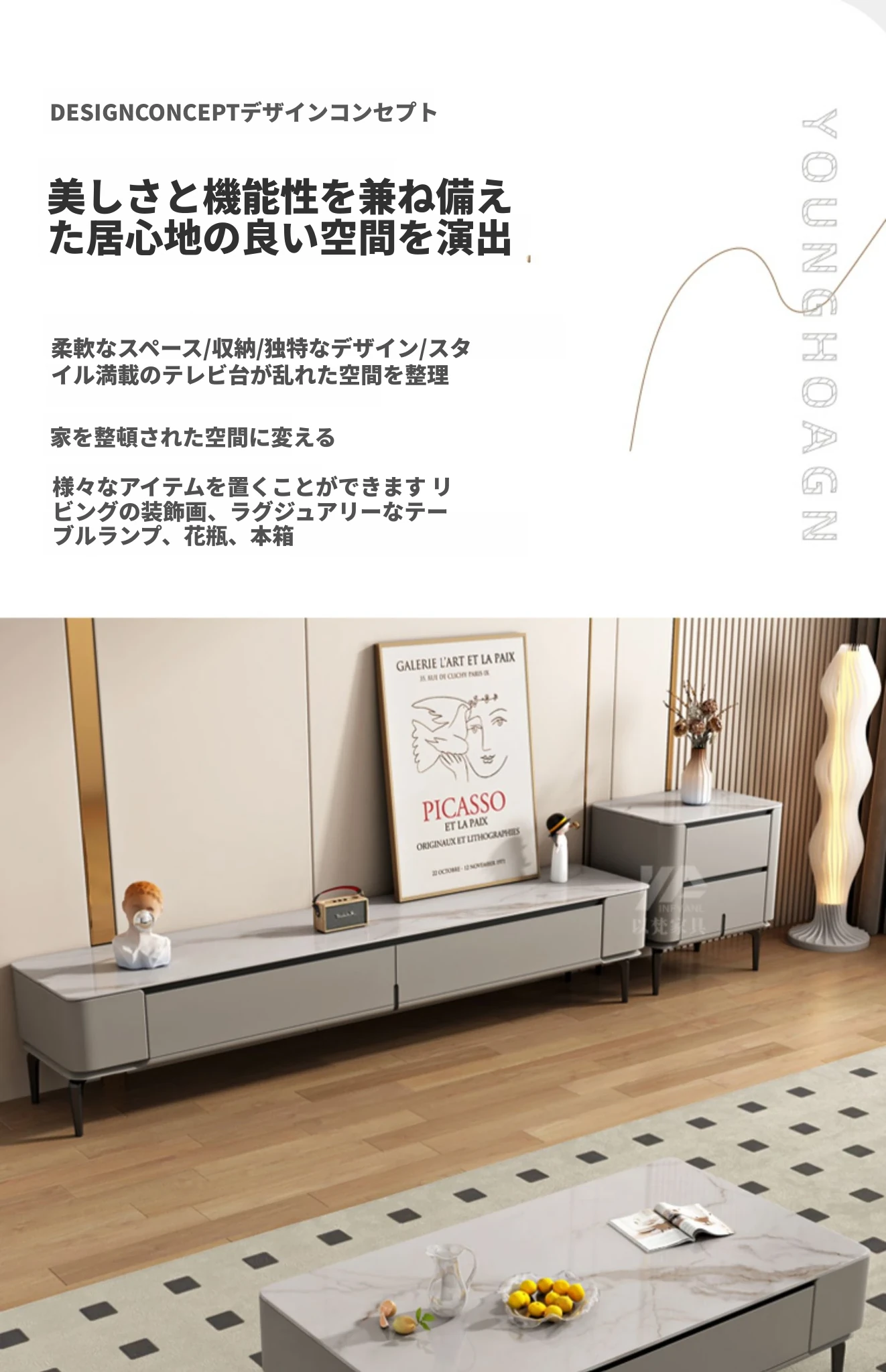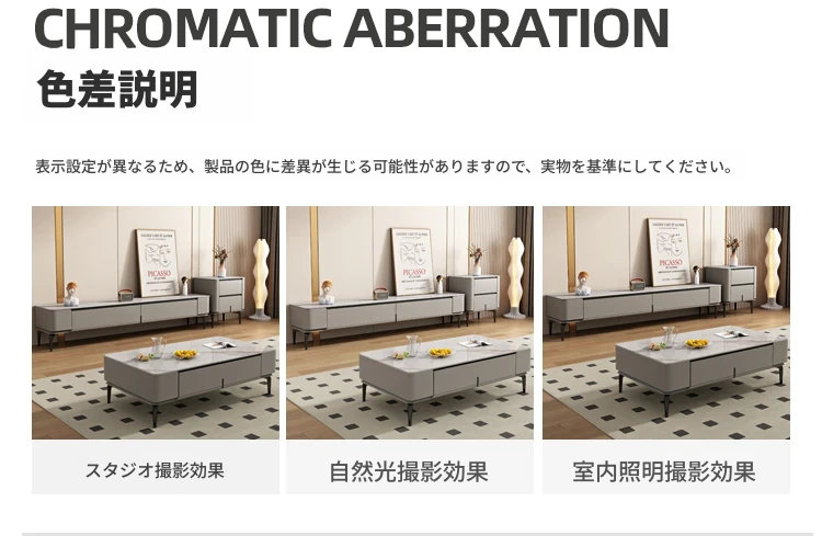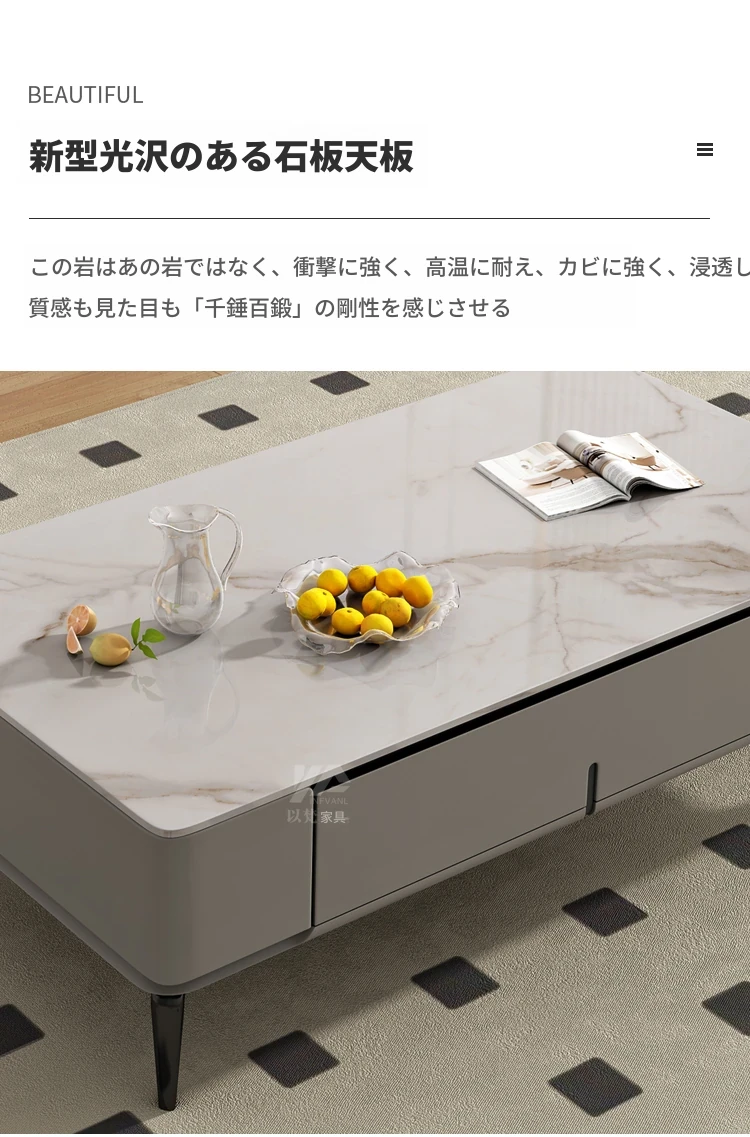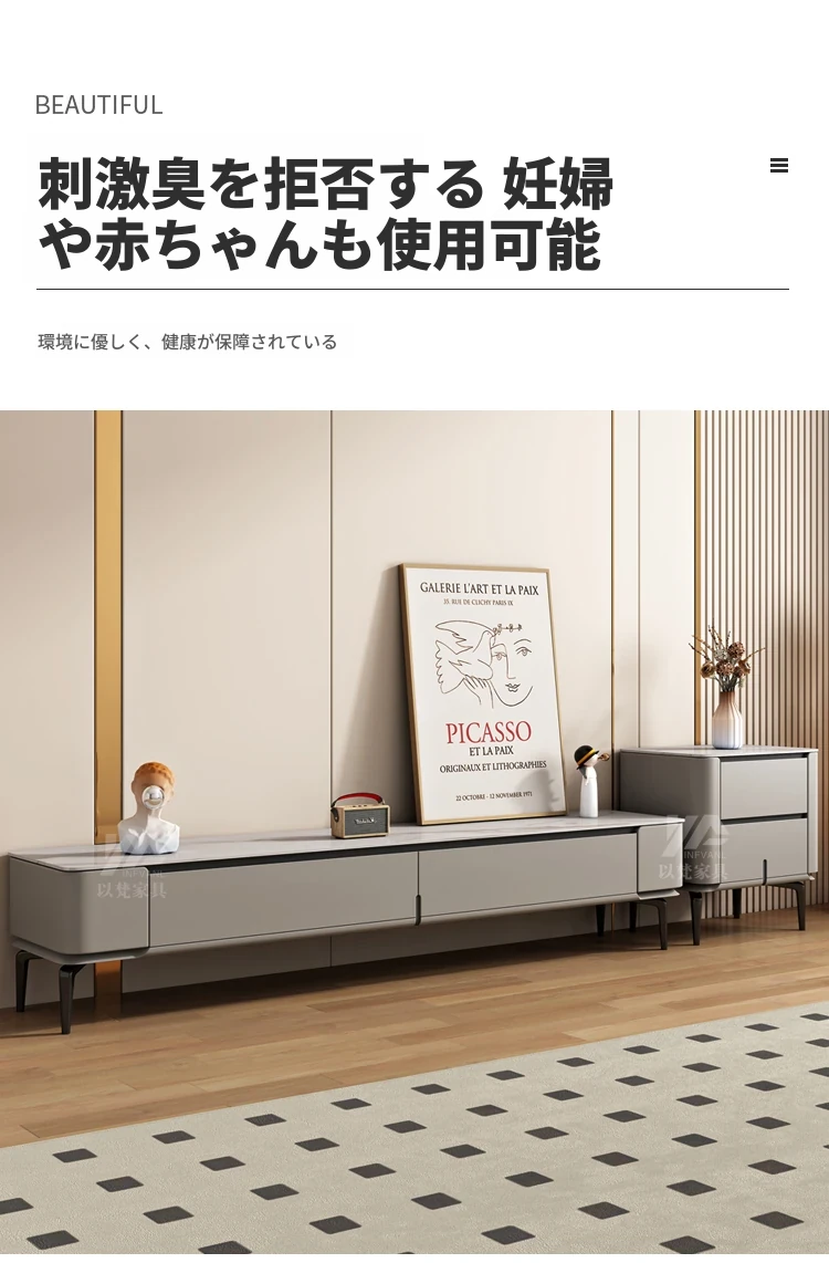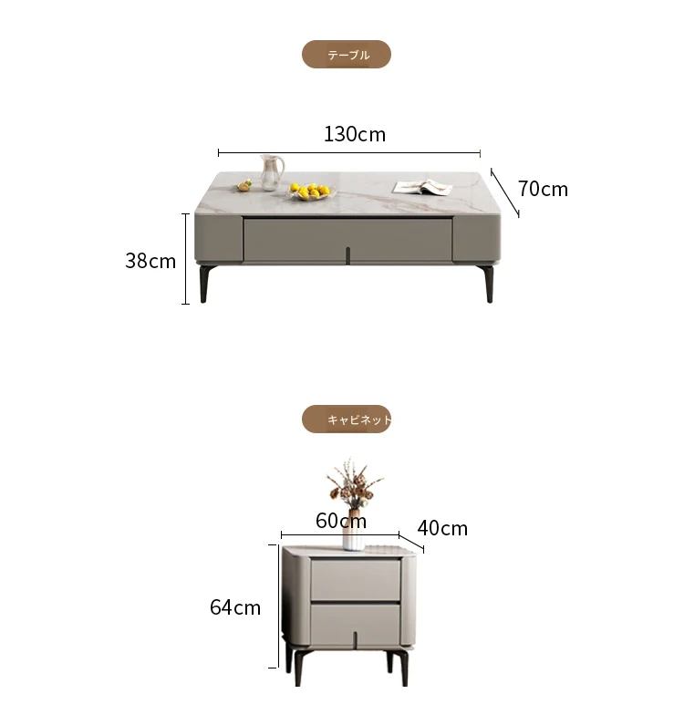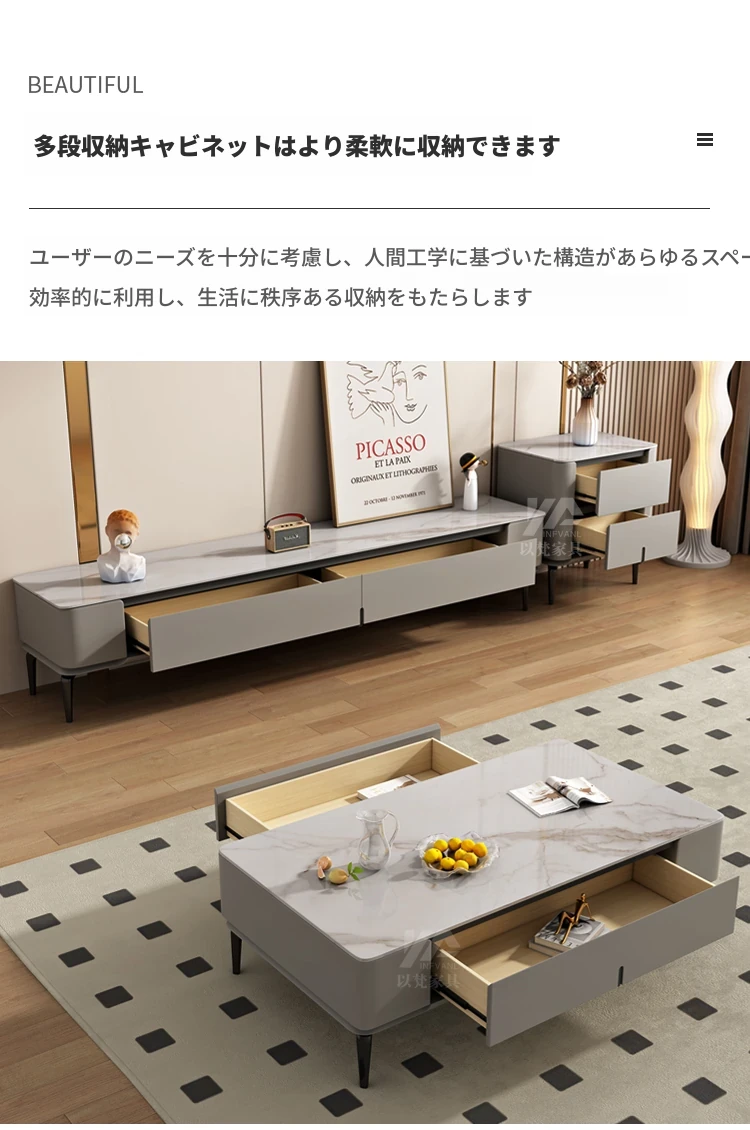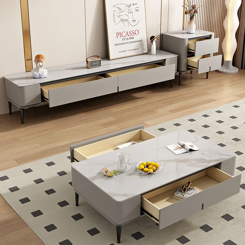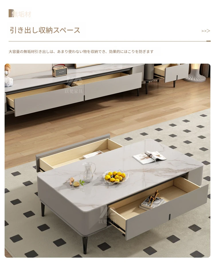 シンプルなロックプレートのコーヒーテーブル&テレビキャビネットセット - 北欧&イタリアンスタイルのおしゃれな小型住宅向け!リビングルームにぴったりの収納力抜群なキャビネットです。