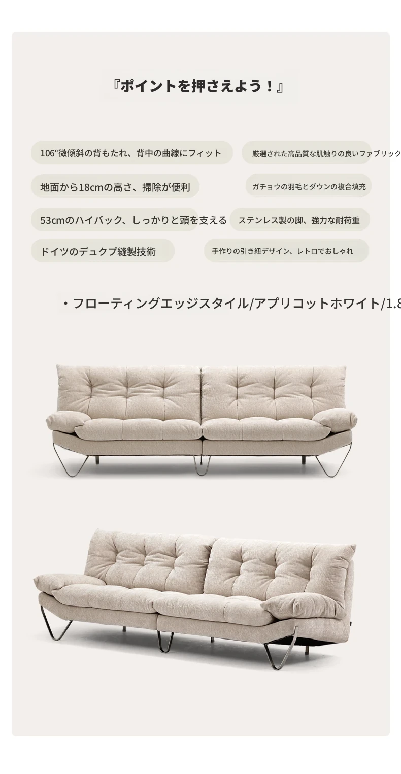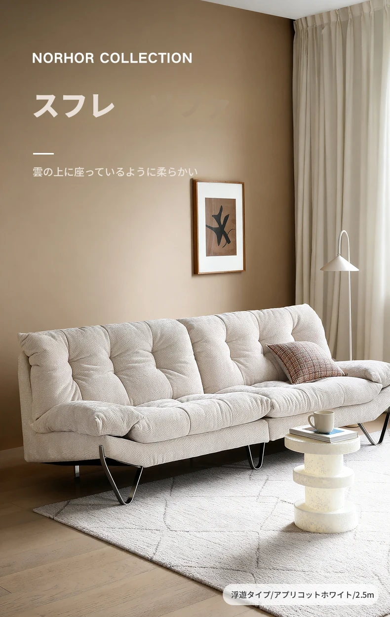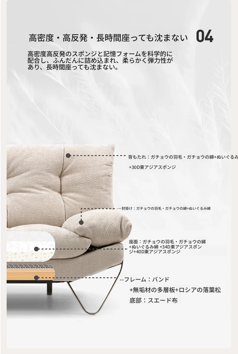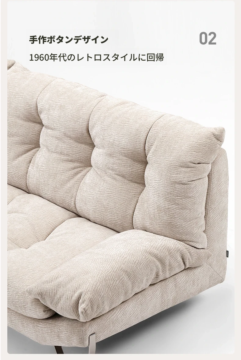 モダンでシンプルな布製スフレソファ - 小型リビングにぴったりなミニマリスト・バウハウススタイル、羽毛直排デザインで快適さとスタイルを両立!