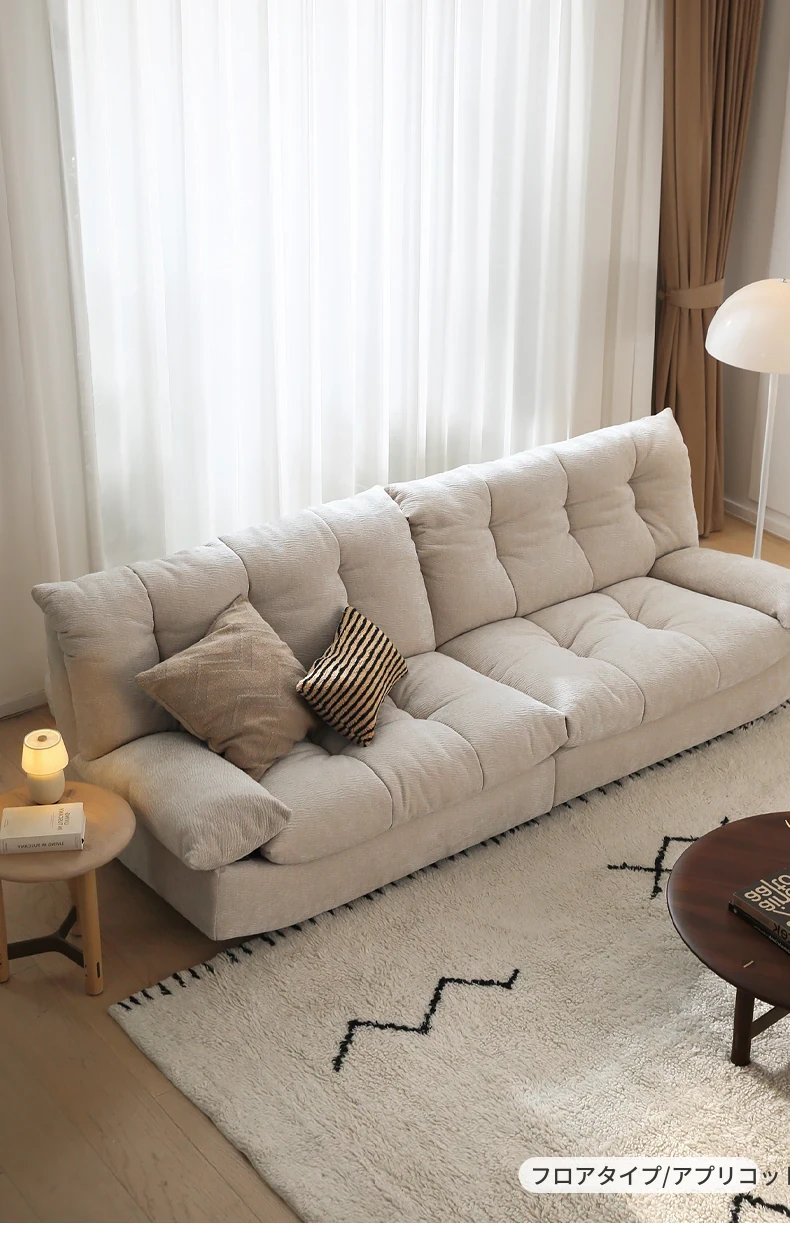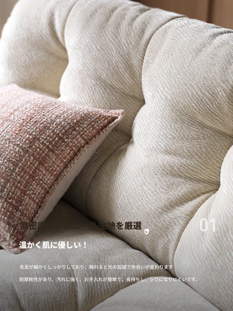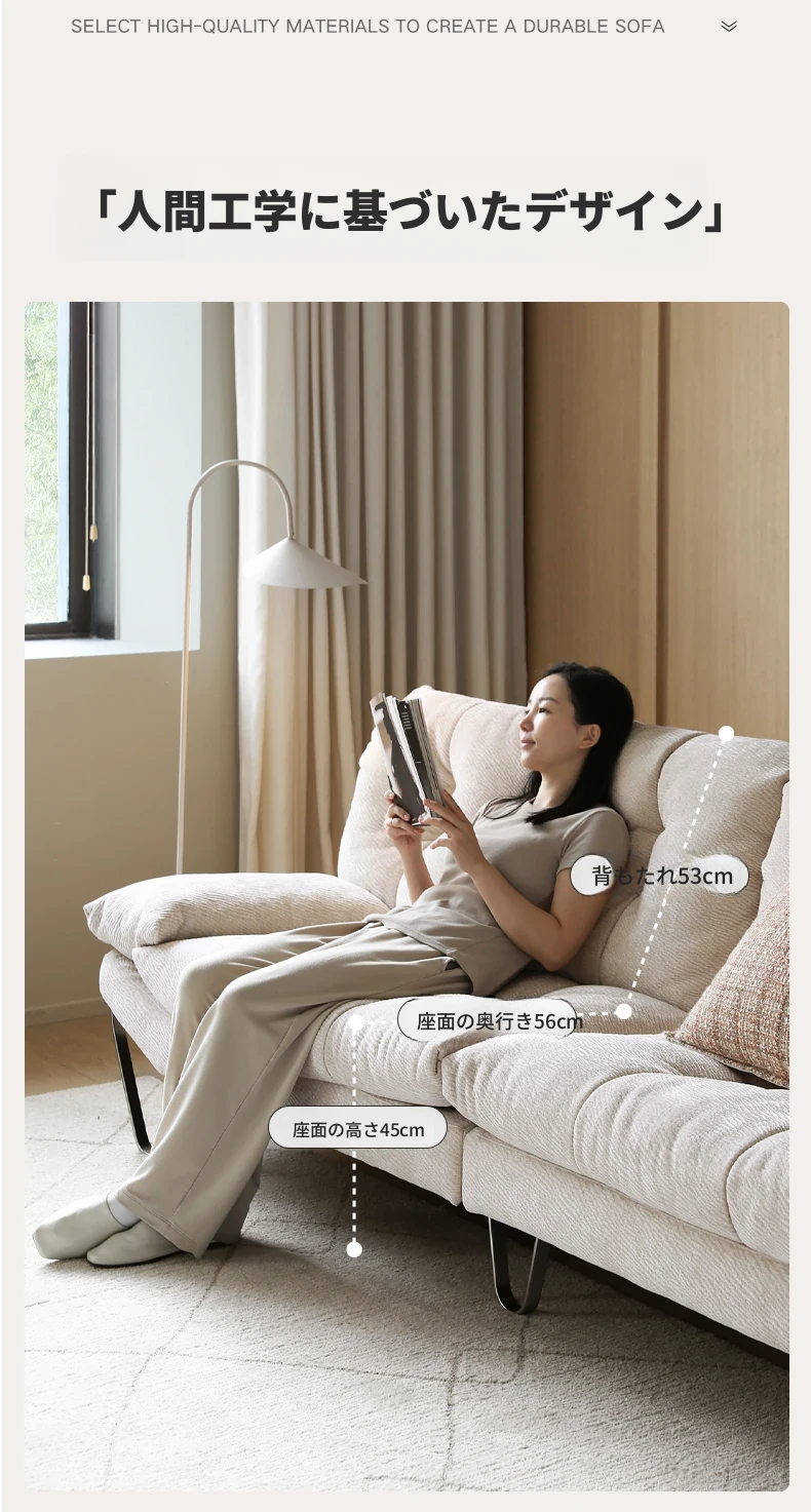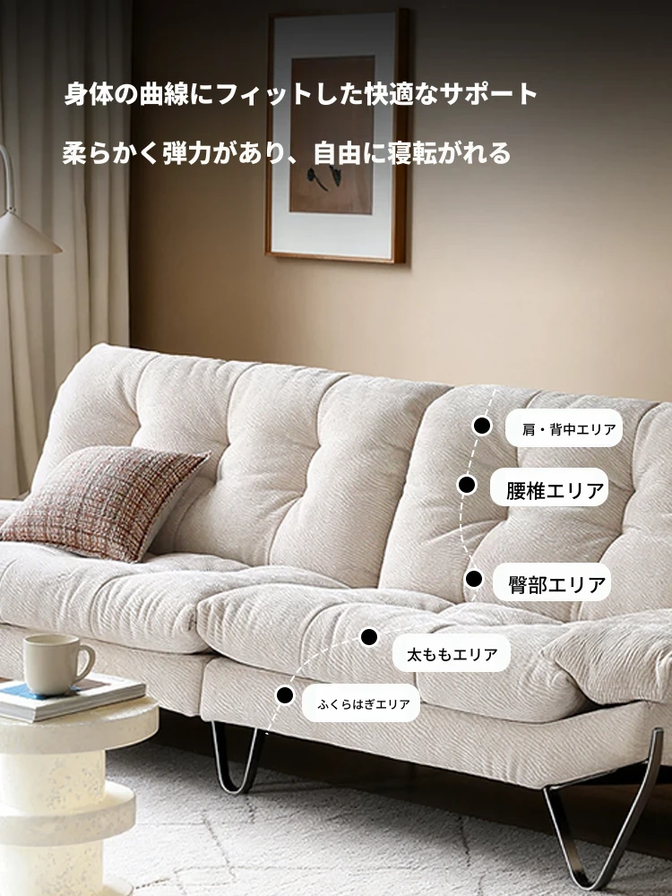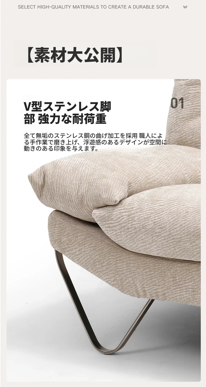 モダンでシンプルな布製スフレソファ - 小型リビングにぴったりなミニマリスト・バウハウススタイル、羽毛直排デザインで快適さとスタイルを両立!