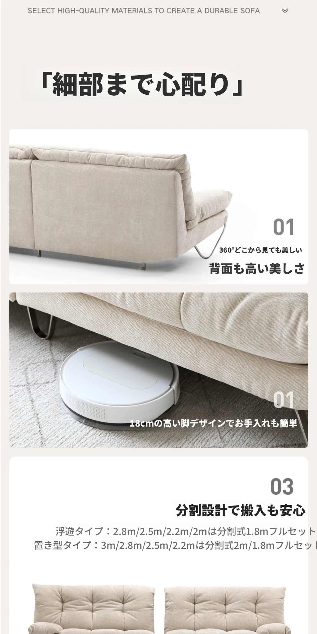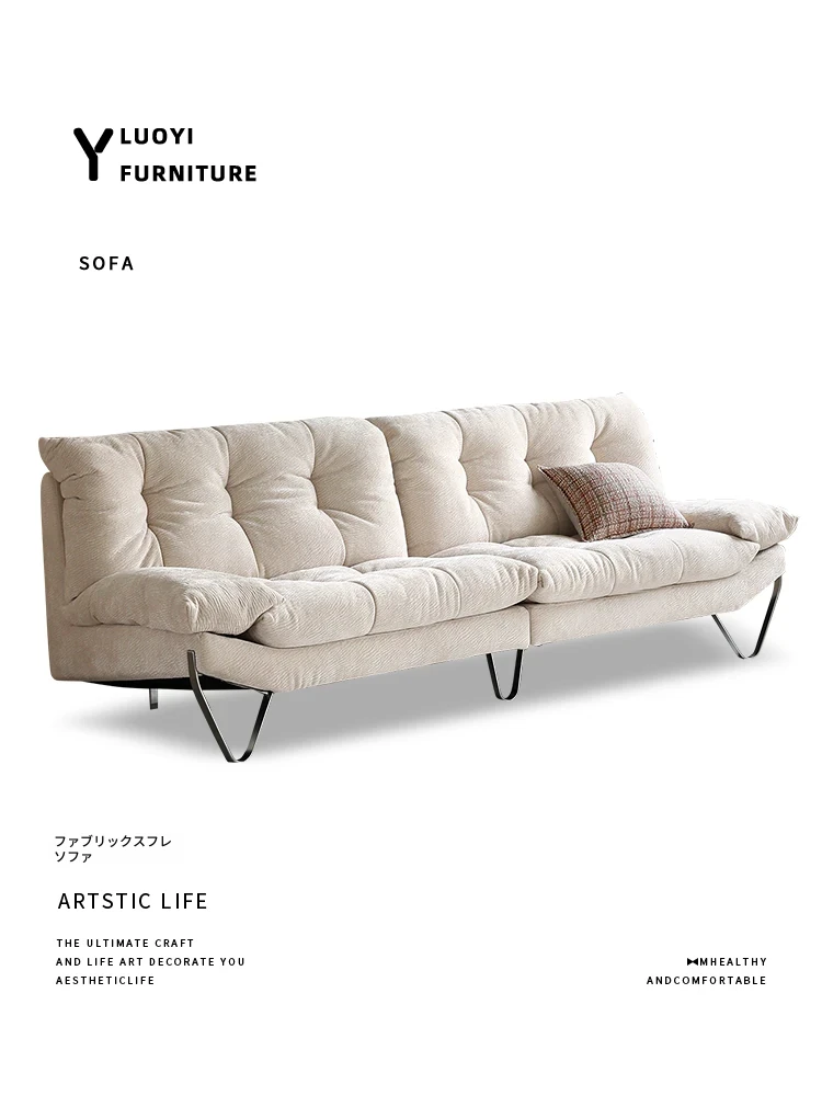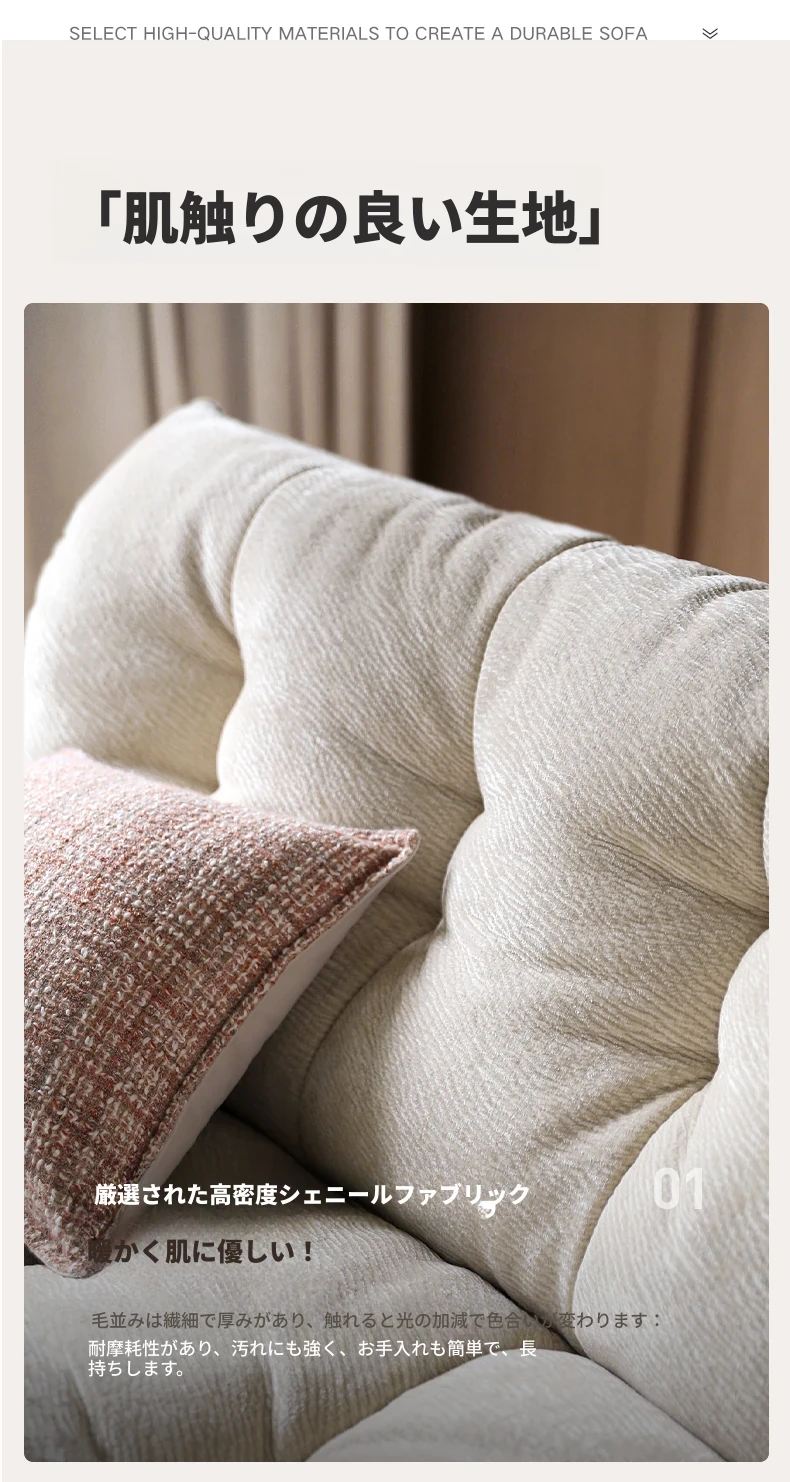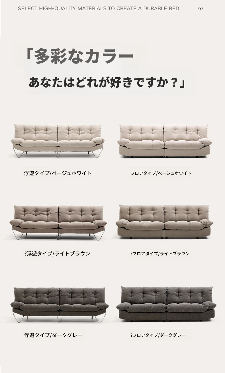 モダンでシンプルな布製スフレソファ - 小型リビングにぴったりなミニマリスト・バウハウススタイル、羽毛直排デザインで快適さとスタイルを両立!