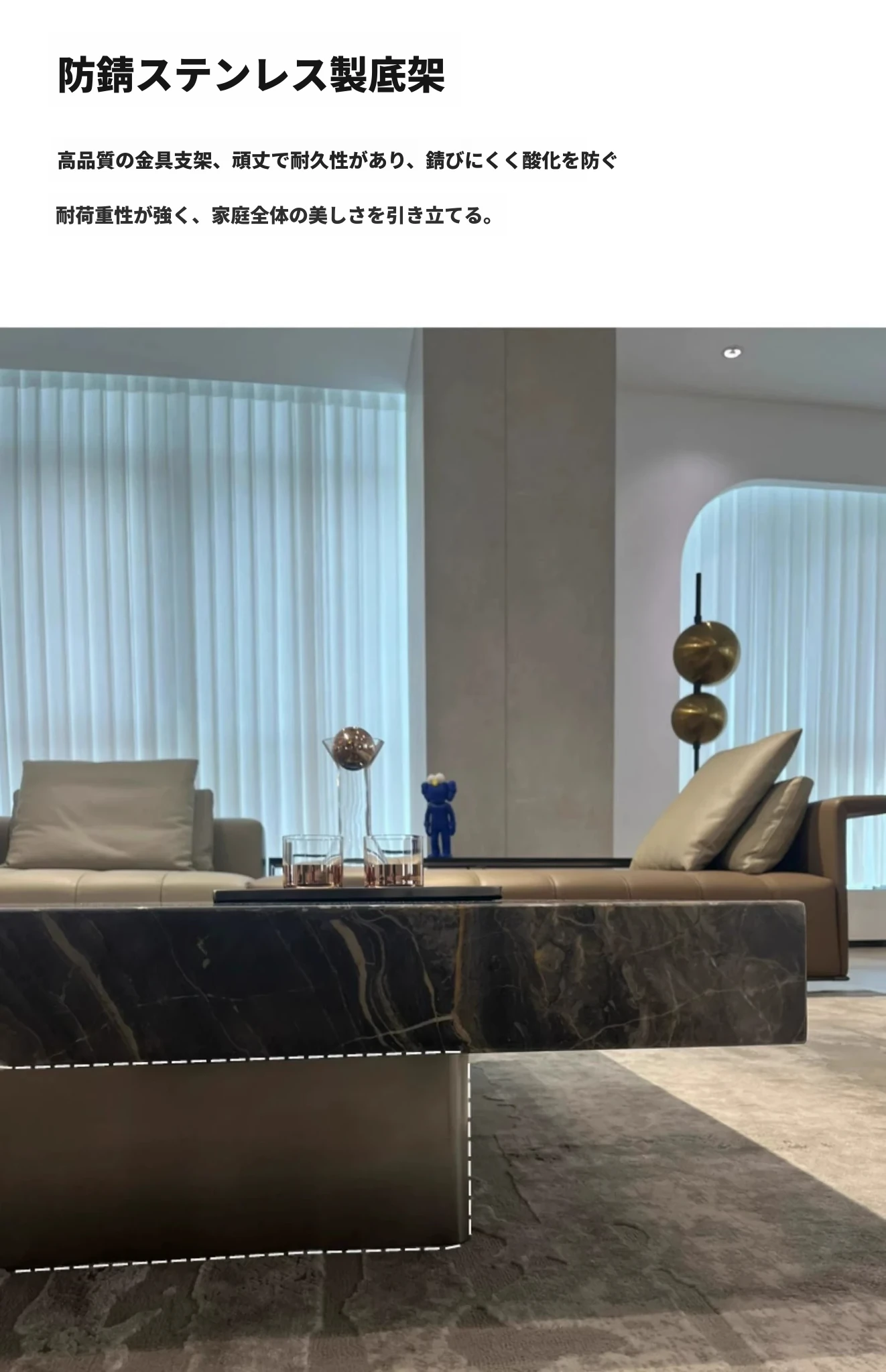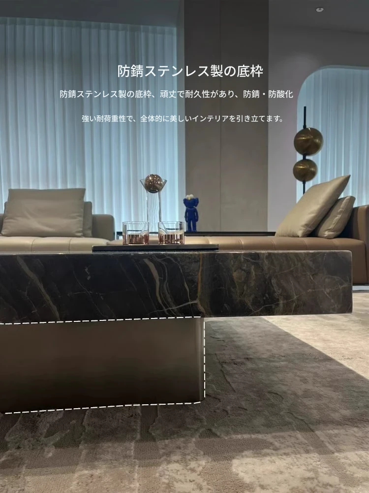 イタリアンミニマルデザインの天然大理石製ローテーブル - モダンなリビングルームにぴったりなベネチアブラウンのティーテーブルで、シンプルさとエレガンスを両立!おしゃれな別荘にも最適です。