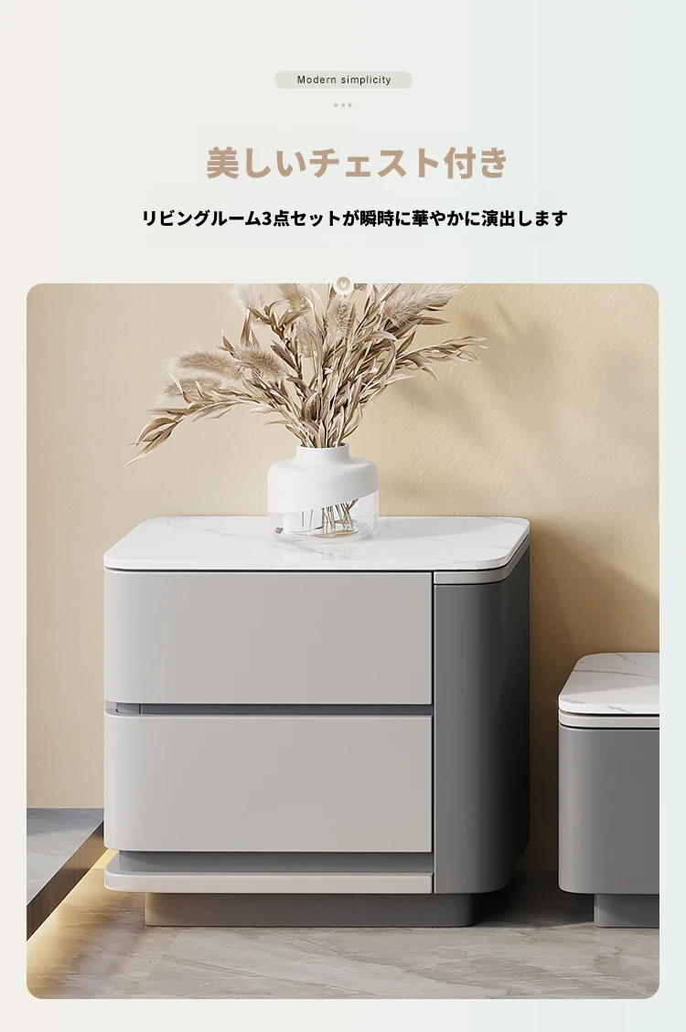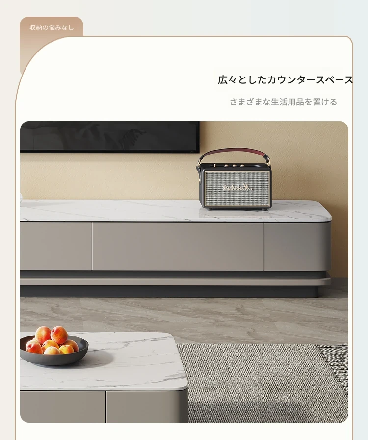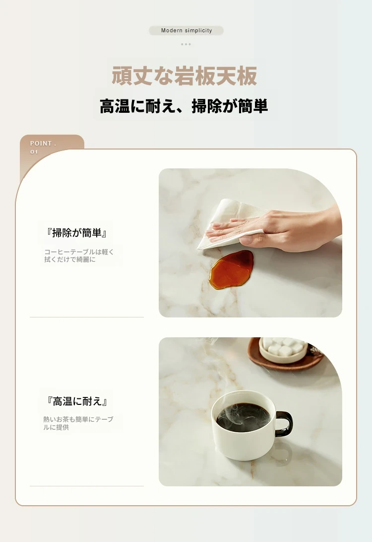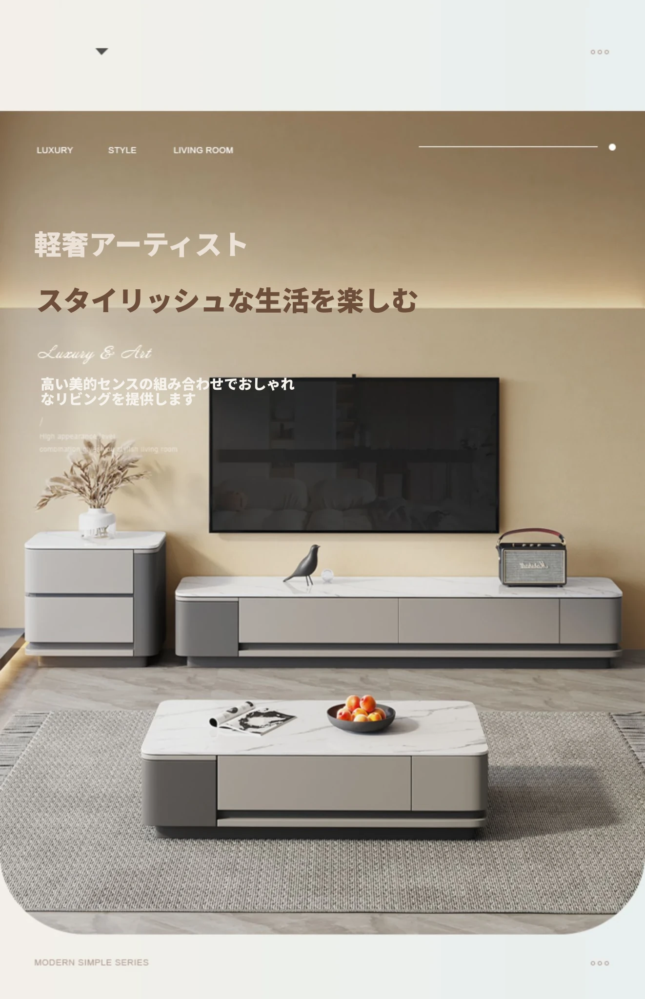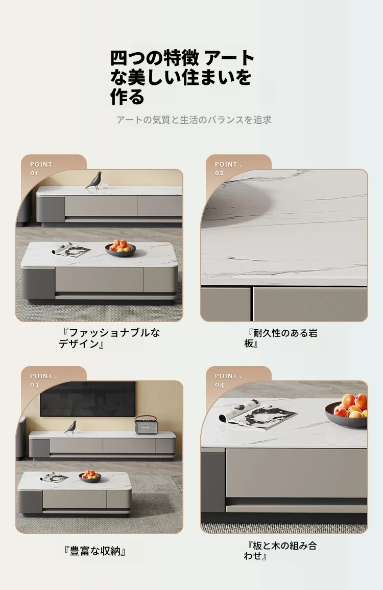 スタイリッシュなイタリアンデザイン!シンプル&モダンな岩板製コーヒーテーブルとテレビキャビネットのセット。小さな部屋でも大活躍!リビングに最適な収納力を兼ね備えた魅力的な家具です。