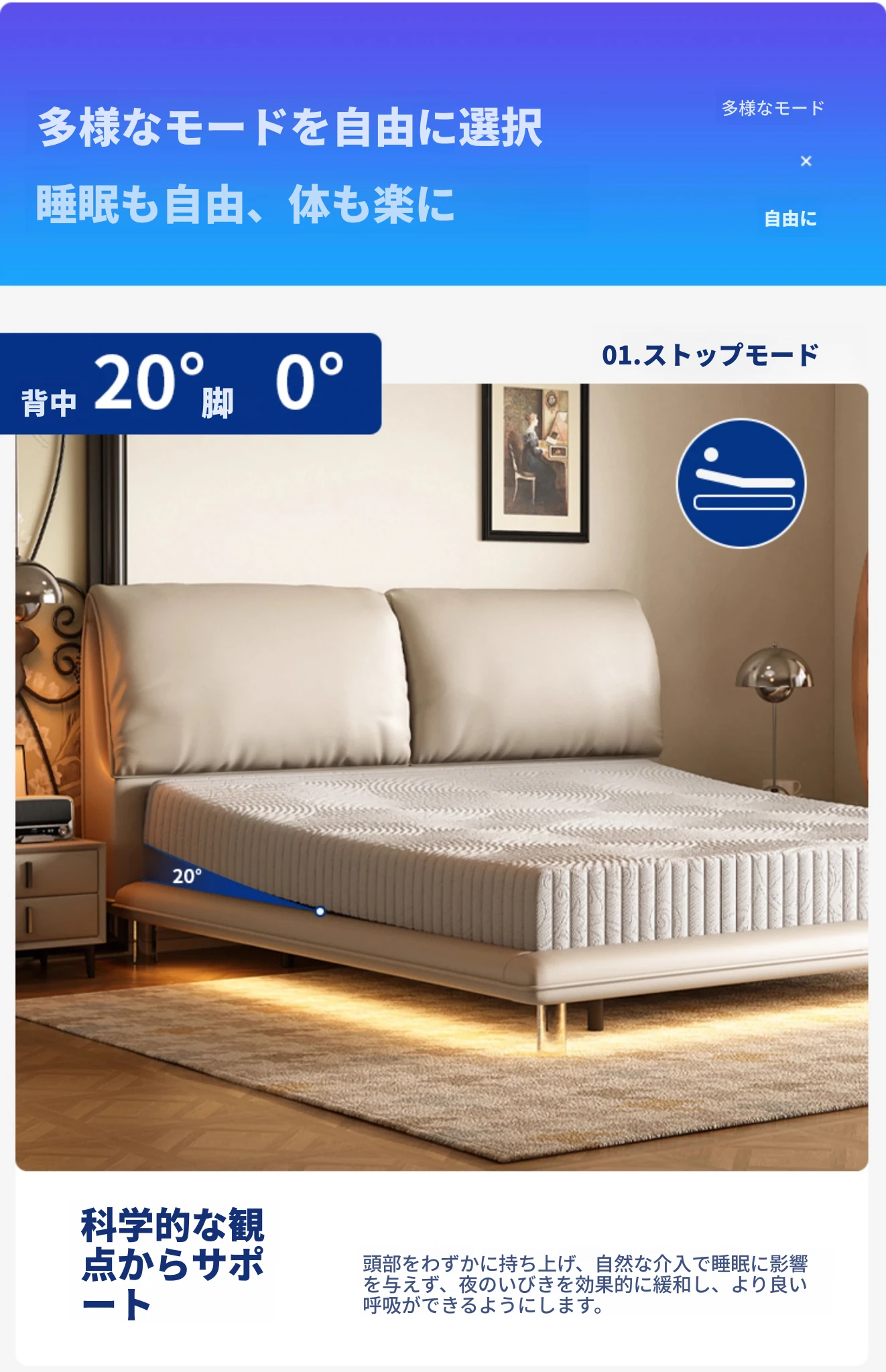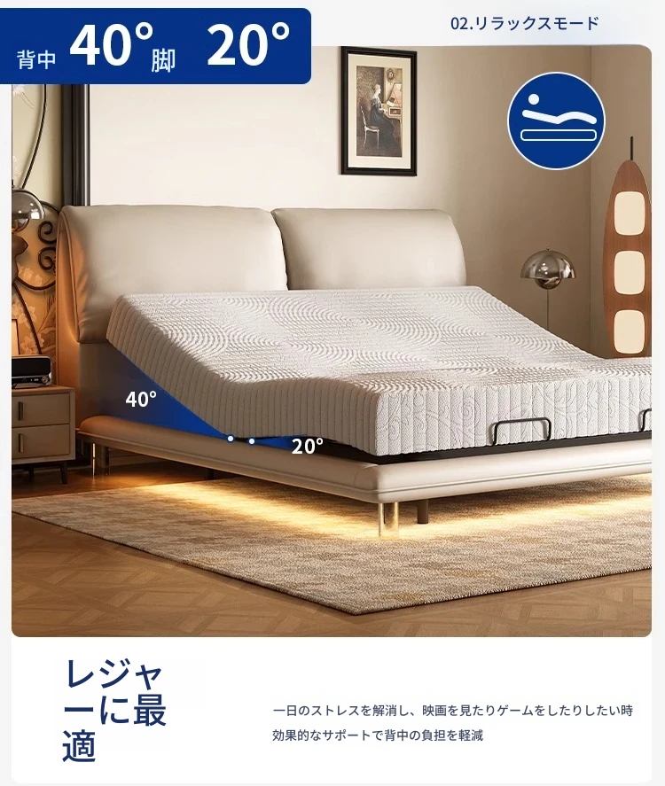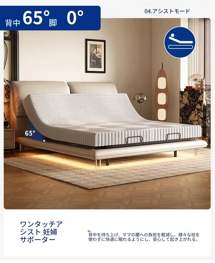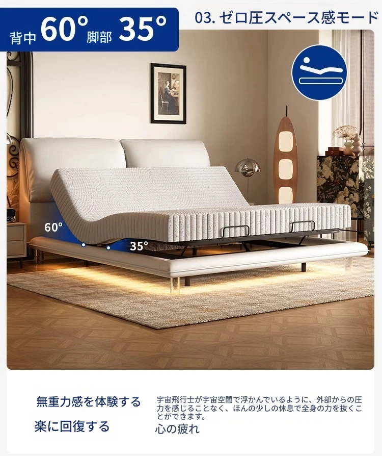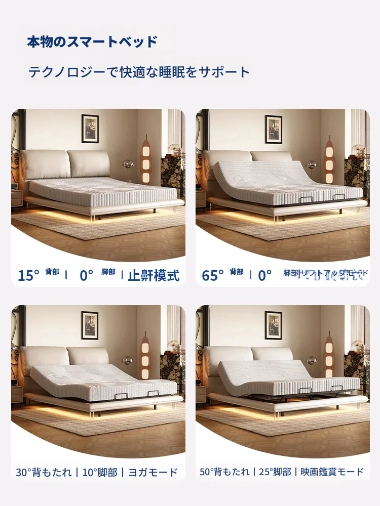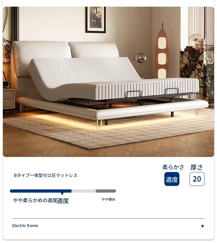 本革ベッド+電動ベッドフレーム+(硬さ適中)0圧力スポンジマットレス