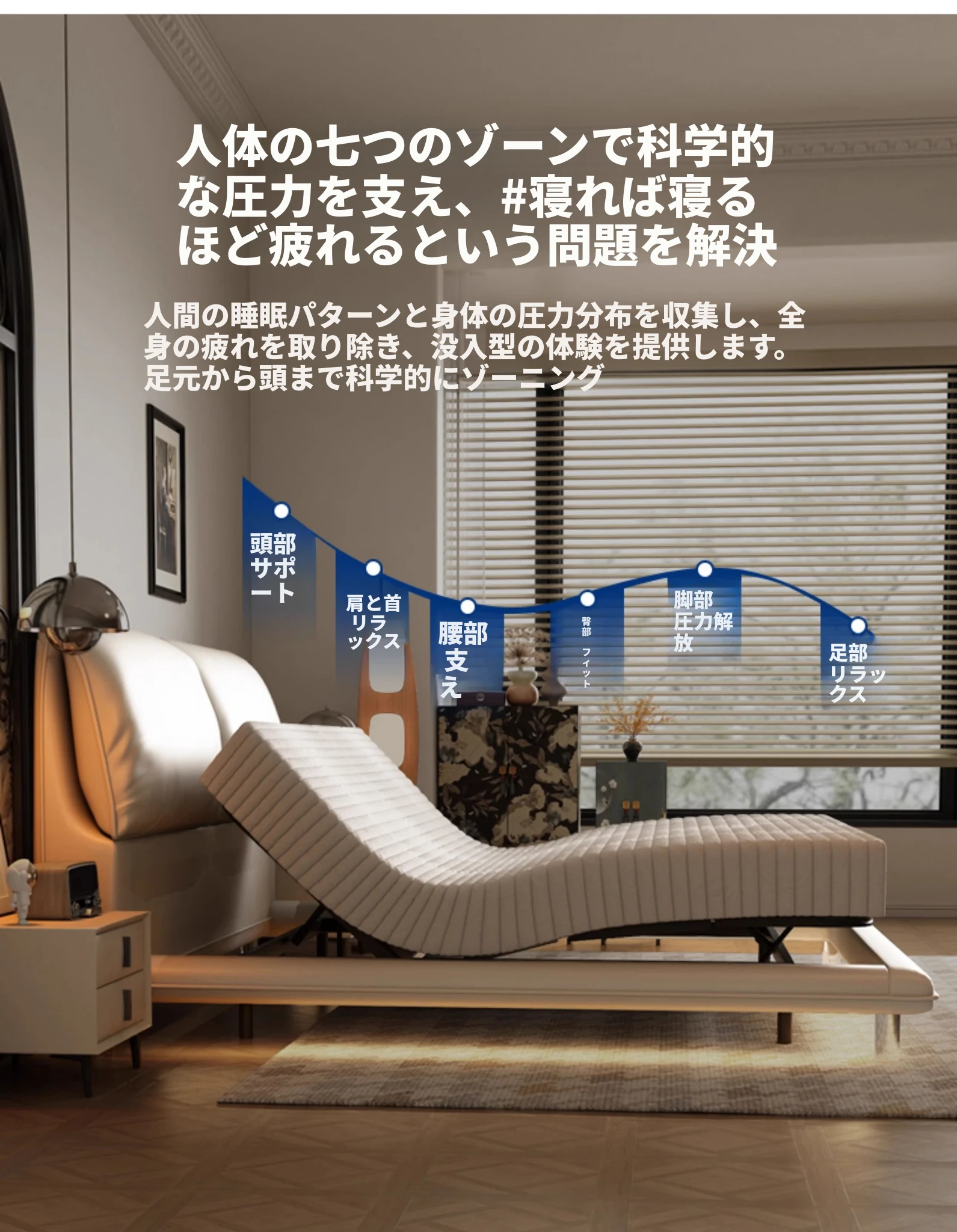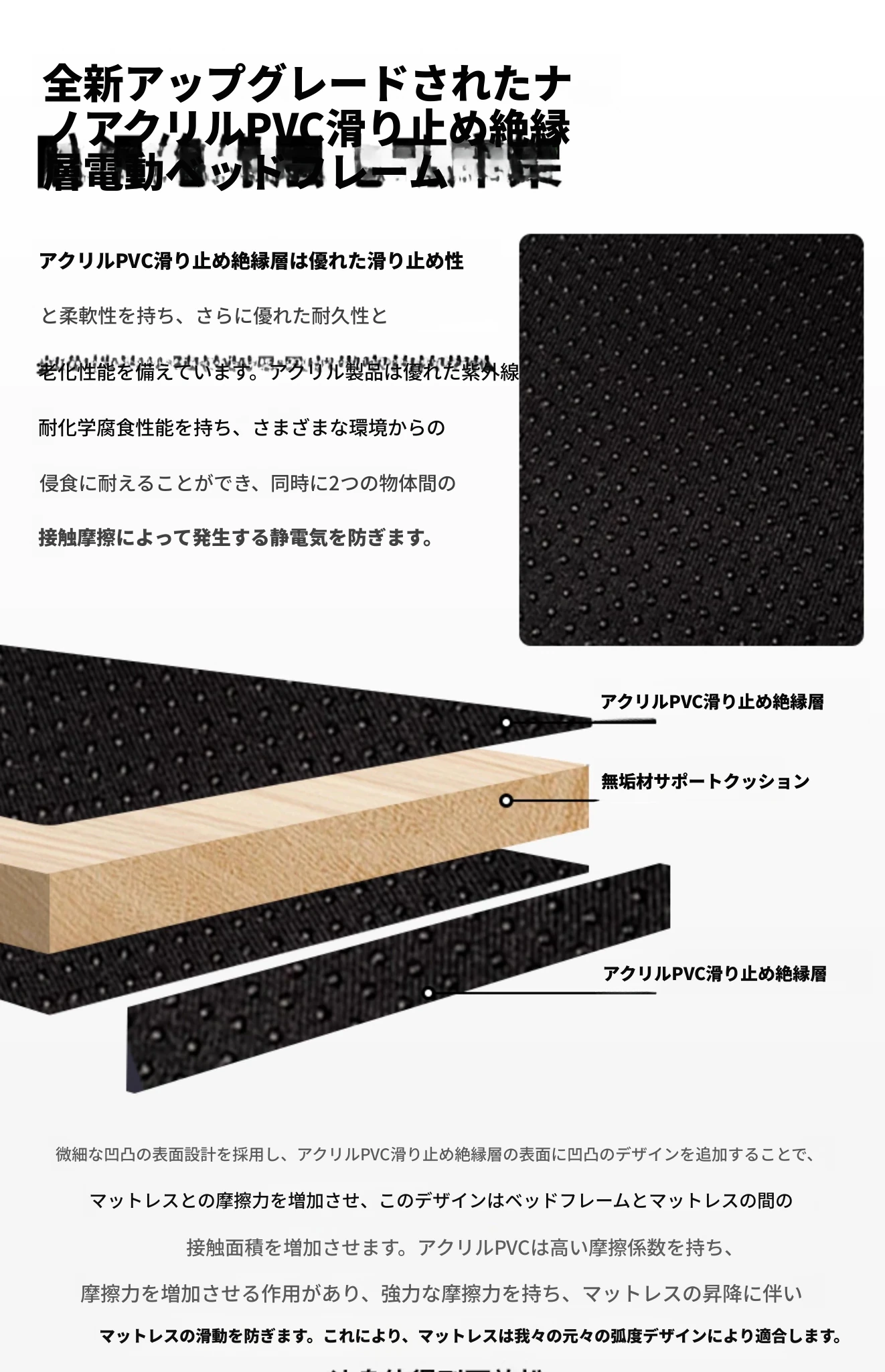 ヘッドボードなしベッド+電動ベッドフレーム+(硬さ適中)0圧力スポンジマットレス