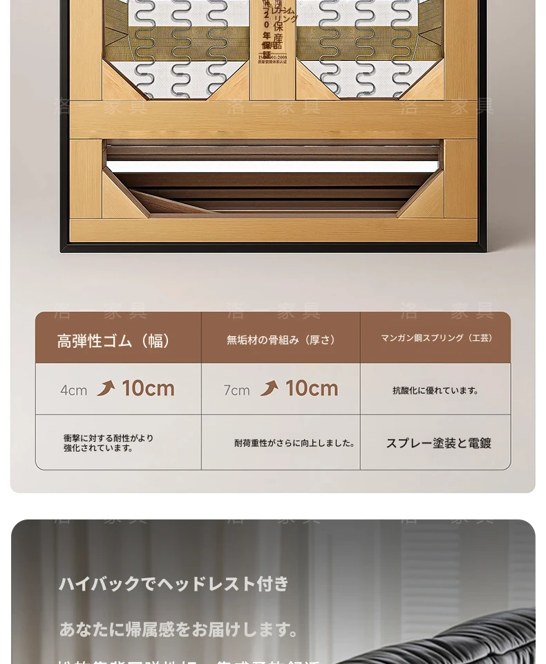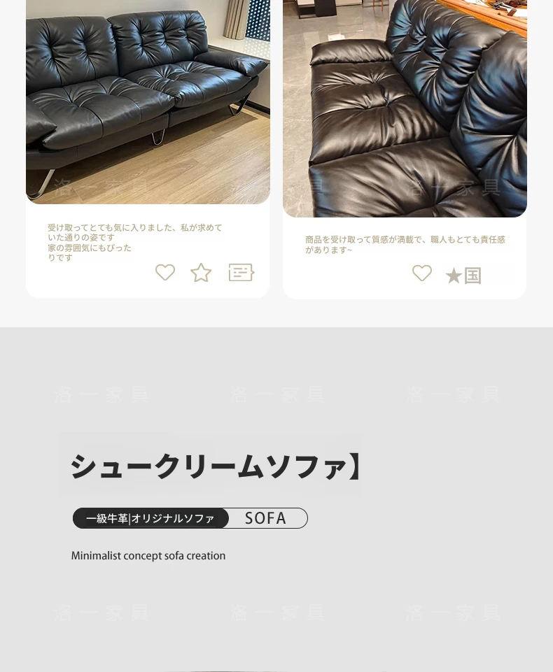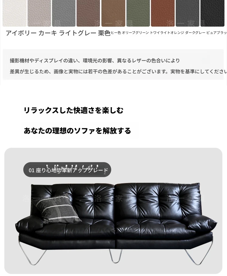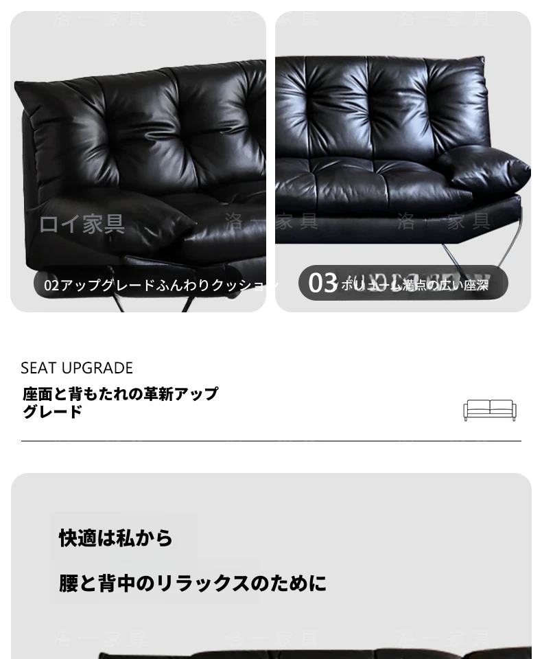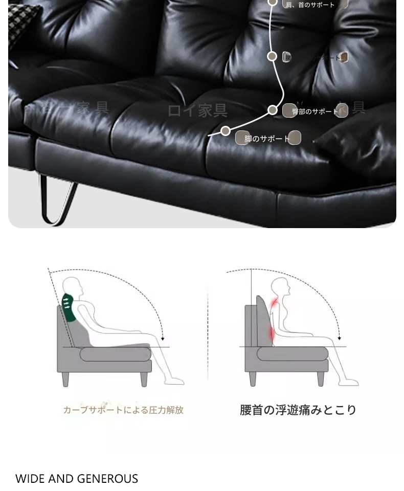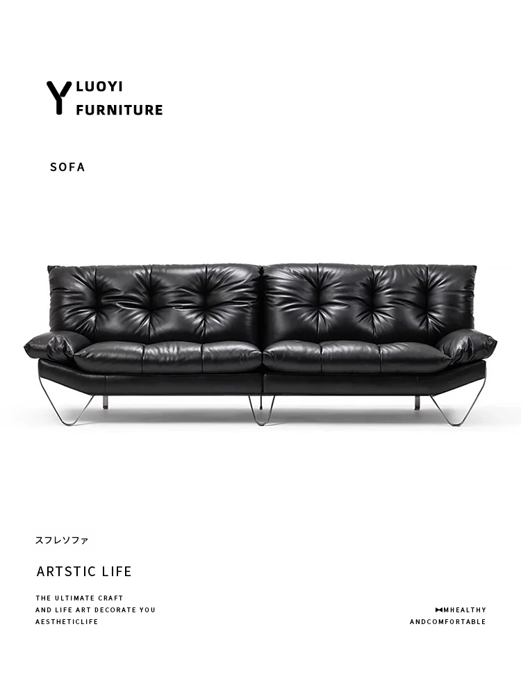 スフレバウハウスソファー - イタリアンミニマリズムの極み!高背もたれで浮遊感を楽しむ、ブラックトップグレインレザー製の真皮直線ソファ。贅沢な座り心地を体験して、あなたのリビングをスタイリッシュに演出!