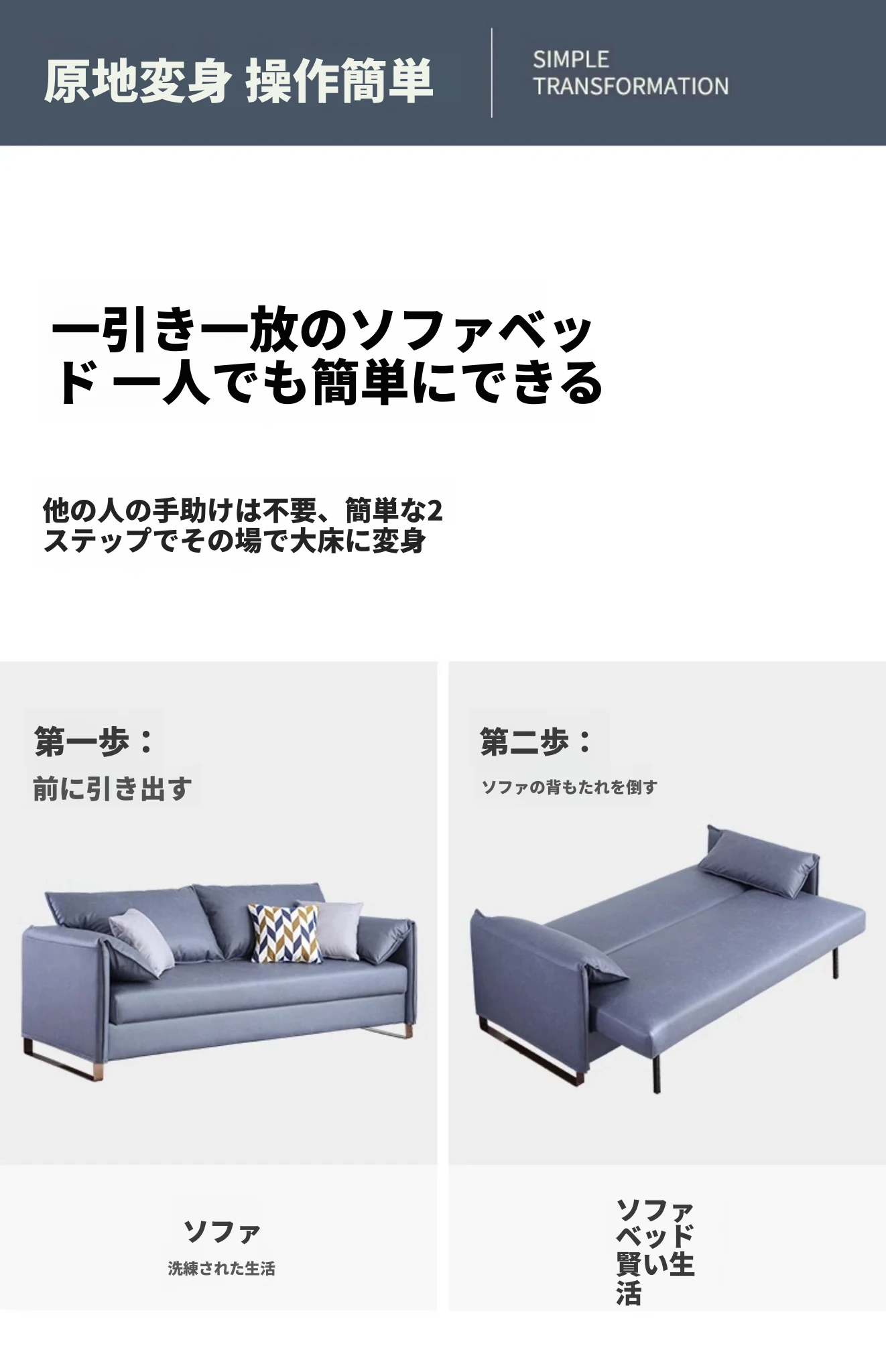 軽やかな贅沢感のあるソファベッド!小型住宅に最適なトレンドアイテム。リビングにぴったりの多機能2WAYデザイン、テクノロジー布使用で快適さ抜群。シングル/ダブル折りたたみソファで、空間を有効活用!