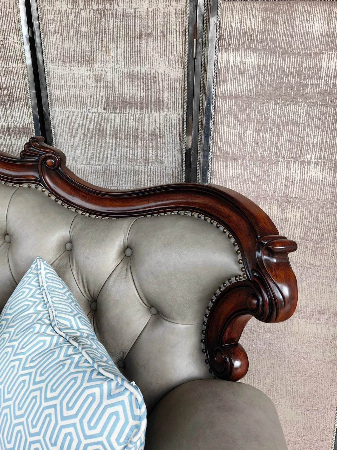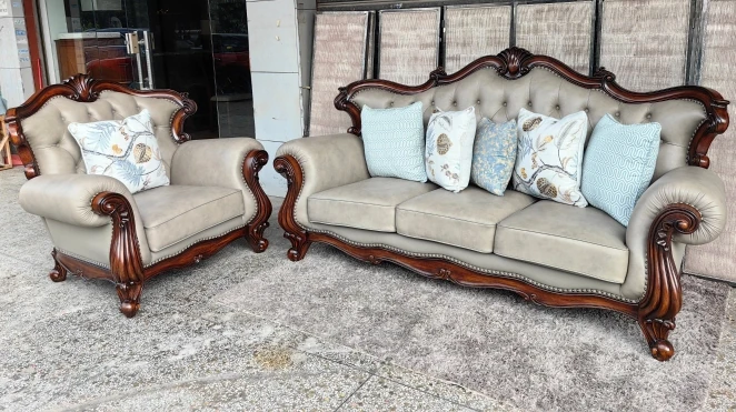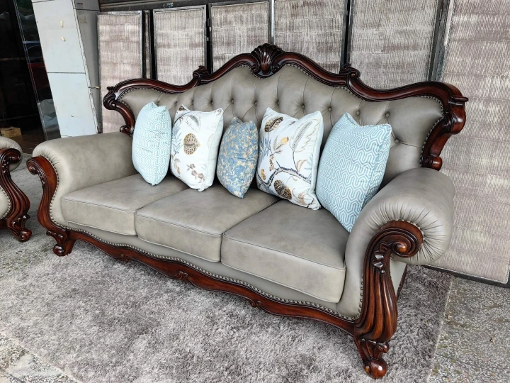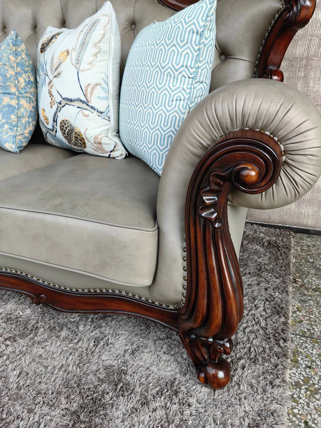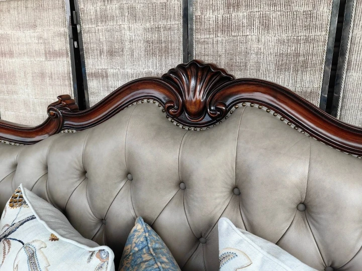 アメリカンヴィンテージ本革彫刻ソファー!高級感溢れる無垢材使用、リビングを彩る大美ブランドの特別セール!在庫一掃中、夢のような価格で手に入れるチャンス!