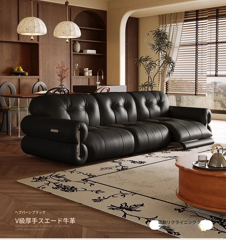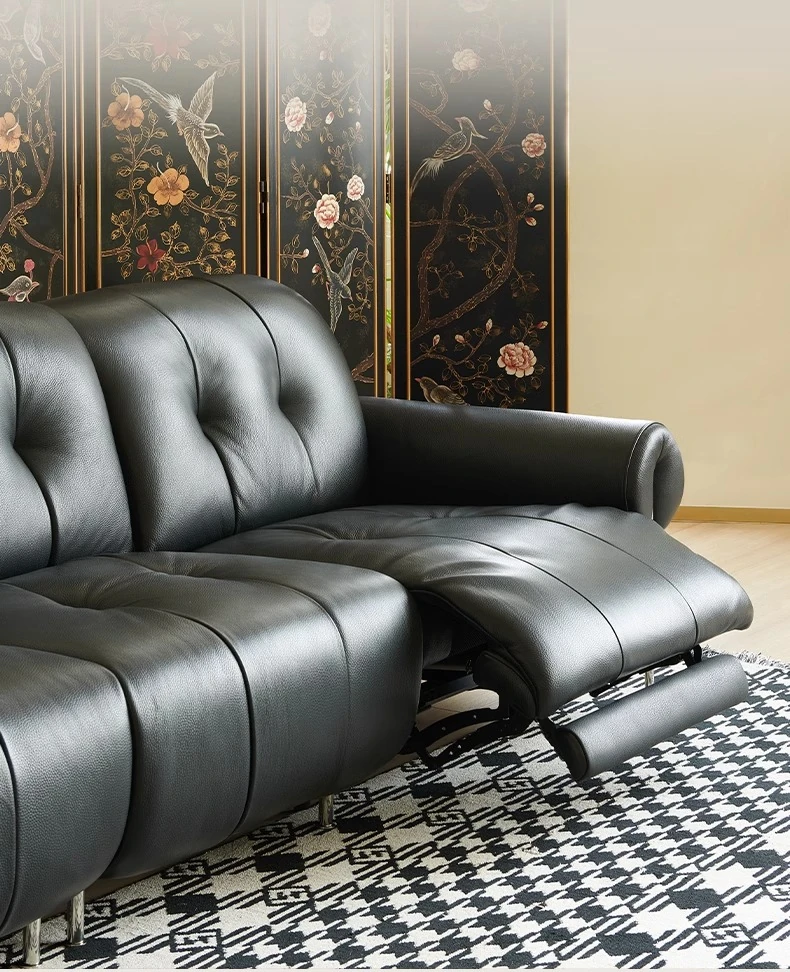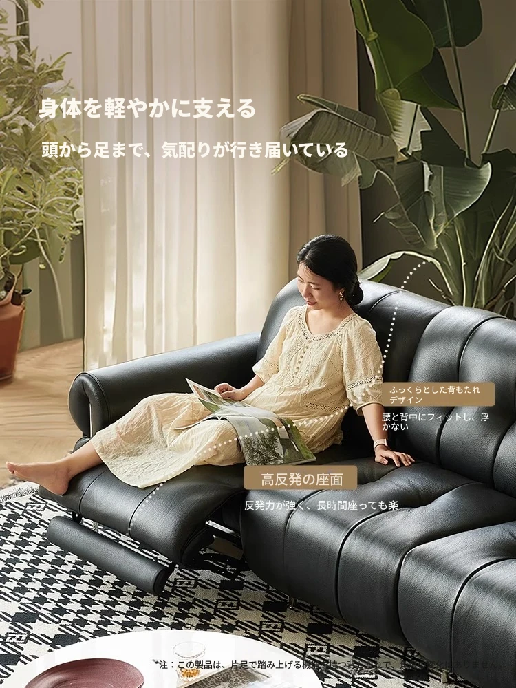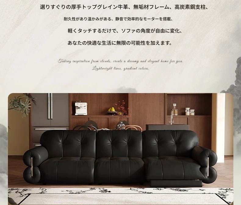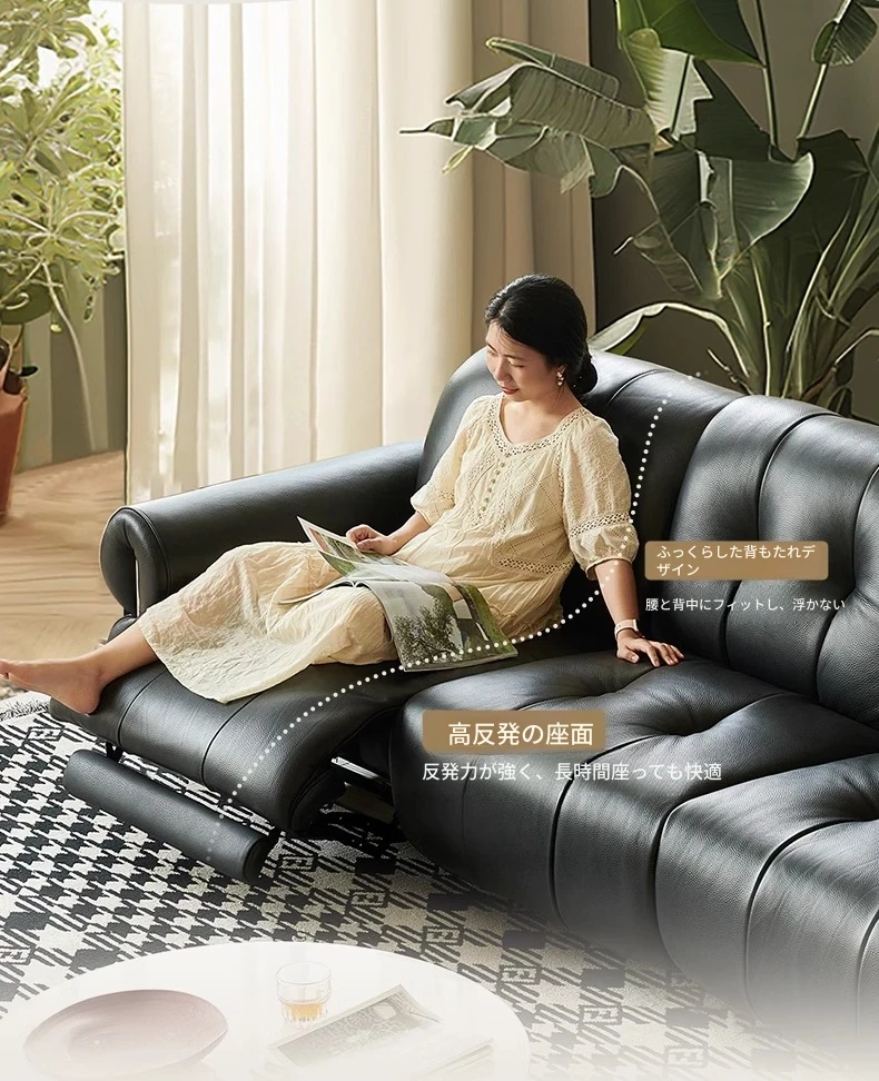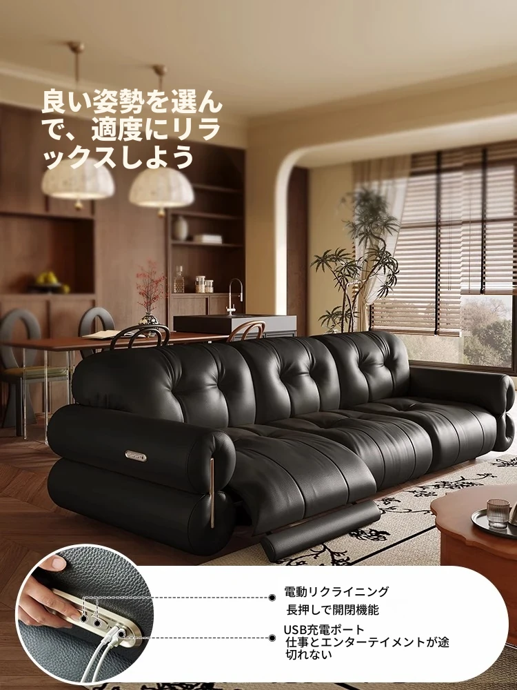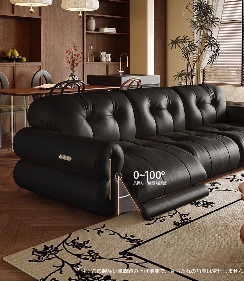 壁に寄りかからない黒糖雲朵スタイルの低脚リクライニング電動ソファ - フランスのレトロデザイン、25年の調整可能な本革ソファで、優雅さと快適さを兼ね備えた一品です!