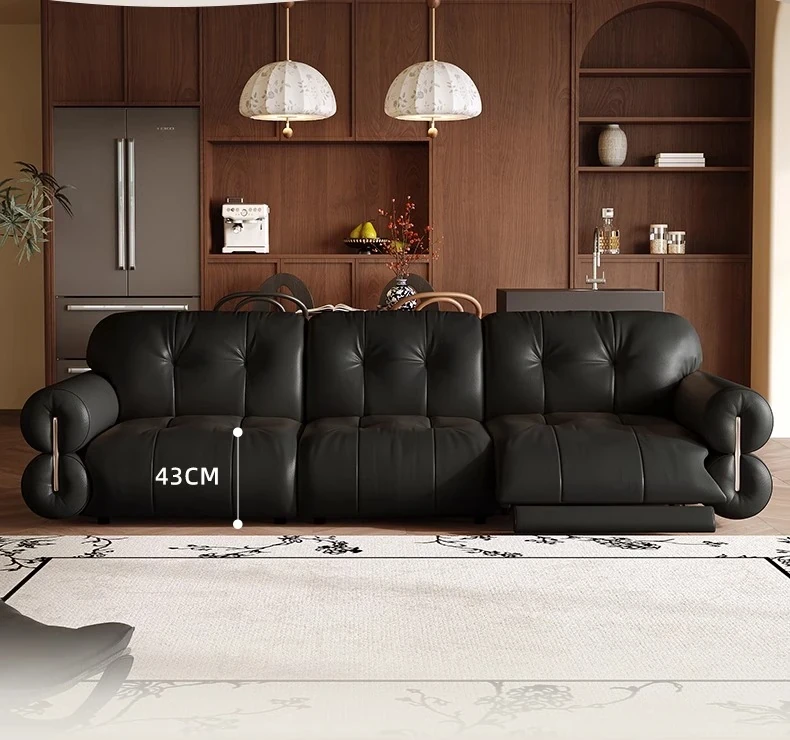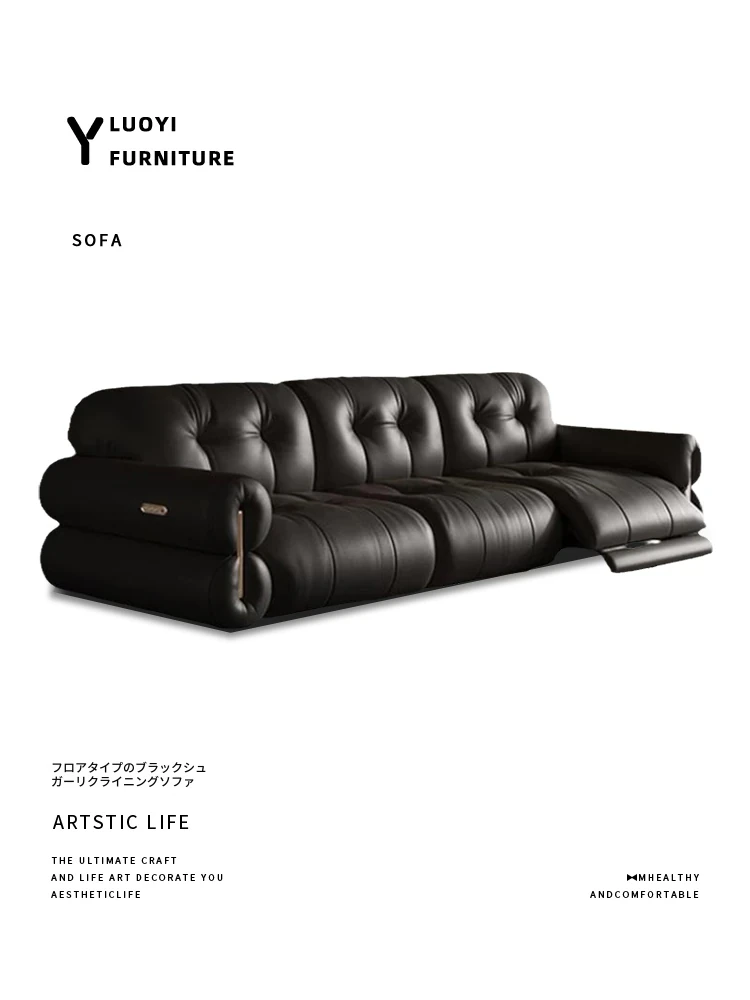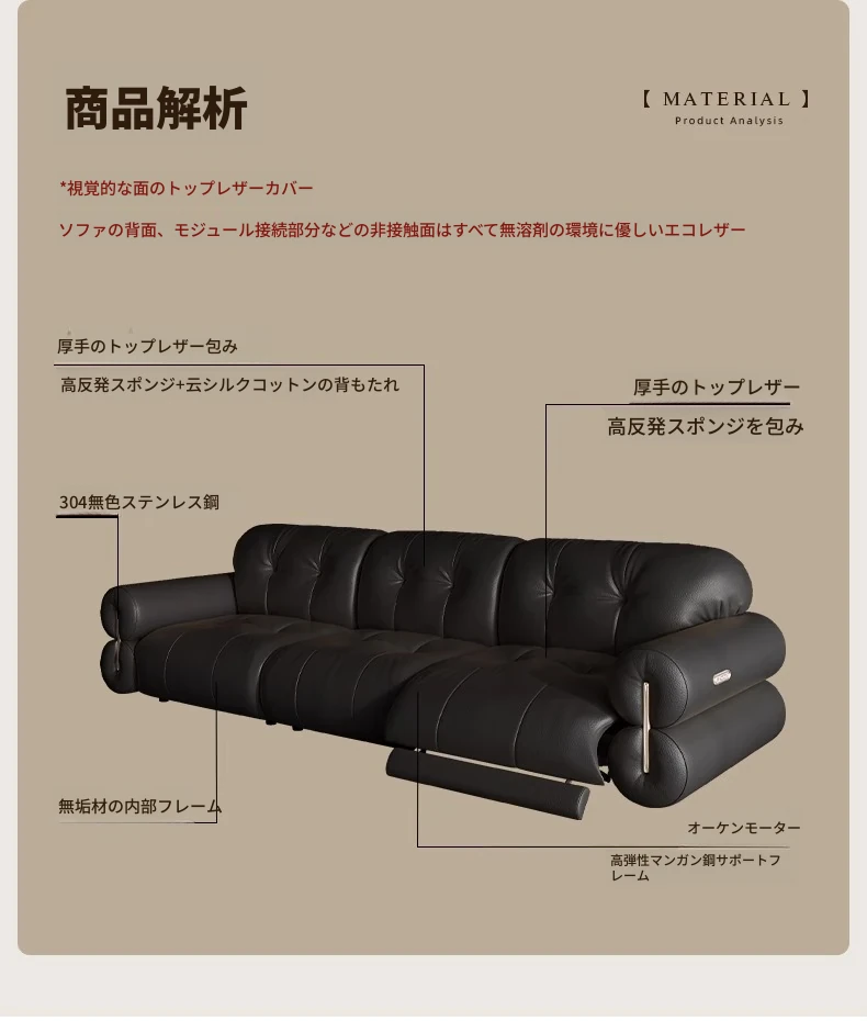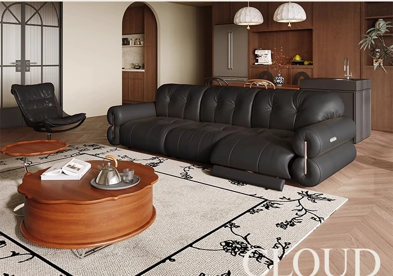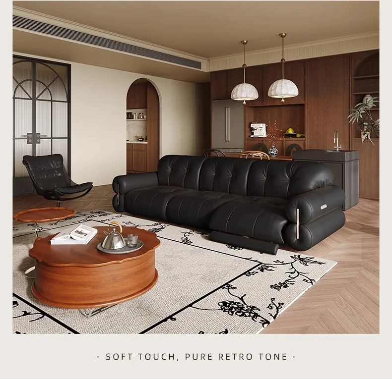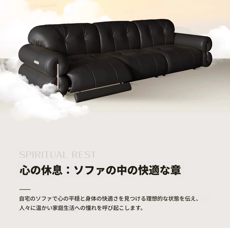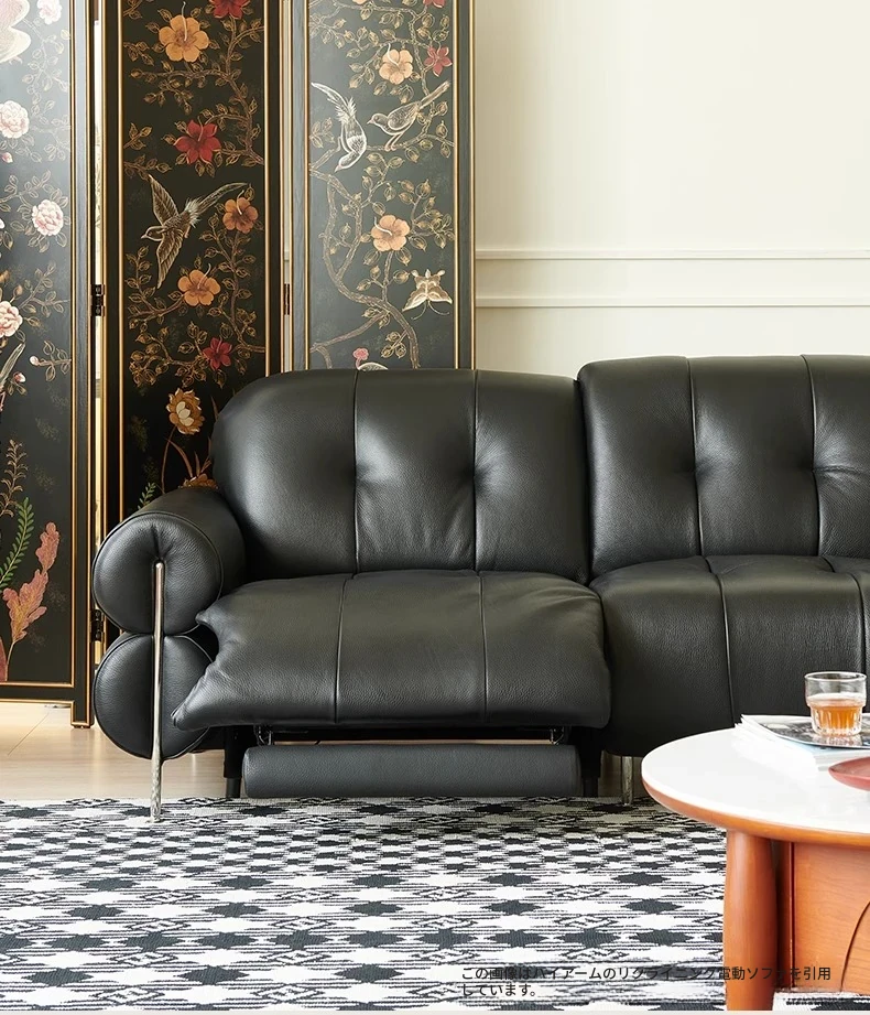 壁に寄りかからない黒糖雲朵スタイルの低脚リクライニング電動ソファ - フランスのレトロデザイン、25年の調整可能な本革ソファで、優雅さと快適さを兼ね備えた一品です!