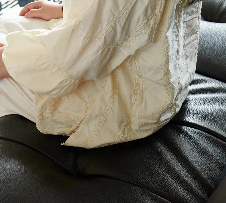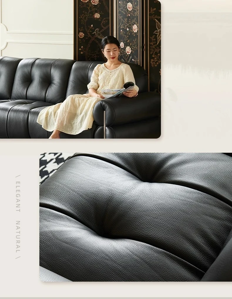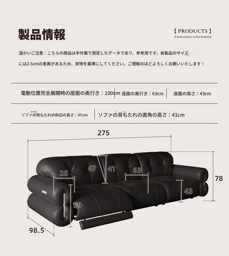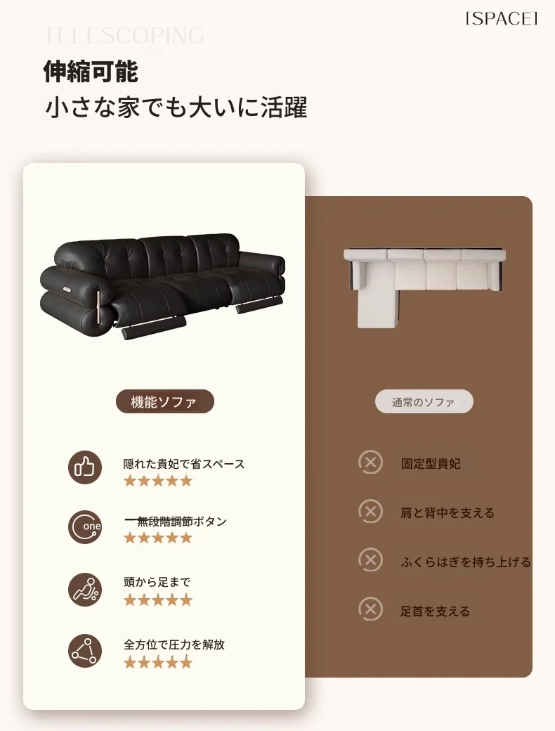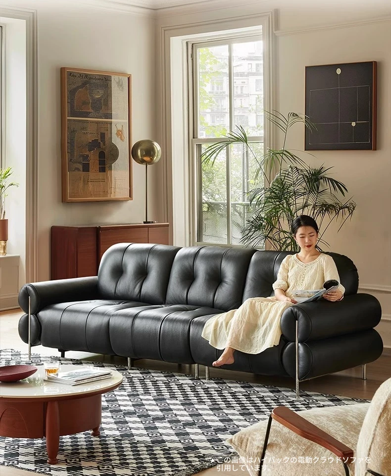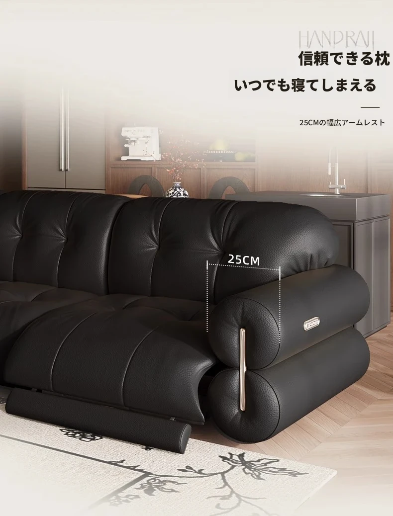 壁に寄りかからない黒糖雲朵スタイルの低脚リクライニング電動ソファ - フランスのレトロデザイン、25年の調整可能な本革ソファで、優雅さと快適さを兼ね備えた一品です!