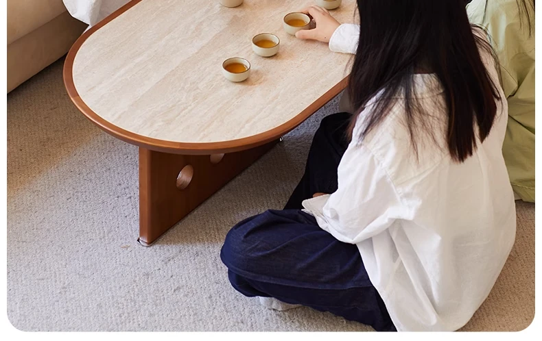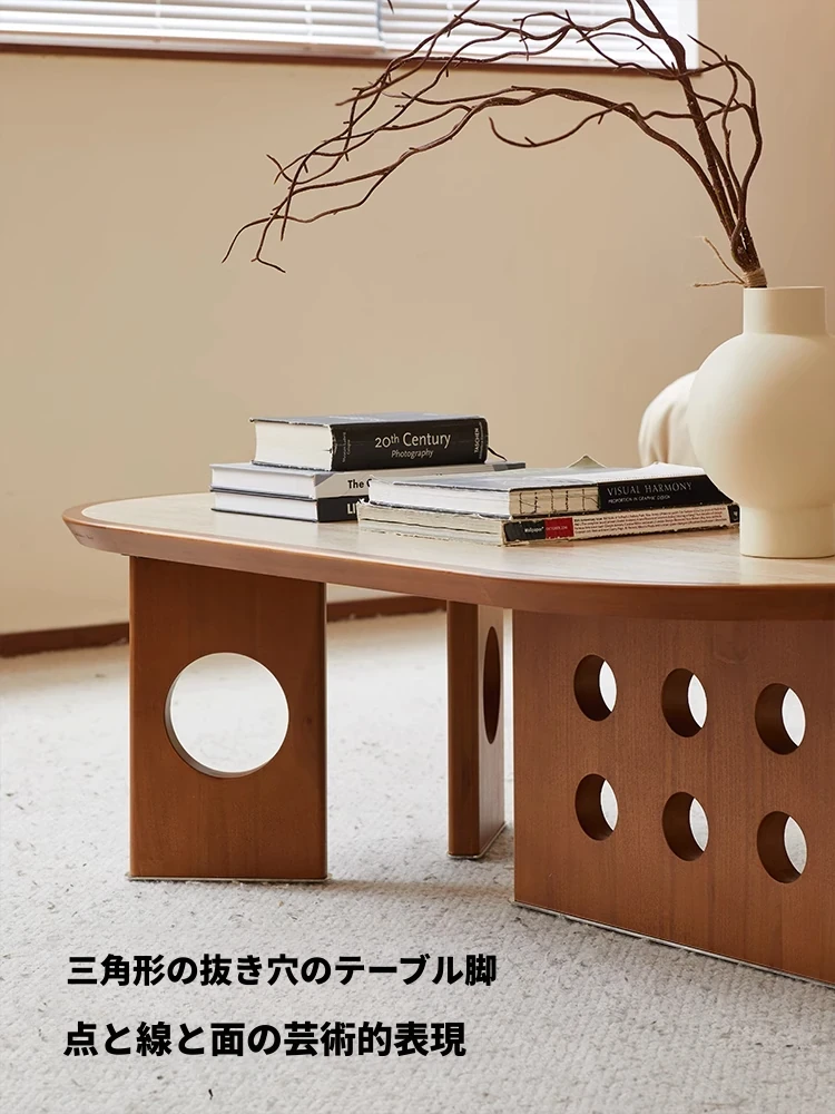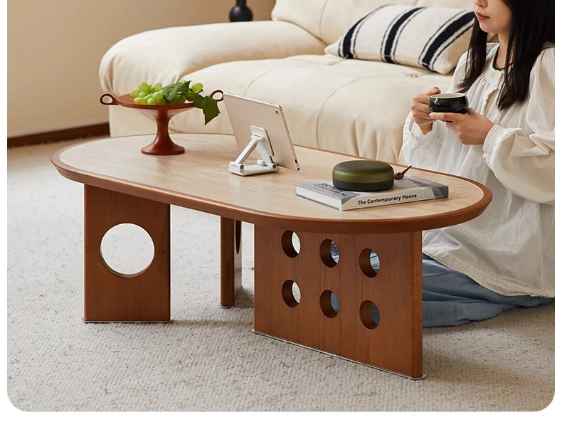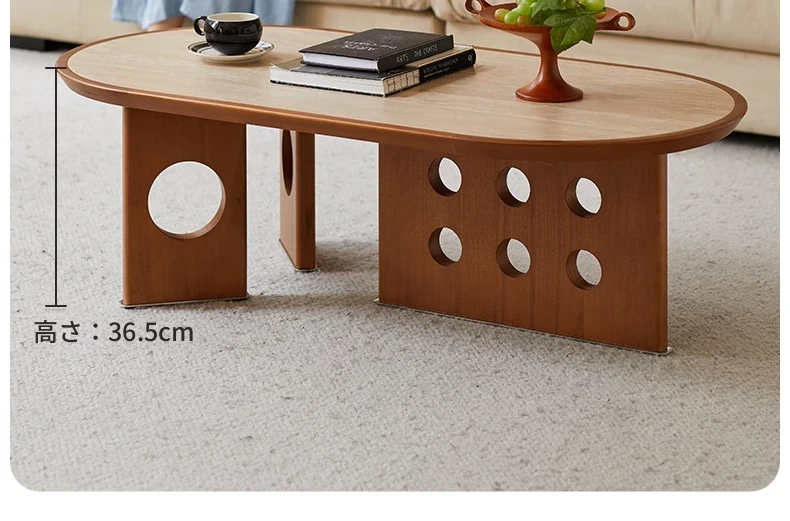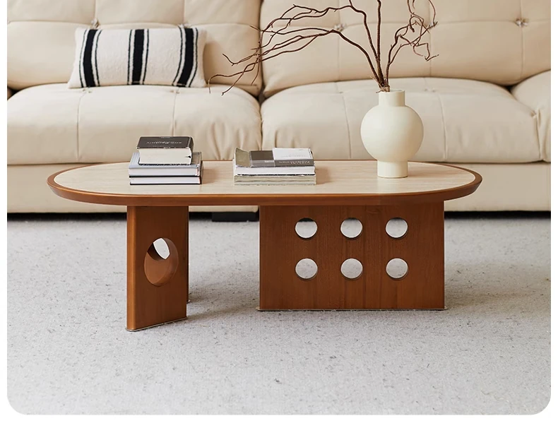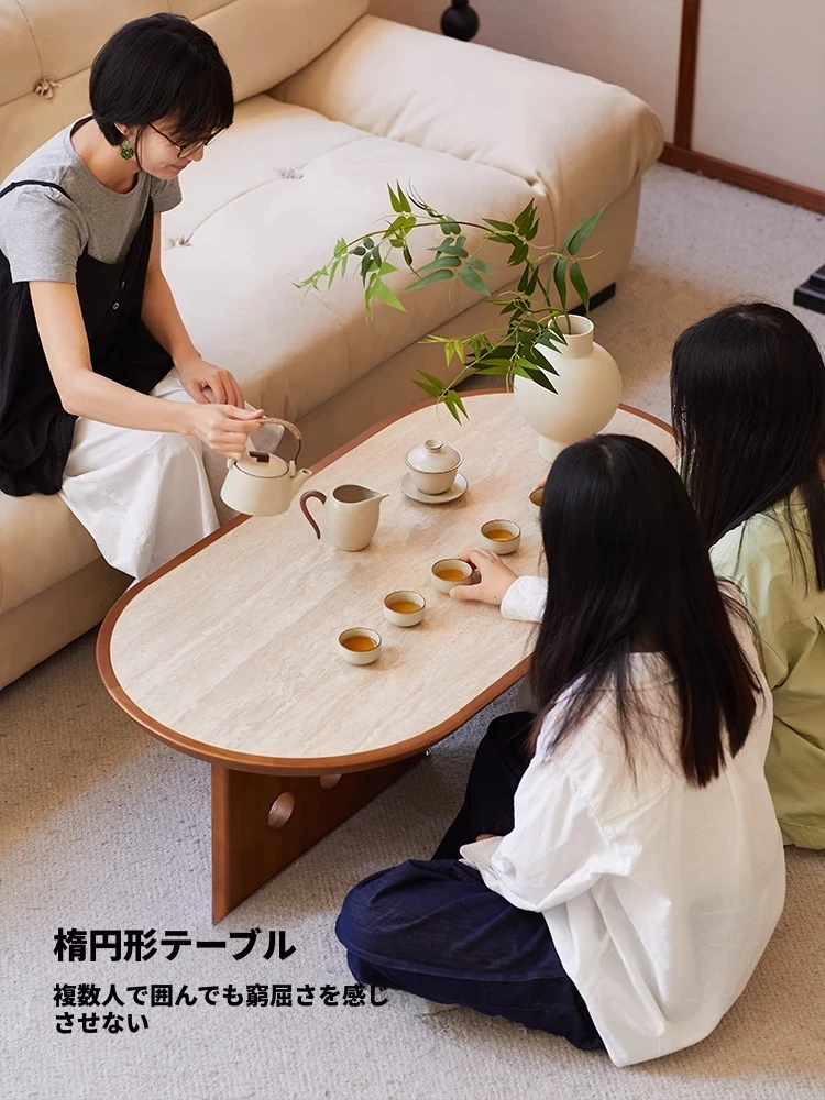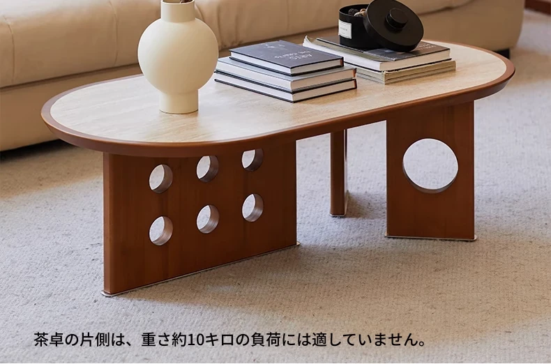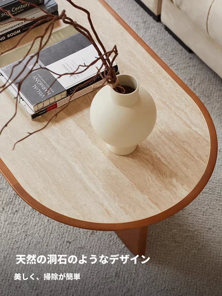 ヴィンテージ風のリビング用ロックプレート茶卓、人気のオーバルデザイン!高品質の無垢材を使用したおしゃれな茶テーブルで、あなたの家を魅力的に演出します。