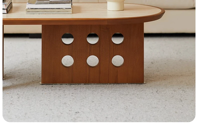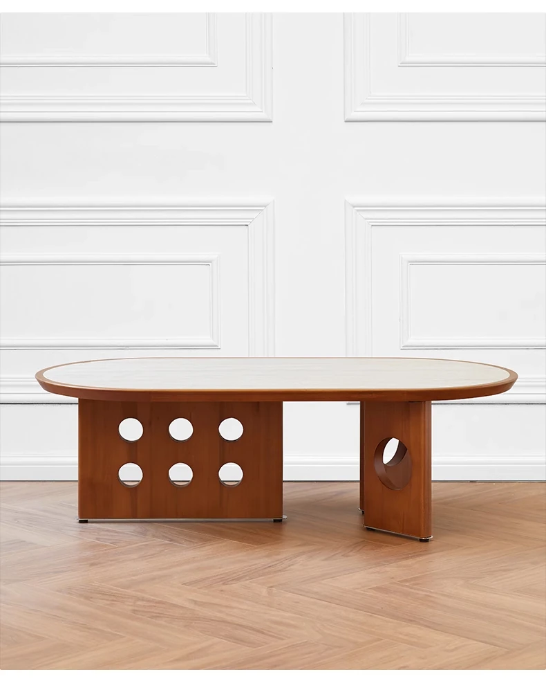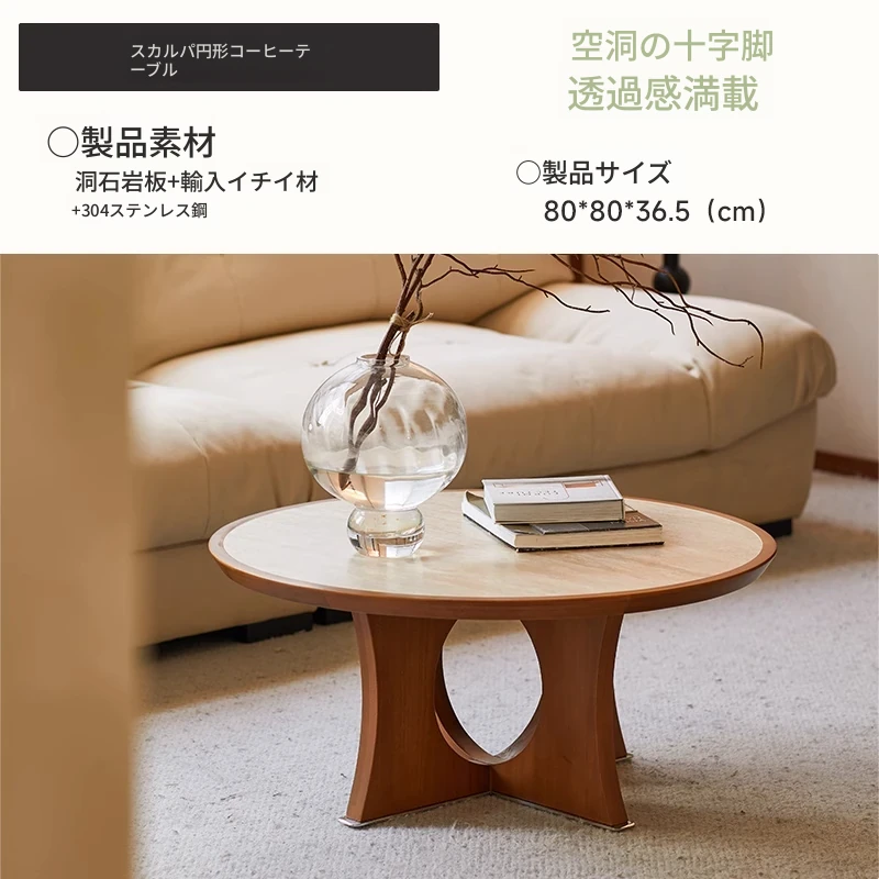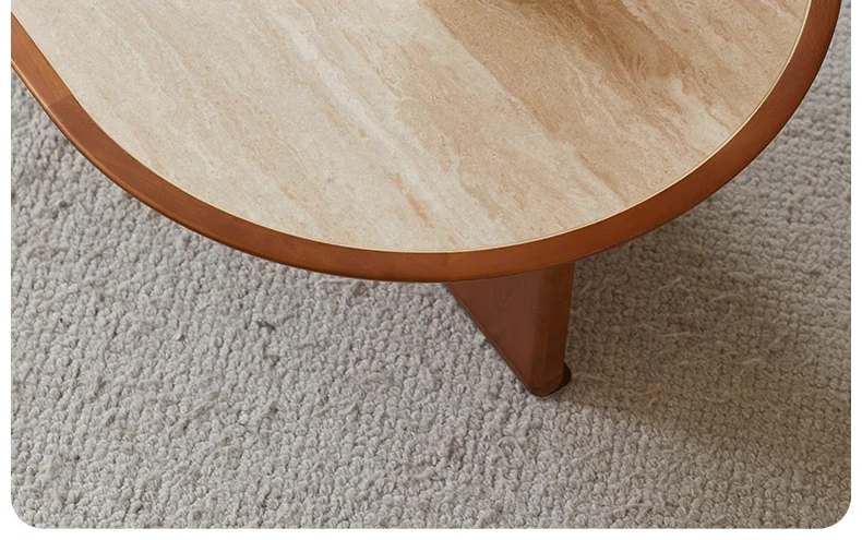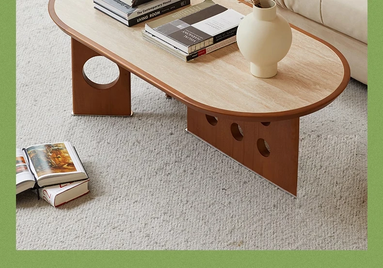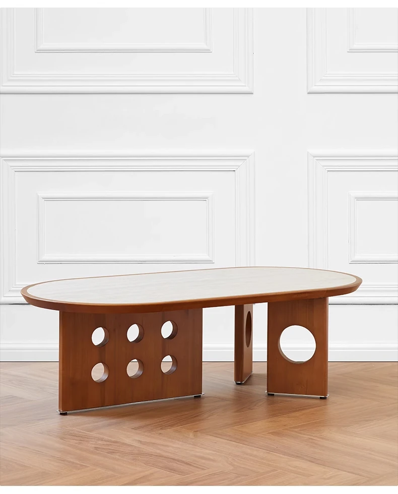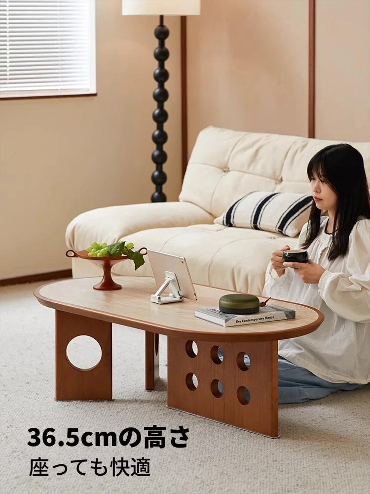ヴィンテージ風のリビング用ロックプレート茶卓、人気のオーバルデザイン!高品質の無垢材を使用したおしゃれな茶テーブルで、あなたの家を魅力的に演出します。