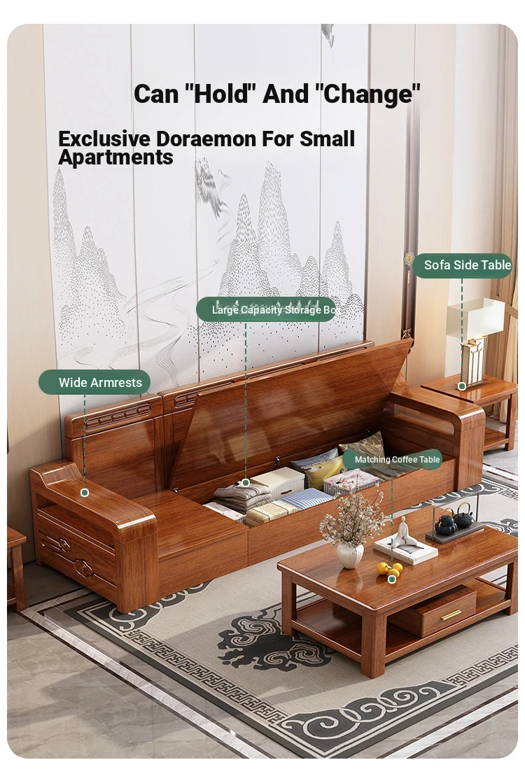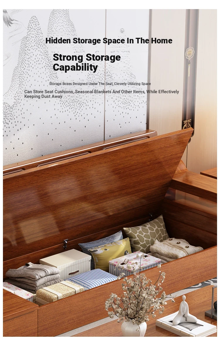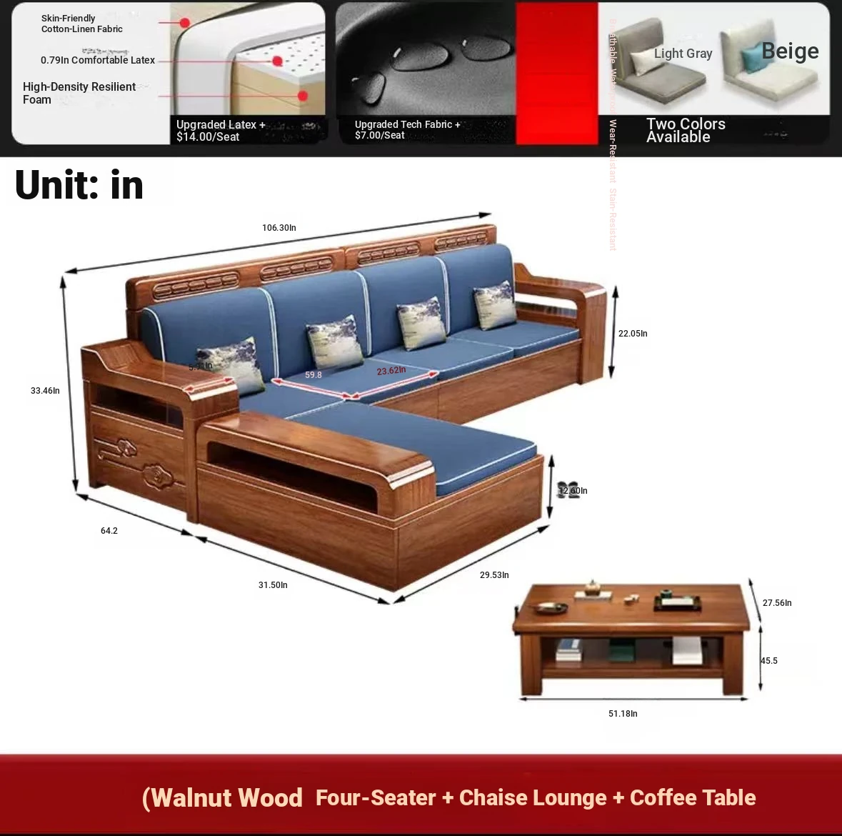 Walnut Solid Wood Sofa for Living Room - Modern Chinese Style, Perfect for Small Spaces, Accommodates 4 People, Model 20643