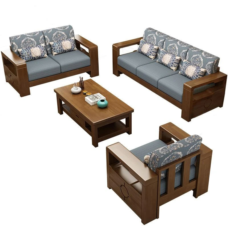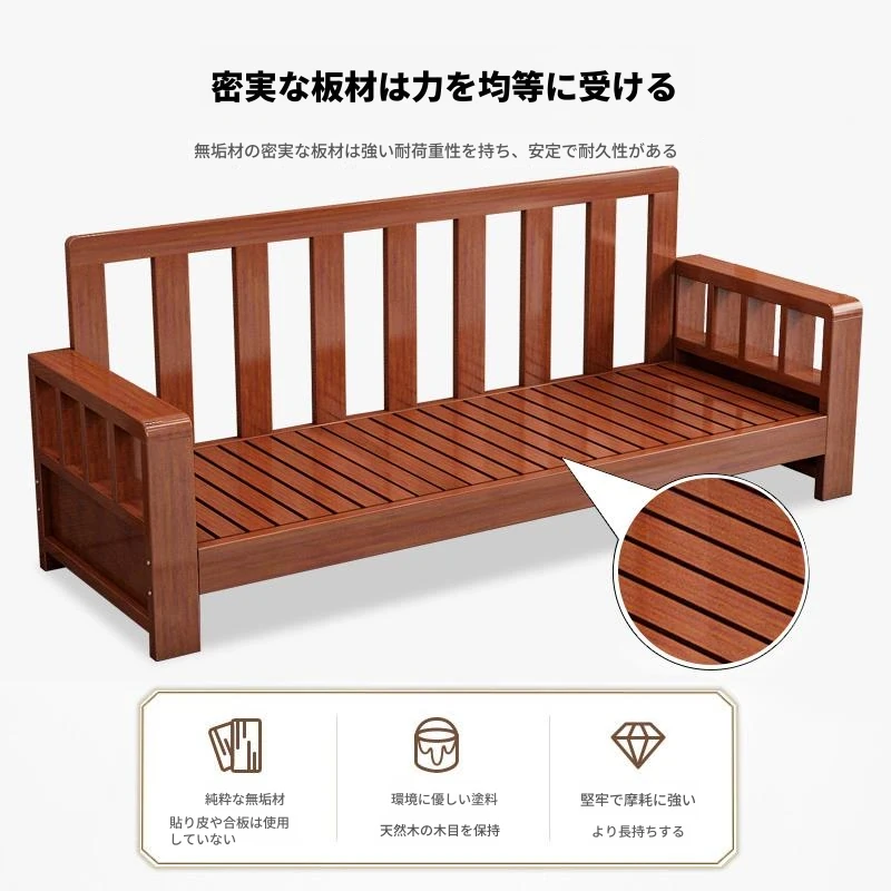 中式ミニマリスト木製ソファセット - 小型リビングに最適な3人掛け、経済的でスタイリッシュなデザイン!おしゃれな空間を演出し、くつろぎのひとときを提供します。